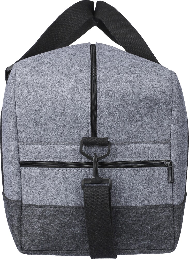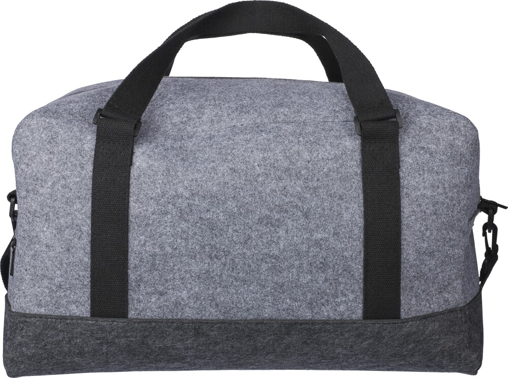 Športová taška z rPET plsti s plátenými rukoväťami a nastaviteľným ramenným popruhom. Má veľkú priehradku na zips a malú priehradku na zips na prednej strane. Vrátane štítku rPET. Objem: 30 l. Nosnosť: 10 kg. Rozmery: 51 x 46 x 2,5 cm