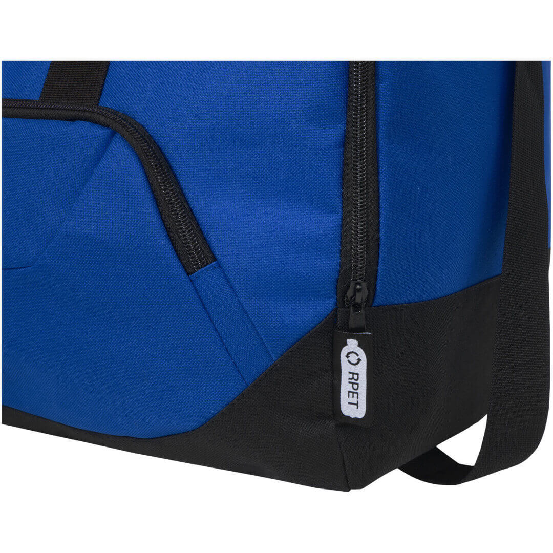 Odolná športová taška kompletne vyrobená z recyklovaných spotrebných plastov, čím prispieva k redukcii plastového odpadu. Má veľké hlavné vrecko a predné vrecko na zips, polstrovaný ramenný popruh a polstrované uši. Pri výrobe tejto tašky bolo recyklovaných približne 27 fliaš.