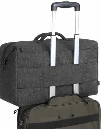 Polyester 900d. Veľký, polstrovaný hlavný oddiel so zipsom s atraktívnym prešívaním. Jednoduché zbalenie vďaka príchytkám na boku. Vnútorná sieťovaná časť na zips a sieťované priehradky vo vnútri. Veľký polstrovaný priestor na zips na zadnej časti. Držiak na kufor.