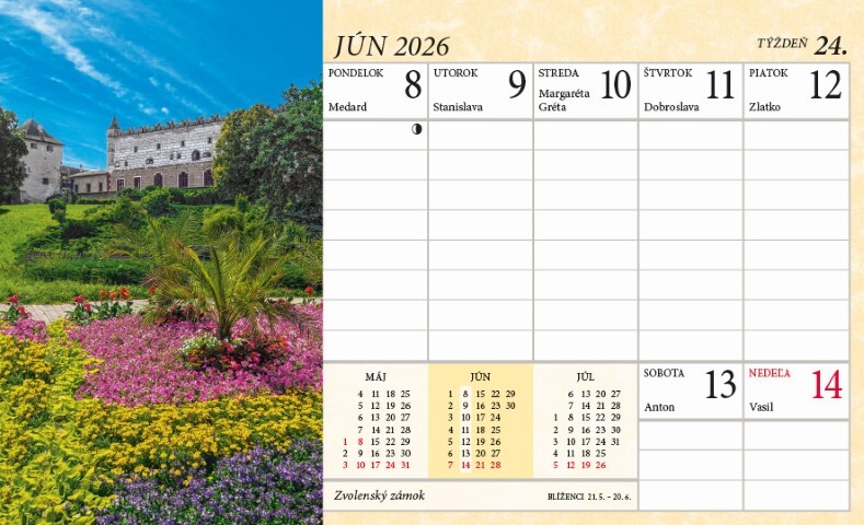 Objavujte krásy Slovenska počas celého roka! Tento praktický stĺpcový týždenný kalendár vás každý týždeň poteší fotografiou vybraného miesta zo Slovenska – od malebných dediniek až po majestátne prírodné scenérie. Každá fotografia je doplnená o stručný popis lokality, čím kalendár získava nielen estetickú, ale aj poznávaciu hodnotu. Skvelý spoločník do kancelárie či domácnosti pre všetkých, ktorí majú radi plánovanie a krásy domoviny.