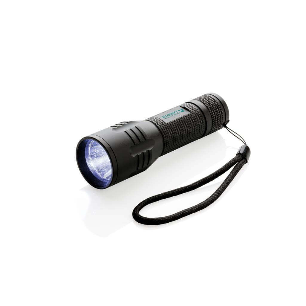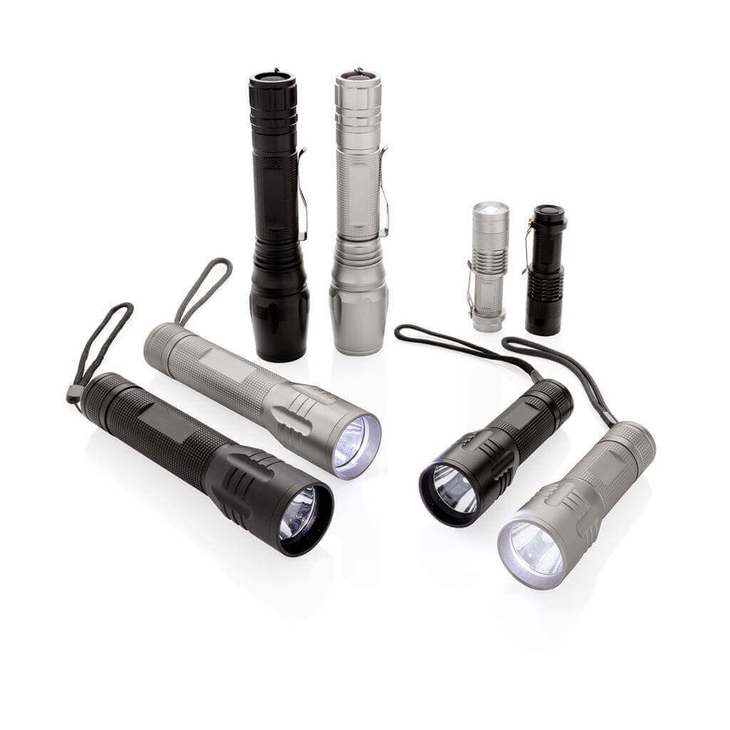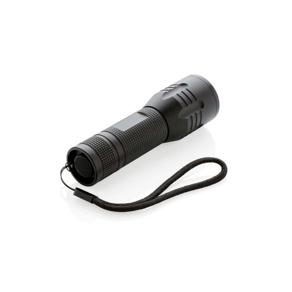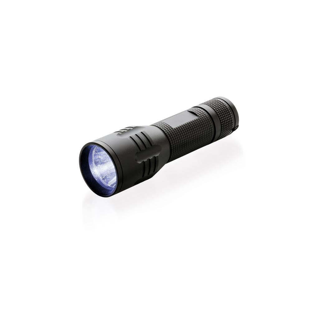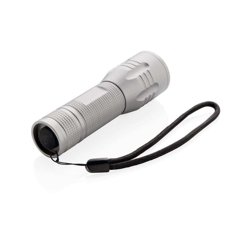 Silné 3W CREE svietidlo s dlhou výdržou. Špeciálna technológia CREE LED zaisťuje mnohonásobne vyššiu svietivosť v porovnaní s bežným LED svetlom. 100 lumenov, prevádzková doba okolo 6 hodín. Vyrobené z odolného hliníka. Vrátane batérií pre okamžité použitie. 3 batérie typu AAA súčasťou balenia.