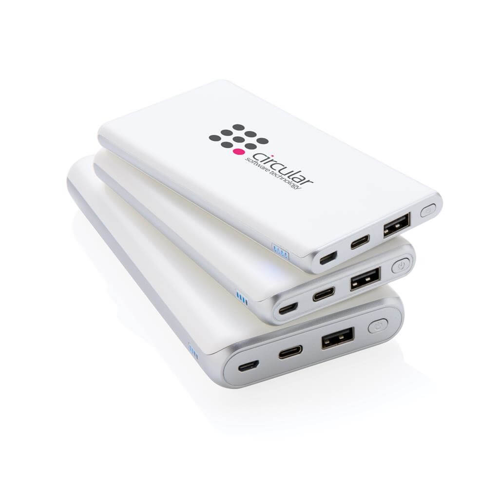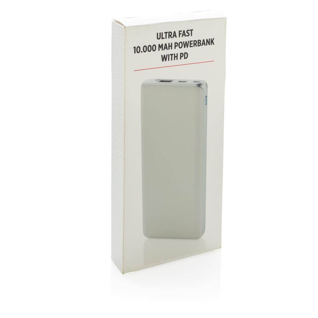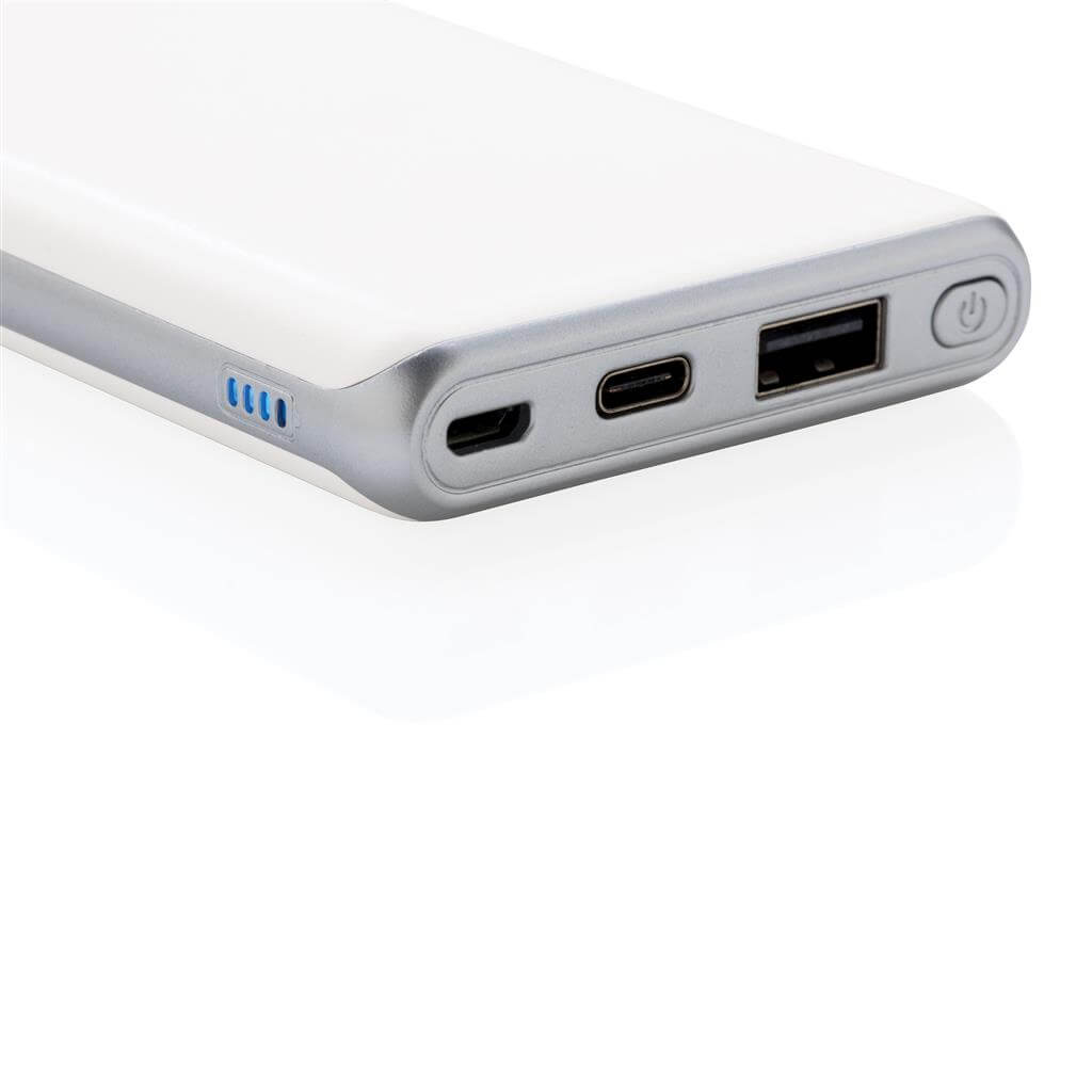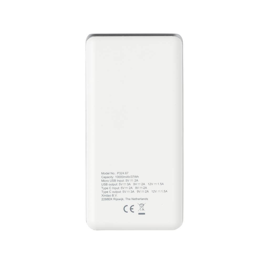 Nabíjajte rýchlosťou blesku. PowerBank s kapacitou 10 000 mAh ponúkajúca aktuálne najrýchlejšie možnosti nabíjania. S klasickým USB portom a USB typu C, podporujúce PD (Power Delivery) pre mimoriadne rýchle nabíjanie vybraných zariadení. Micro USB vstup: 5V / 2A. USB výstup: 5V / 3A 9V / 2A 12V / 1.5A. USB Typu C: vstup: 5V / 2A 9V / 2A, výstup: 5V / 3A 9V / 2A 12V / 1.5A. 2 batérií typu Li-poly Súčasťou balenia.