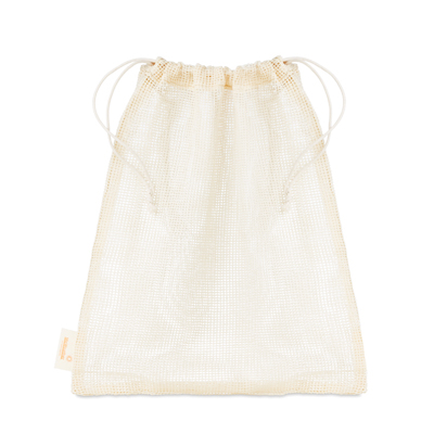 Súprava 3 sieťovaných vrecúšok na čerstvé potraviny vyrobená zo 100% bavlny. Jedna strana každej tašky je z bavlny (140 g/m²), ktorú je možné celoplošne potlačiť podľa želania. Druhá strana je zo sieťovanej bavlny. V cene je 1-4 farebne potlačená bavlnená etiketa na mieru (cca 4x4cm) a papierový rukáv s čiernou potlačou loga. Každá taška môže mať iný dizajn. Rozmery vrecúšok: 30x20cm, 30x35cm a 30x40cm (Vzhľadom na povahu materiálu majú veľkosti toleranciu do 2cm.). Ručne umývateľné.