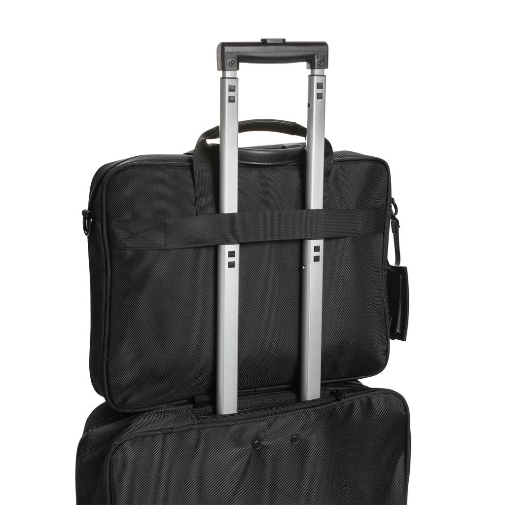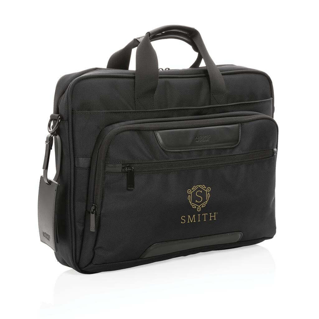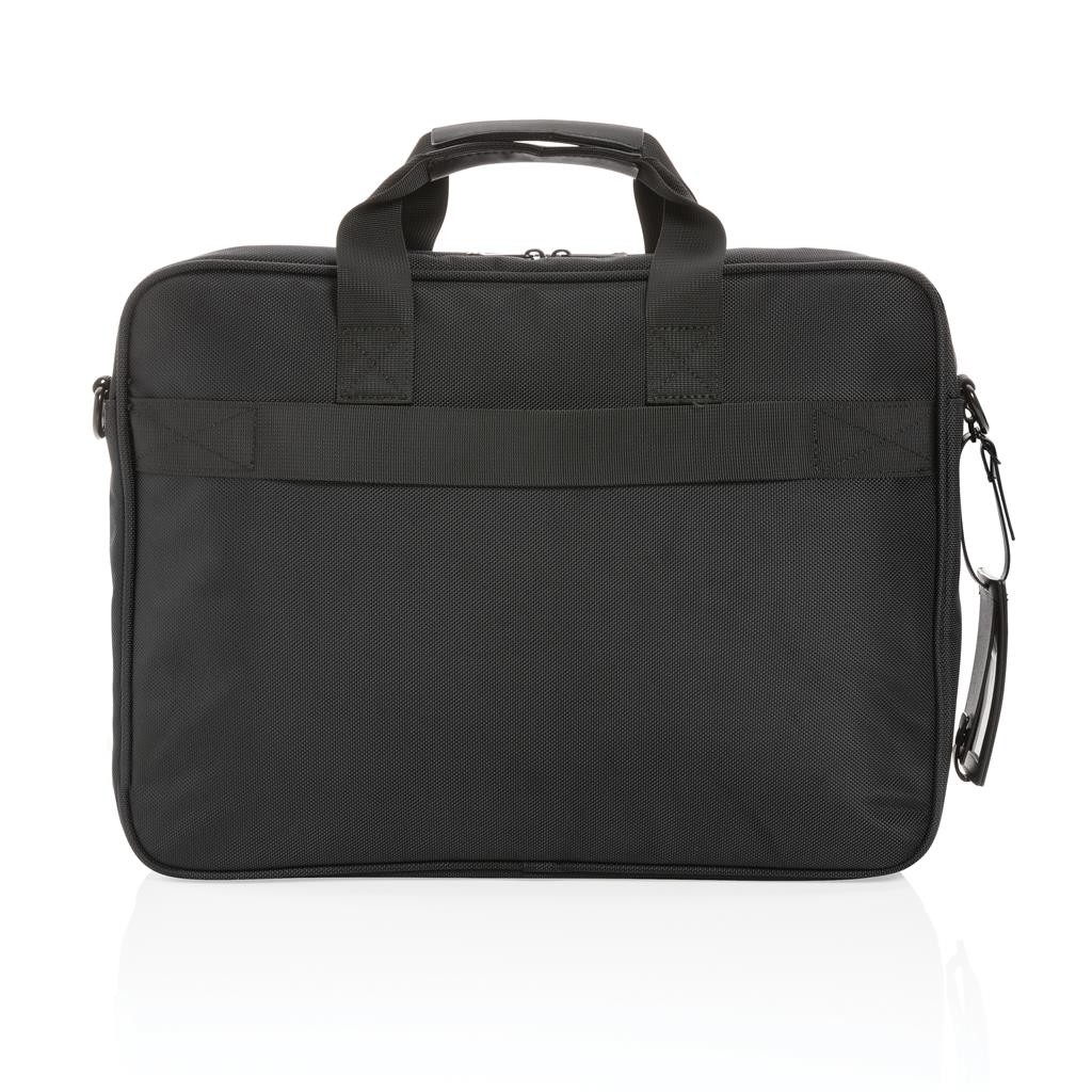 Elegantná skvele vybavená taška na každodenné cestovanie. Vyrobená z pevného recyklovaného polyesteru 1680D s bohatými detailmi z umelej kože a množstvom vreciek. Priestranný hlavný oddiel, polstrovaný oddiel na 15,6" notebook, dodatočné menšie vrecko na zips. USB výstup pre nabíjanie telefónu na cestách, vrecká s RFID ochranou, pútka na perá, postranné vrecko na fľašu a odnímateľný kontaktný štítok. Zloženie: vonkajšia časť: 100 % 1680D recyklovaný polyester, vnútorná časť (podšívka): 150D recyklovaný polyester Vrátane skenovateľnej zložky AWARE™ garantujúci obsah recyklátu Na výrobu bolo využitých 36,66 500ml PET fliaš a bolo usporených 21,8 litrov vody. navyše prispelo 2 % na podporu iniciatívy Water.org.