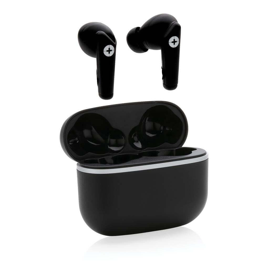 Nová generácia skutočne bezdrôtových slúchadiel pre maximálne pohodlie kompletne bez káblov. Vyrobené z RCS recyklovaného ABS plastu. RCS (Recycled Claim Standard) je globálny štandard, ktorý umožňuje overiť použitie recyklovaného materiálu v produkte naprieč celým dodávateľským reťazcom. Celkový podiel recyklátu podľa váhy produktu: 59 %. Jednoduché automatické párovanie vďaka najnovšej bezdrôtovej technológii BT 5.3 zaisťujúce stabilné a čisté stereo počúvanie či stereo telefonovanie. Dosah až 10m od zdrojového zariadenia. Batéria s kapacitou 40 mAh umožňuje počúvanie po dobu až 4 hodín na jedno nabitie (trvajúce 1,5 hodiny) cez nabíjacie puzdro s kapacitou 400 mAh. Vrátane rôznych veľkostí nástavcov do uší a USB C nabíjacieho kábla z GRS recyklovaného TPE. Balené v FSC® darčekovej krabičke Swiss Peak. 3 batérie typu Li-poly súčasťou balenia.