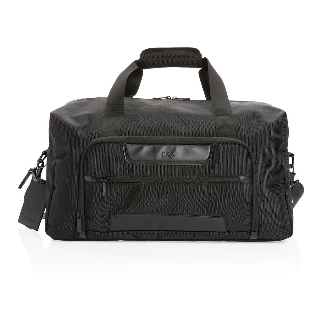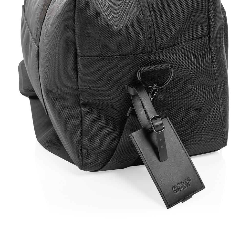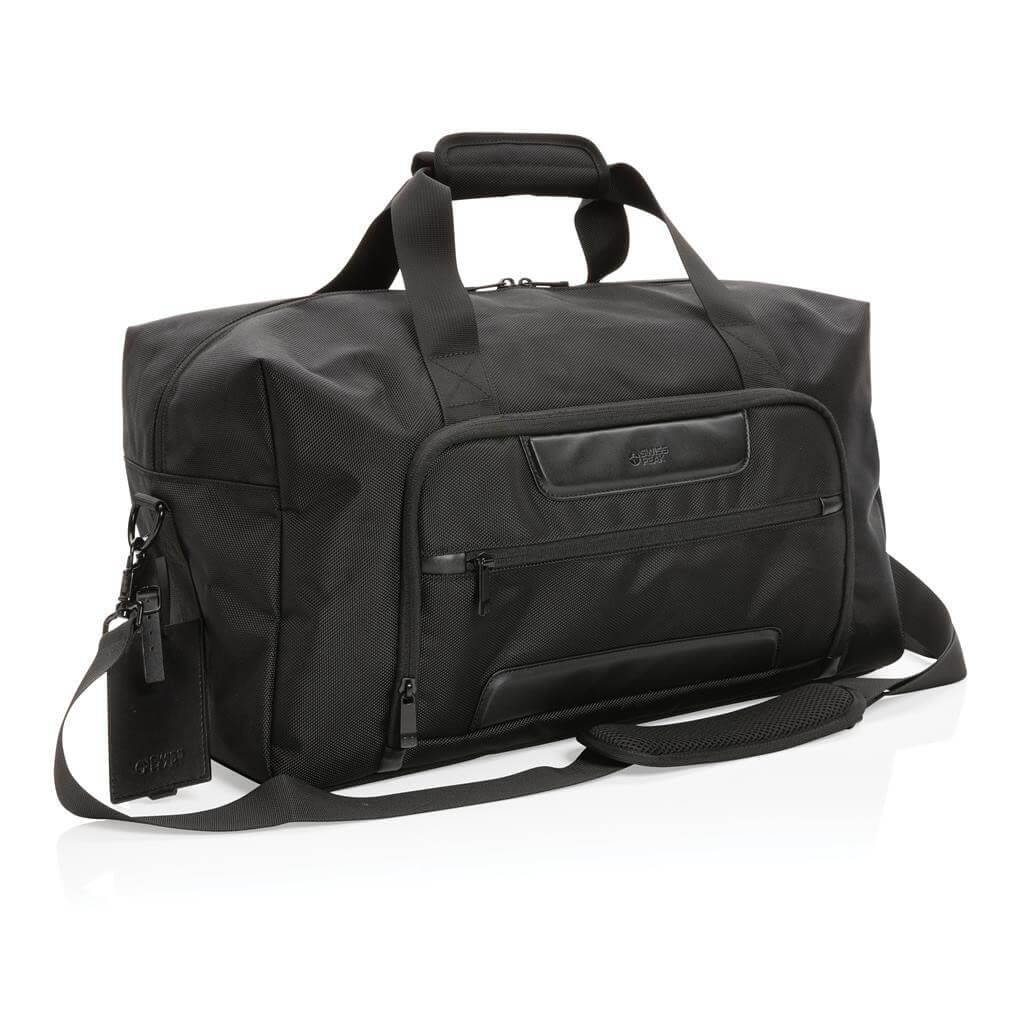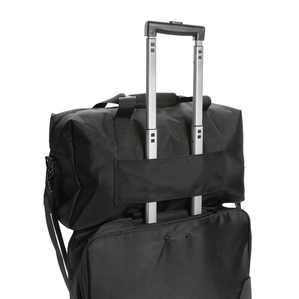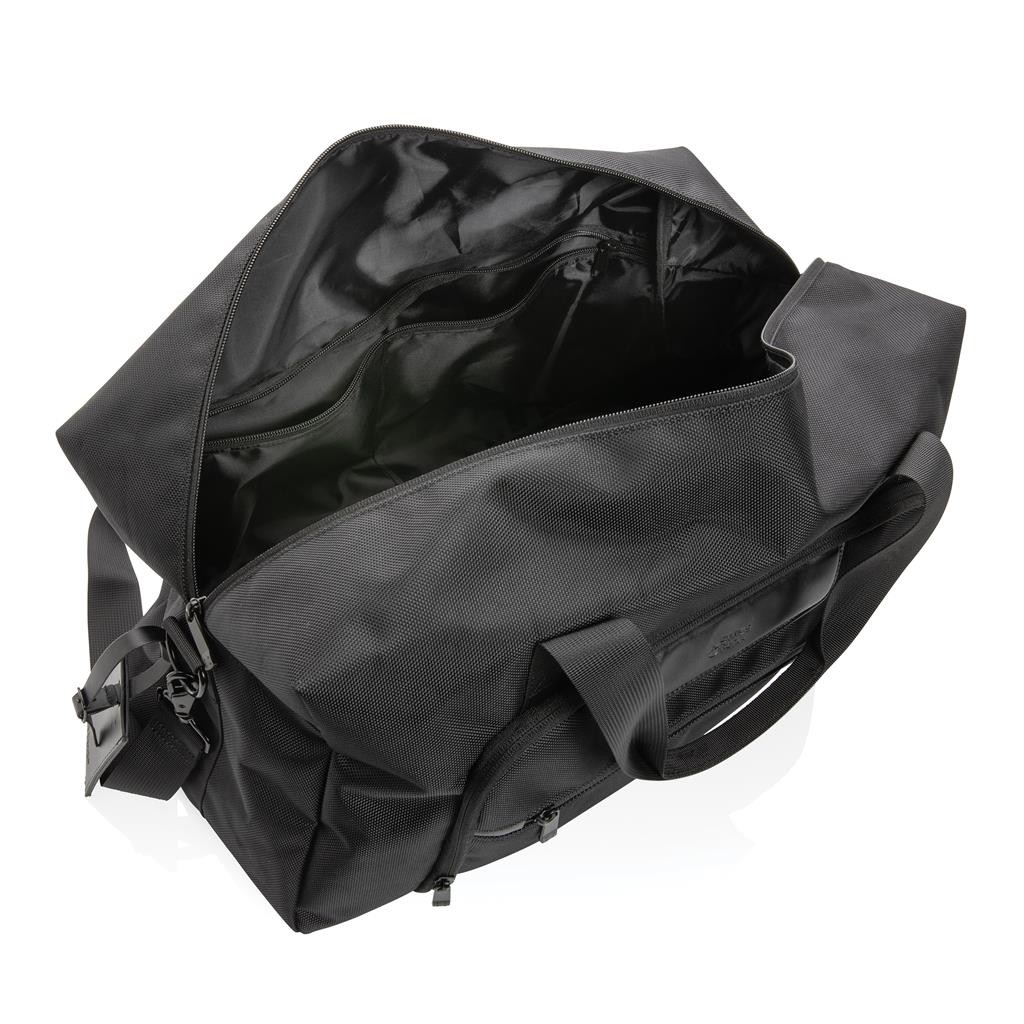 Elegantná skvele vybavená taška ideálna na víkendové cestovanie. Vyrobená z pevného recyklovaného polyesteru 1680D s bohatými detailmi z umelej kože a množstvom vreciek. Priestranný hlavný oddiel, vnútorné vrecko na zips, predné vrecko na zips s množstvom priehradok, vrecká s RFID ochranou a odnímateľný kontaktný štítok. Zloženie: vonkajšia časť: 100% 1680D recyklovaný polyester; vnútorná časť (podšívka): 150D recyklovaný polyester. Vrátane skenovateľnej zložky AWARE™ garantujúcej obsah recyklátu. Na výrobu bolo využitých 50,7 500ml PET fliaš a bolo usporených 30,2 litrov vody. Z výťažku každého predaného produktu je navyše prispených 2 % na podporu iniciatívy Water.org.
