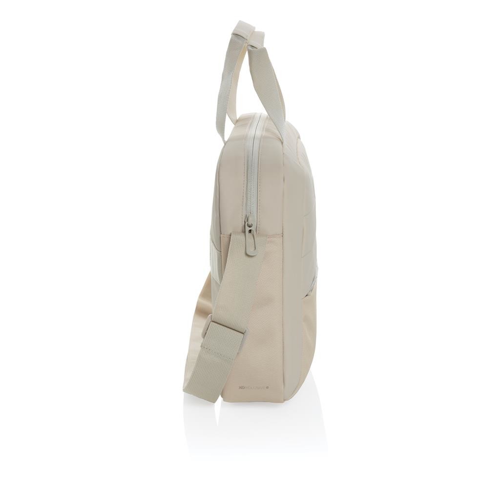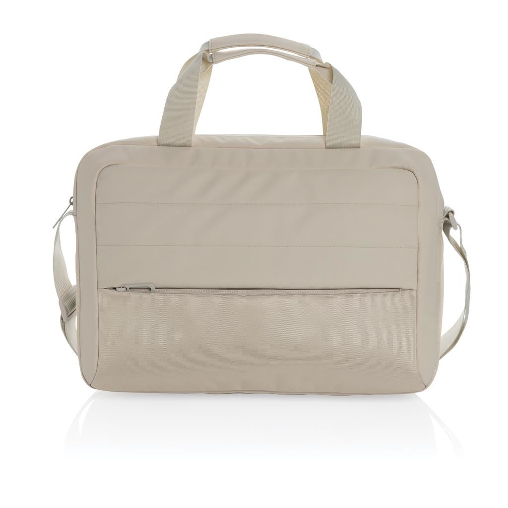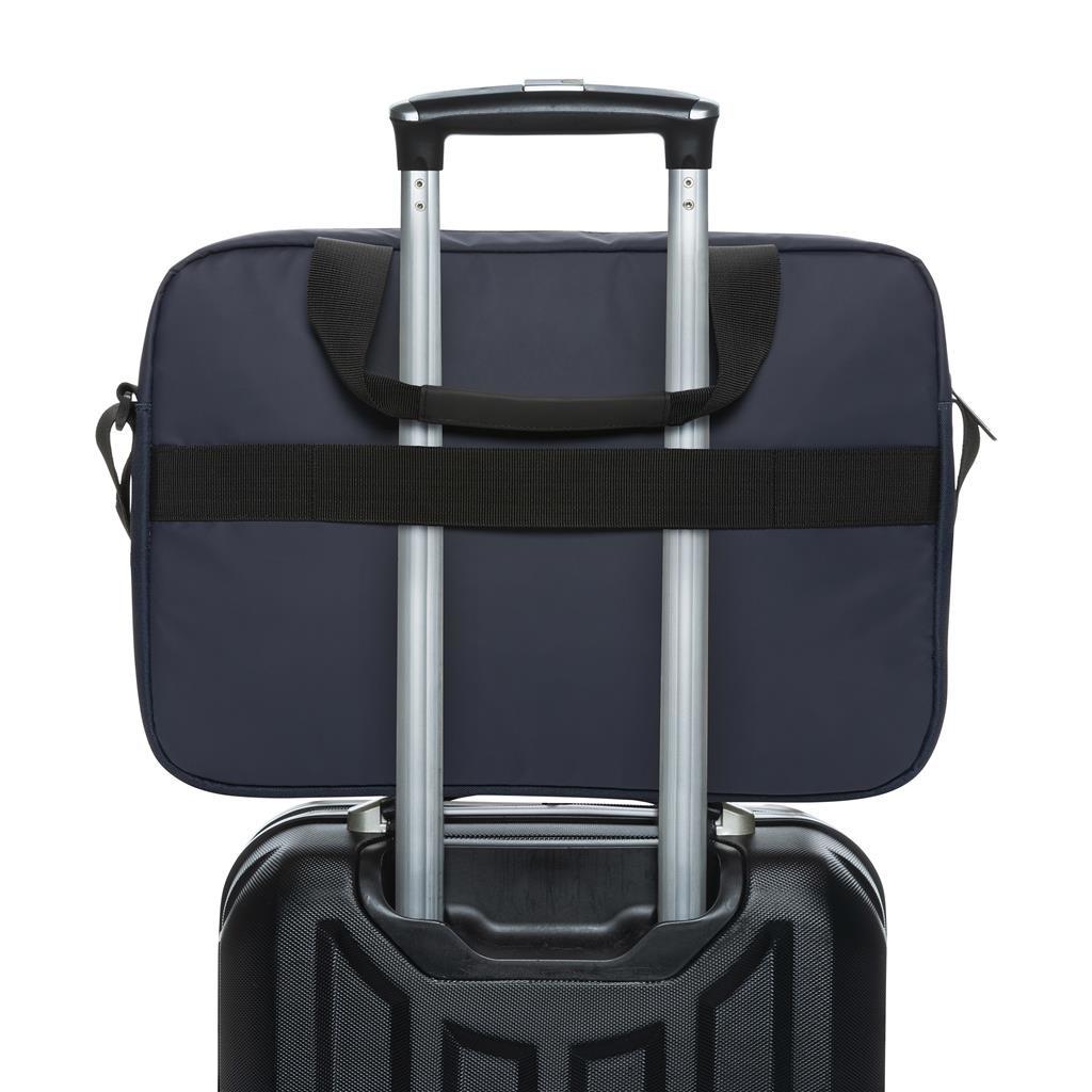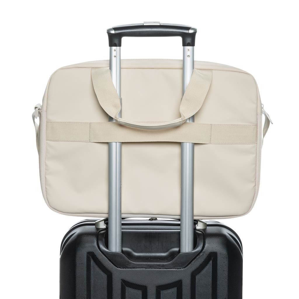 Taška v klasickom dizajne s priestorom pre až 15,6" notebook. Akcentové prešitie na prednej strane, viac vreciek pre organizáciu obsahu, dve horné uchá, prispôsobiteľný ramenný popruh. Vyrobené z recyklovaného polyesteru s obsahom skenovateľnej zložky AWARE™ garantujúci obsah recyklátu. Z výťažku každého predaného produktu je prispených 2 % na podporu iniciatívy Water.org bez PVC.