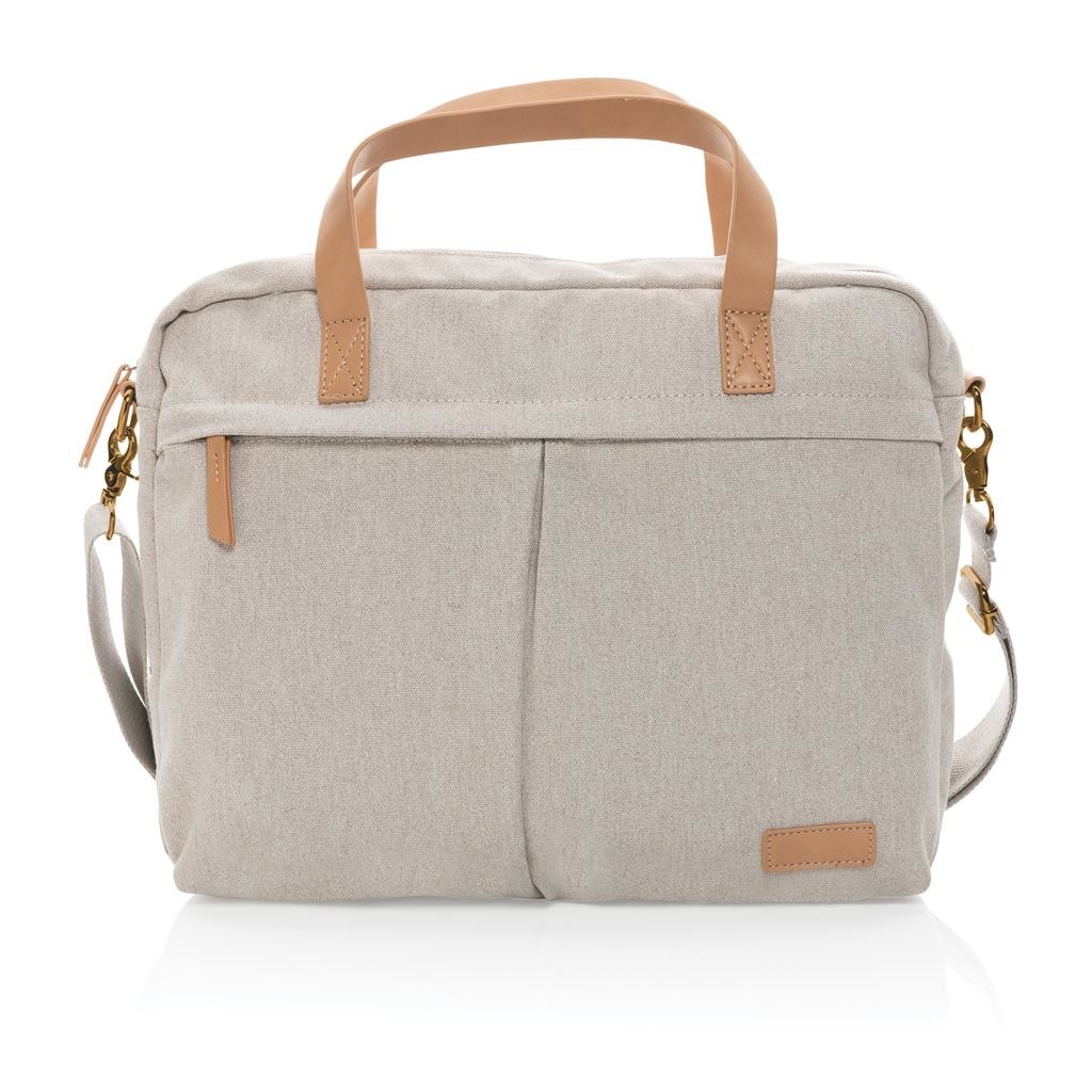 Taška vyrobená z moderného 16 oz. recyklovaného canvas. Hlavný priestor s polstrovaným oddielom pre až 15,6" notebook, priestranné predné a zadné vrecká pre prehľadnú organizáciu všetkých drobností. Vrátane skenovateľnej zložky AWARE™ garantujúce obsah recyklátu. V porovnaní s konvenčným canvas bolo výrobou každého kusu usporených 1 615,8 litrov vody. Z výťažku každého predaného produktu z kolekcie Impact je navyše prispených 2% na podporu iniciatívy Water.org Rozloženie materiálu: 60% recyklovaná bavlna, 40% recyklovaný polyester, podšívka zo 150D recyklovaného polyesteru.