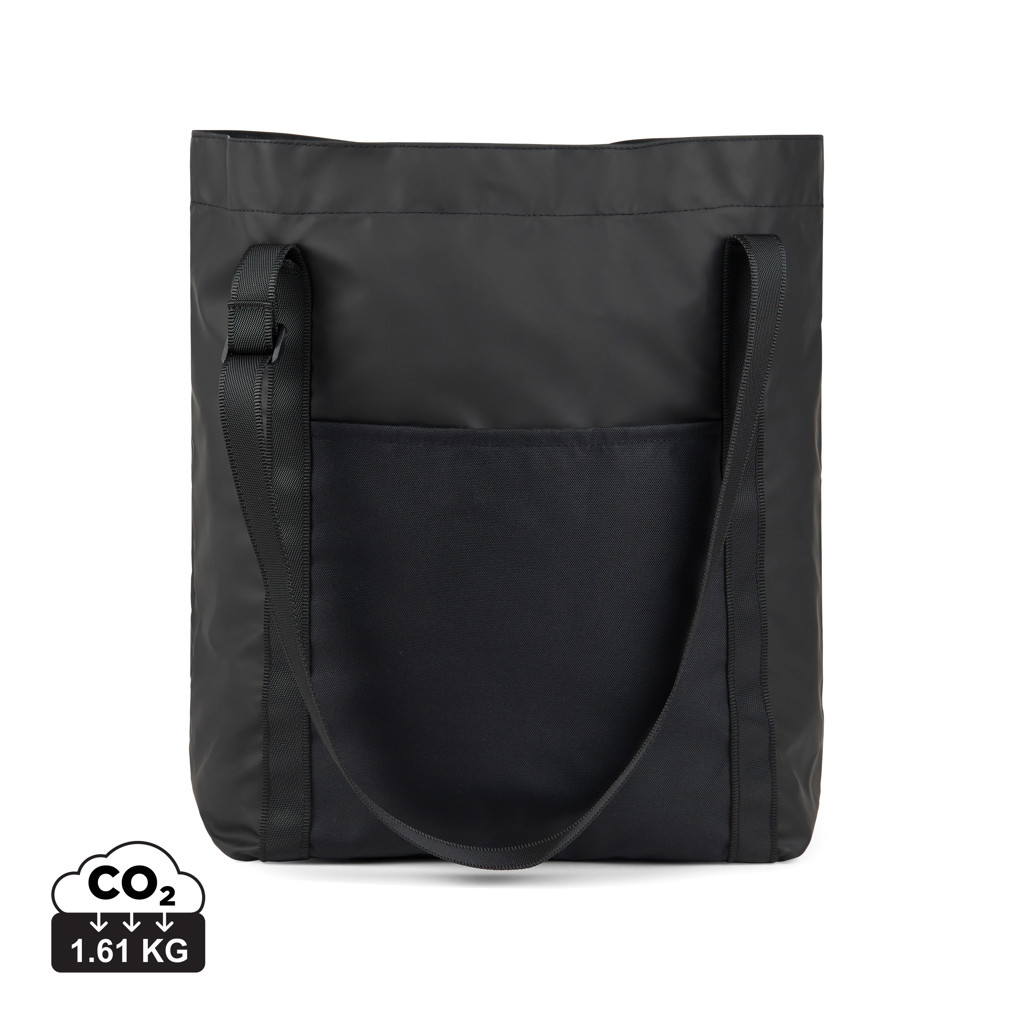 Taška s prispôsobiteľnými uchami vyrobená z ľahkého recyklovaného polyesteru s modernou PU povrchovou úpravou. Chytrá gumička a spona pre efektívne zloženie a ľahký prenos. Prispôsobiteľné popruhy na nosenie v ruke alebo na ramene. Praktické vonkajšie a vnútorné vrecko na drobnosti. Vyrobené z GRS recyklovaného polyesteru. GRS (Global Recycle Standard) je globálny štandard, ktorý umožňuje overiť použitie recyklovaného materiálu v produkte naprieč celým dodávateľským reťazcom. Celkový podiel recyklátu podľa váhy produktu: 51%.