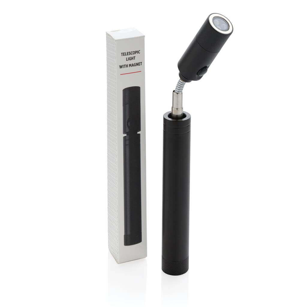 Perfektný kutilský nástroj vhodný na malé temné zákutia. Hliníkovú teleskopickú tyč možno vysunúť zo základnej veľkosti 17 cm až na veľkosť 58 cm. Magnetický koniec uľahčuje zber zapadnutých kovových drobností v bežne neprístupnom priestore. Druhá strana vybavená tromi silnými LED diódami pomáha priestor presvietiť. Po vysunutí je krčok svetla plne flexibilný do všetkých strán. Vrátane batérií pre okamžité použitie. 4 batérií typu button cell súčasťou balenia.