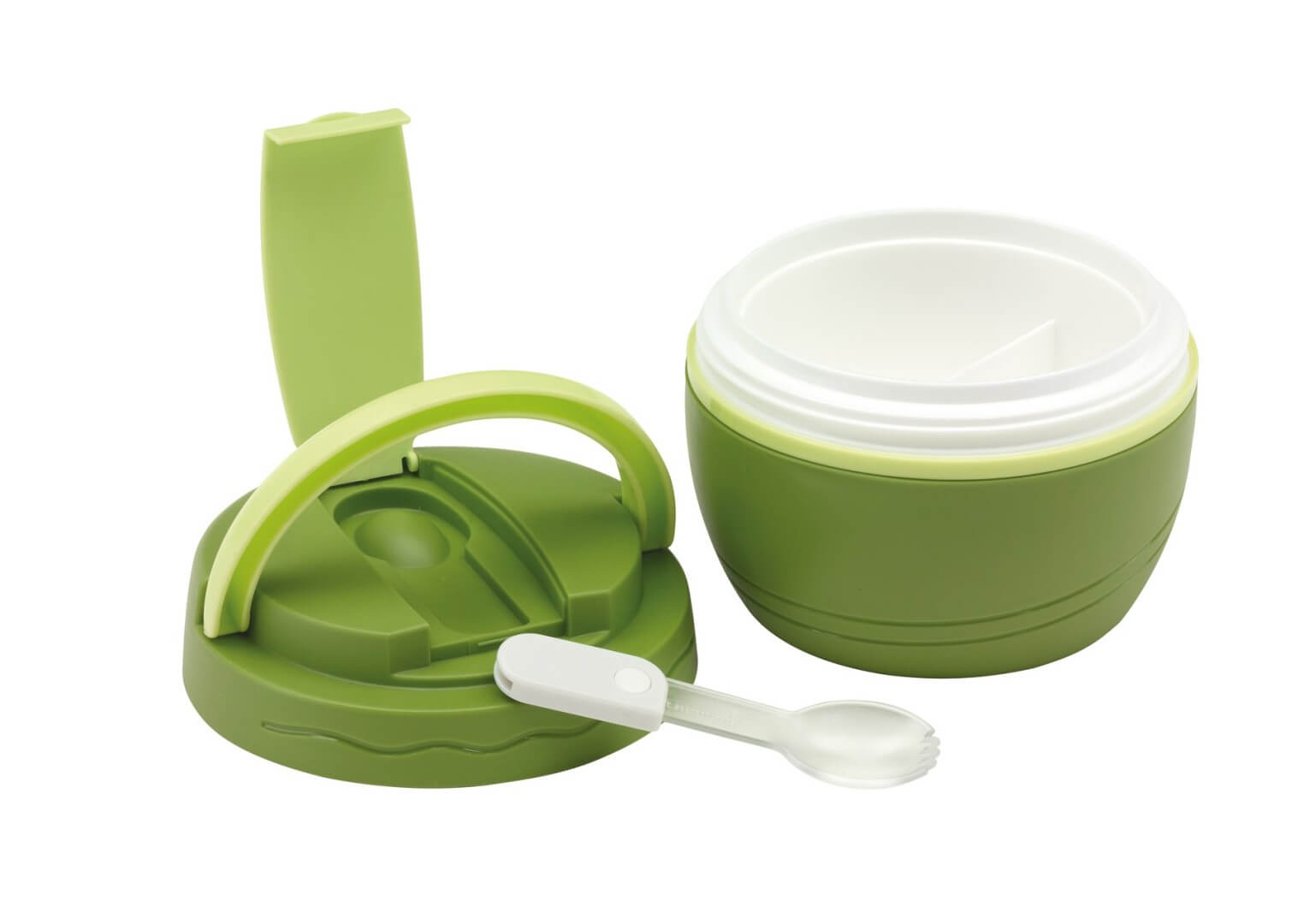 TermoBox, vyberateľná vložka (vhodné pre mikrovlnné rúry) s 2 priehradkami na vnútornej strane, skrutkovací uzáver s integrovanou rukoväťou, potraviny zostanú teplé alebo studené až 4 hodiny, kapacita cca. 450ml