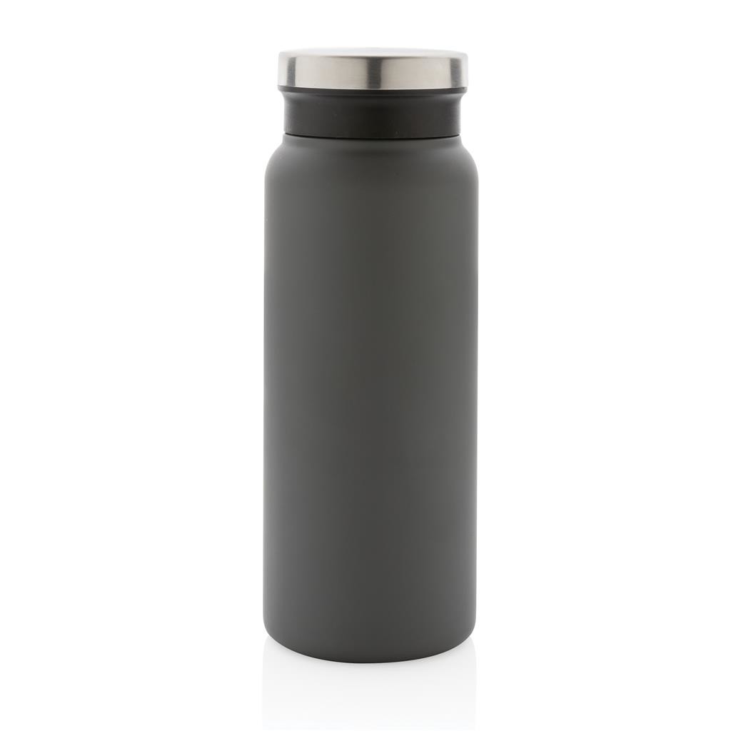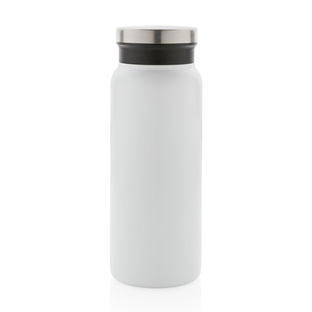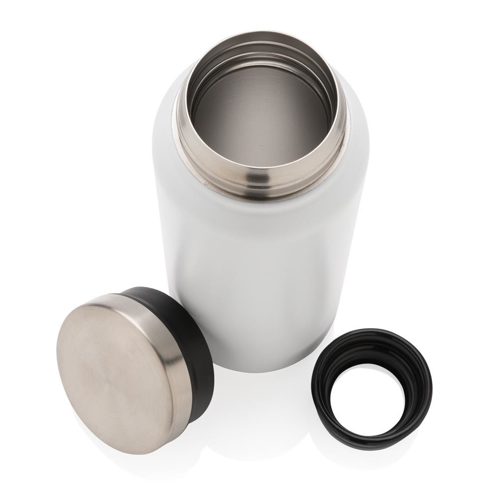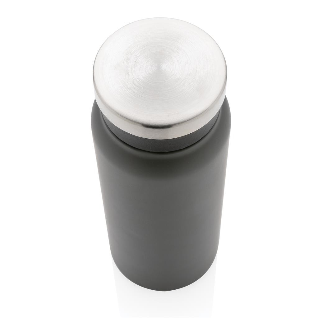 Nepriepustná termo fľaša s bezpečným skrutkovacím uzáverom so širokým hrdlom pre ľahké čistenie a plnenie. Dvojstenná vákuová izolácia uchová nápoj horúci po dobu až 5h a studený až 15h. Vyrobené z RCS recyklovanej nehrdzavejúcej ocele. RCS (Recycled Claim Standard) je globálny štandard, ktorý umožňuje overiť použitie recyklovaného materiálu v produkte naprieč celým dodávateľským reťazcom. Podiel použitého recyklovaného materiálu vzhľadom na celkovú váhu produktu: 77 %. Vnútorná časť viečka z plastu zaisťuje nepriepustnosť. Bez BPA. Objem: 600 ml. Balené v FSC kraftovej krabičke.