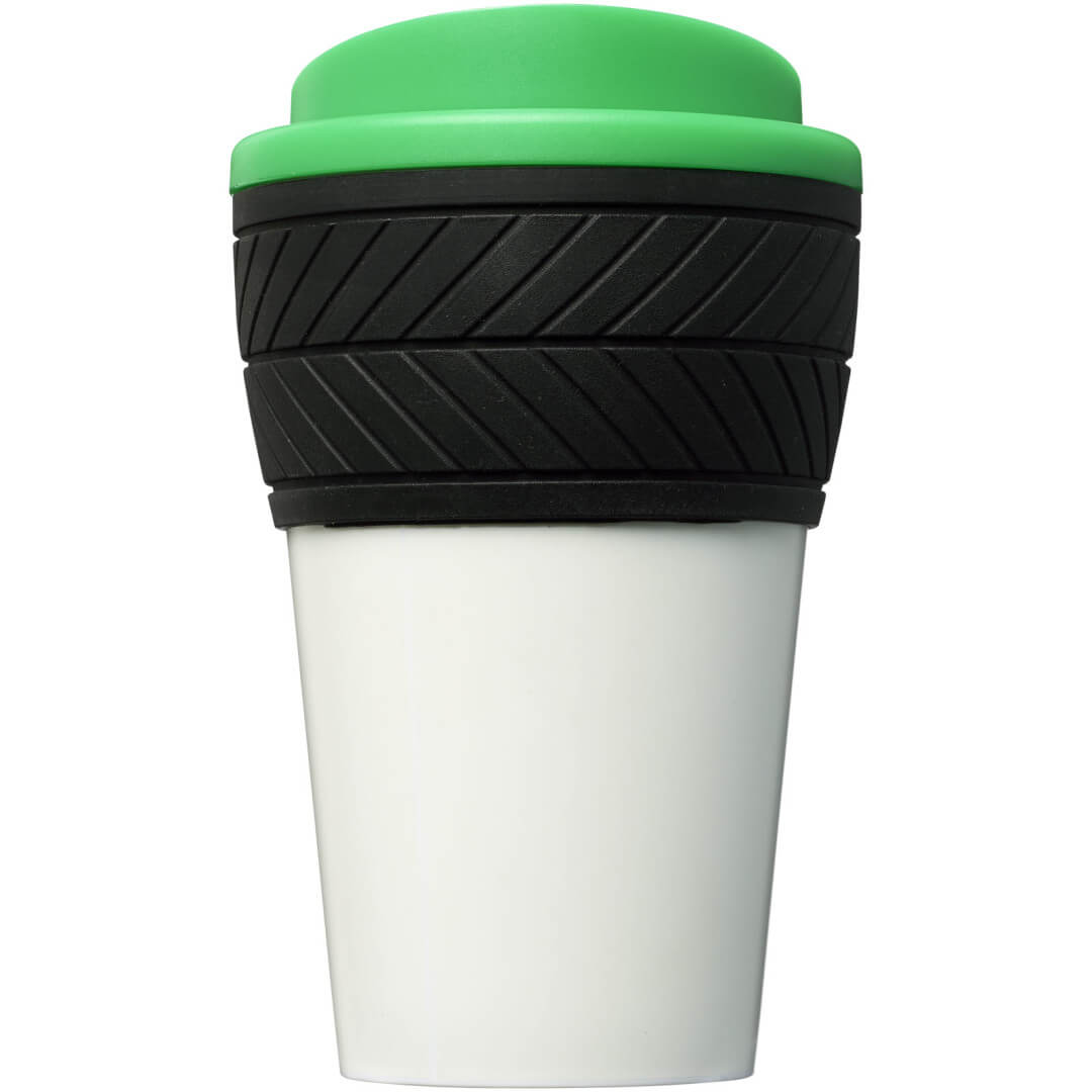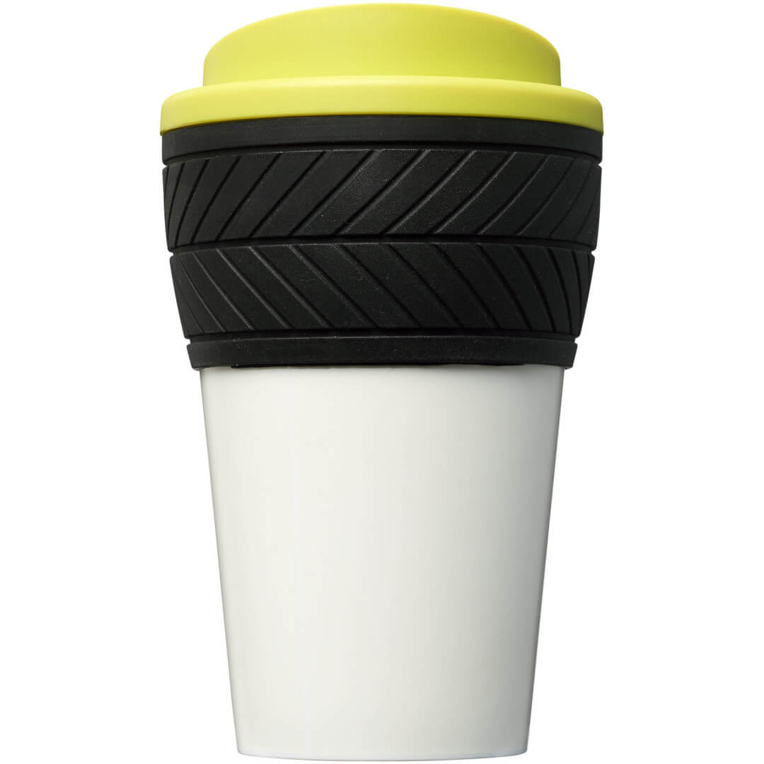Termo hrnček Brite-Americano® pneumatika 350 ml. Termo hrnček s nasadzovacím vekom proti rozliatiu s dvojitou stenou a silikónovou rukoväťou v tvare pneumatiky. Hrnček sa vyznačuje plnofarevným dizajnom prispôsobeným výrobku, ktorý ho robí odolný s dlhou životnosťou. EN12875-1 kompatibilné; vhodný do umývačky riadu a mikrovlnnej rúry. Miešajte a spájajte farby a vytvorte si tak svoj ideálny hrnček. Pre ďalšie možnosti farieb sa obráťte na zákaznícky servis. Vyrobené v Spojenom kráľovstve. Silikón.