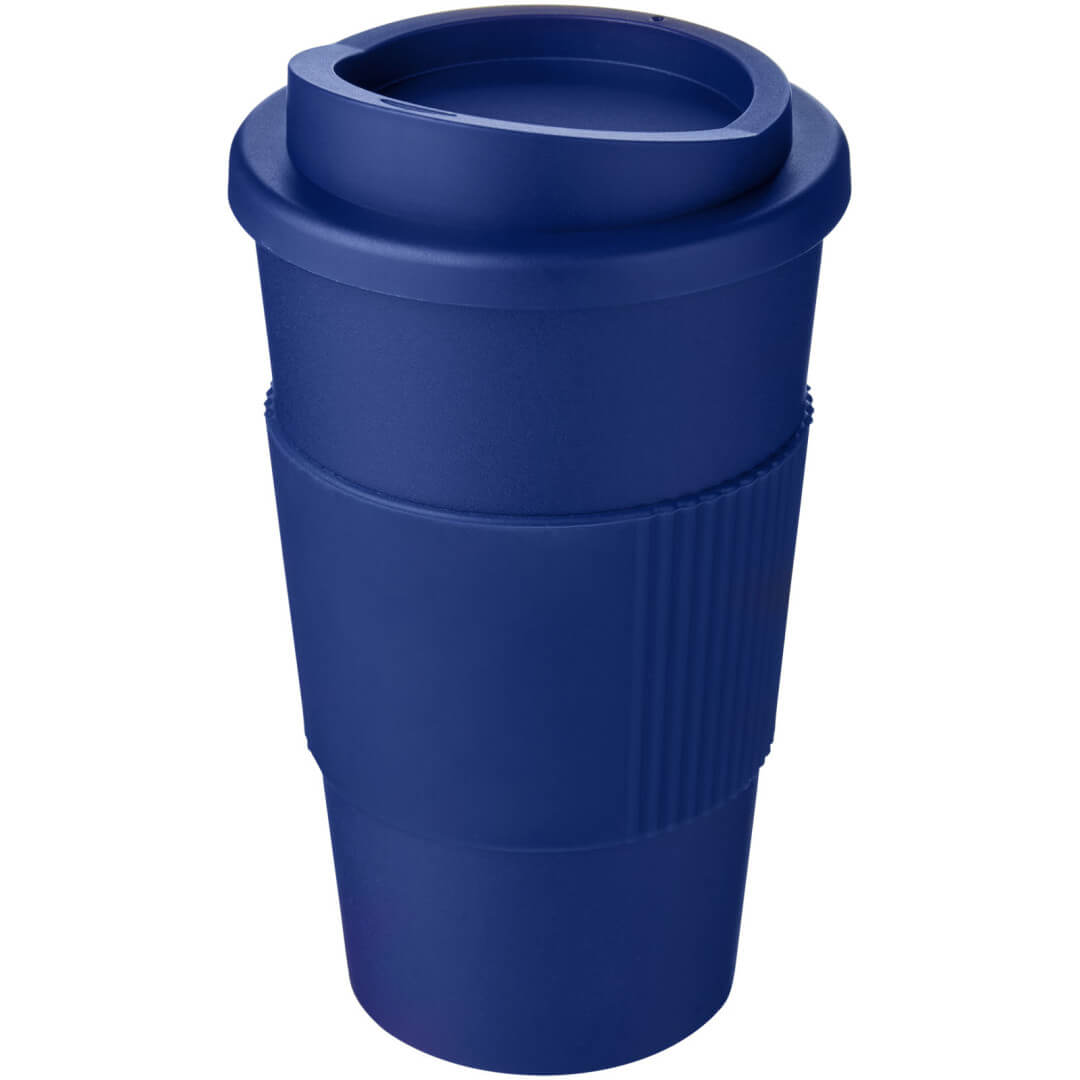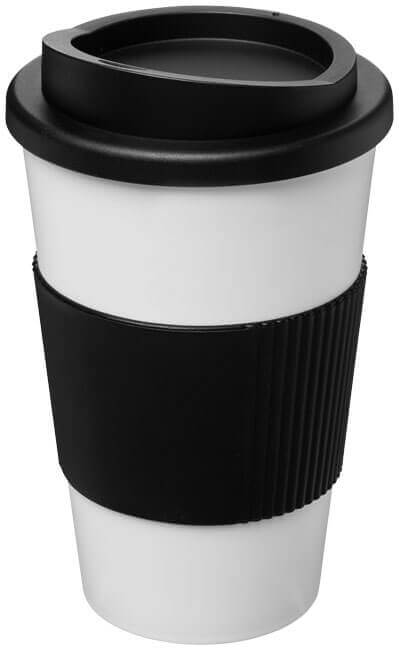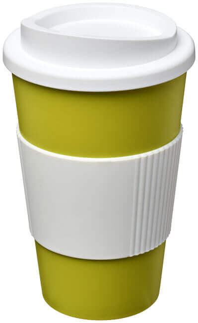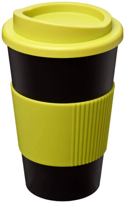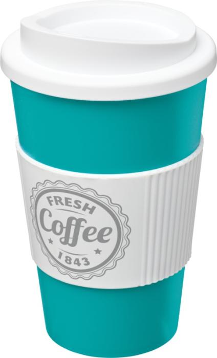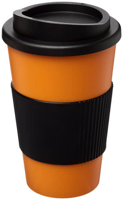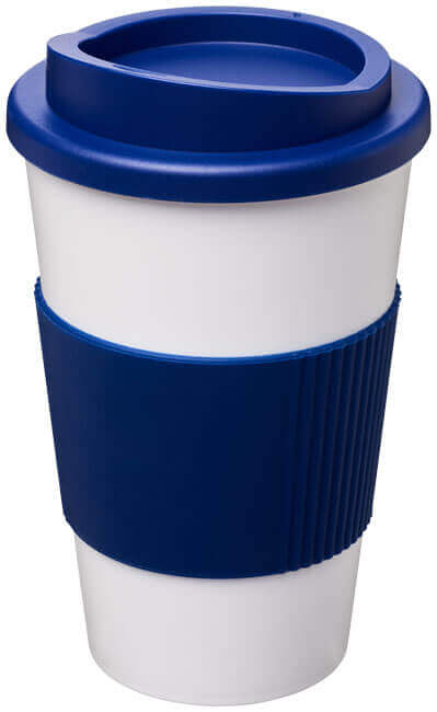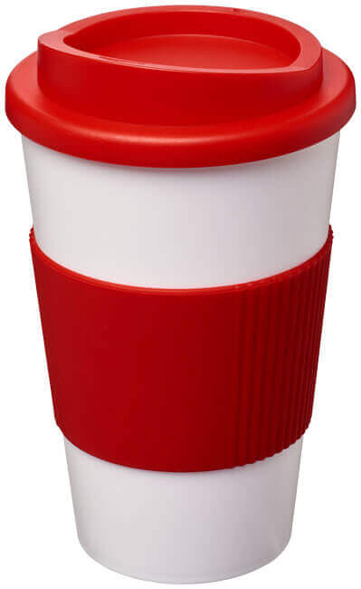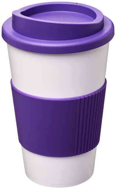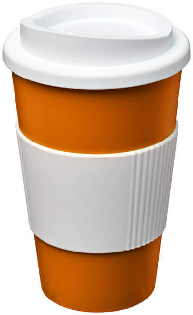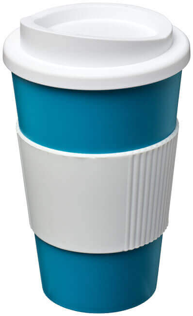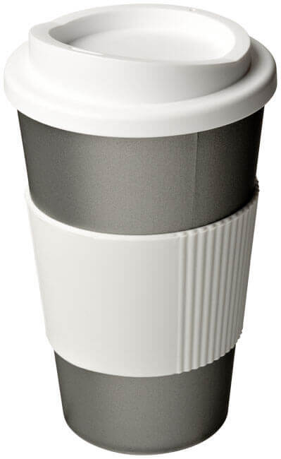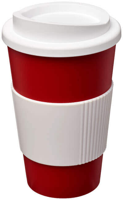 Termo hrnček s rukoväťou Americano® 350 ml. Izolovaný kalíšok s nasadzovacím vekom proti rozliatiu s dvojitou stenou a silikónovou rukoväťou. Objem je 350 ml. Miešajte a spájajte farby a vytvorte si tak svoj ideálny hrnček. Pre ďalšie možnosti farieb sa obráťte na zákaznícky servis. Vyrobené v Spojenom kráľovstve. Plast PP, silikón.