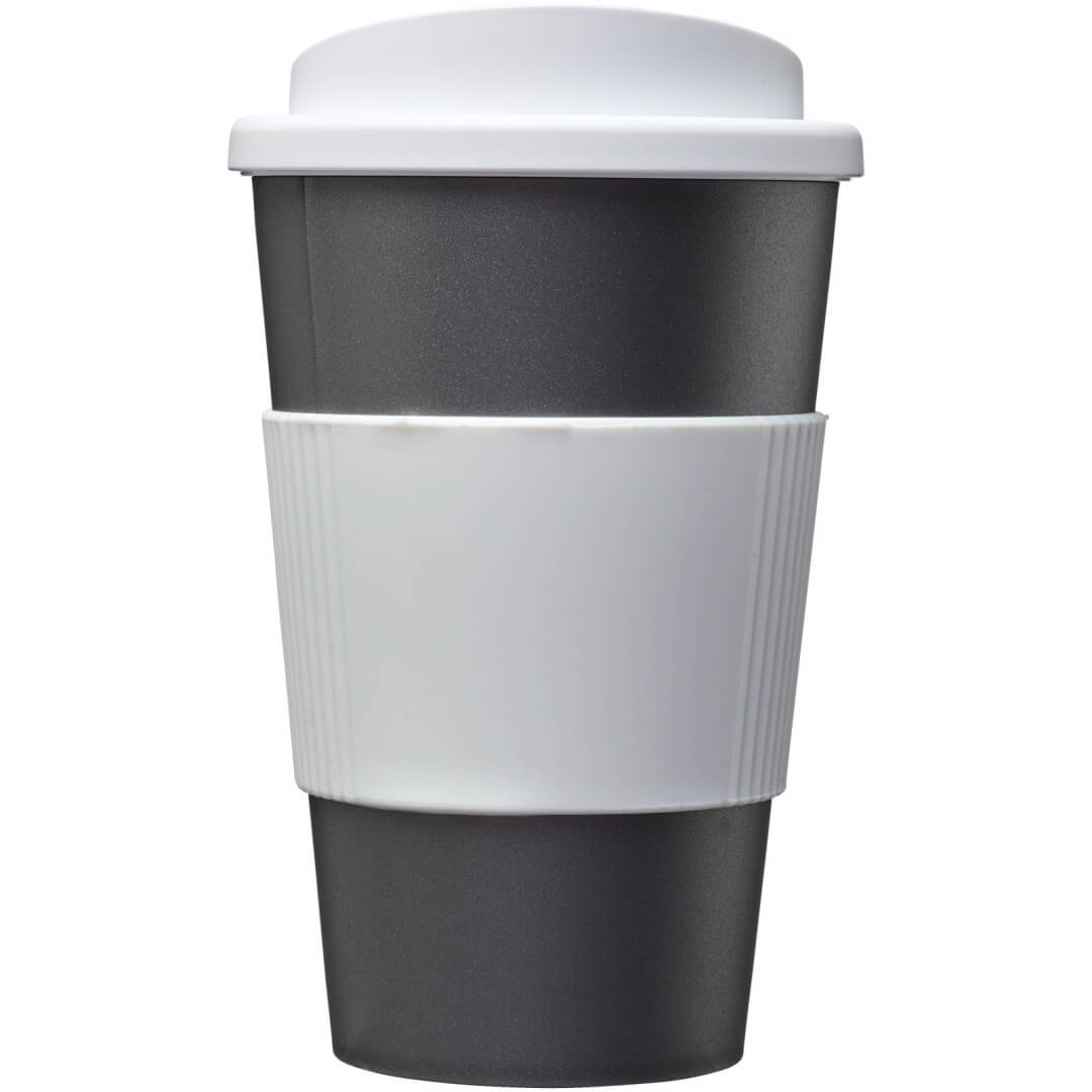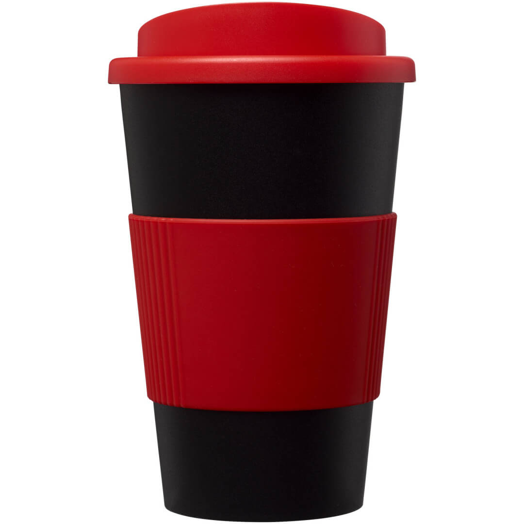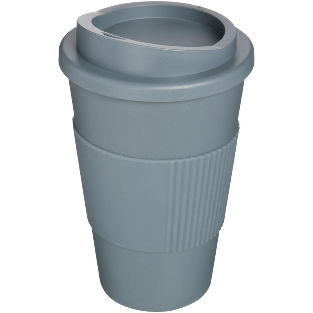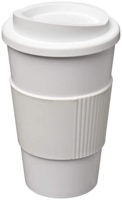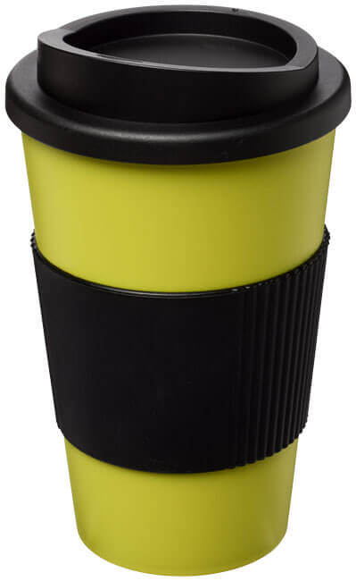 Termo hrnček s rukoväťou Americano® 350 ml. Izolovaný kalíšok s nasadzovacím vekom proti rozliatiu s dvojitou stenou a silikónovou rukoväťou. Objem je 350 ml. Miešajte a spájajte farby a vytvorte si tak svoj ideálny hrnček. Pre ďalšie možnosti farieb sa obráťte na zákaznícky servis. Vyrobené v Spojenom kráľovstve. Plast PP, silikón.