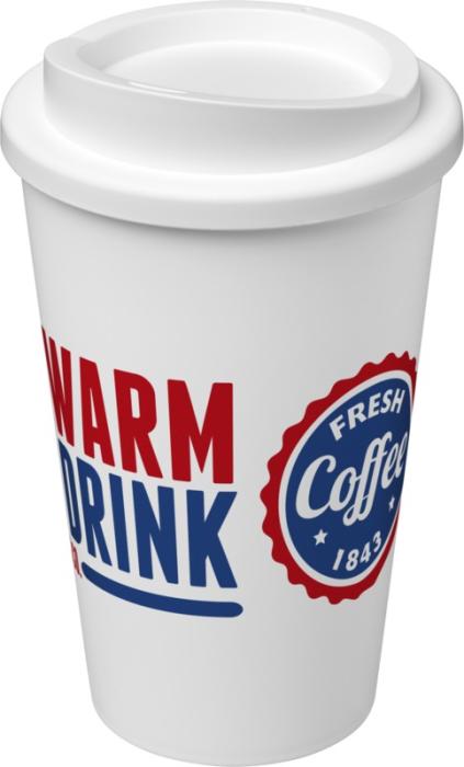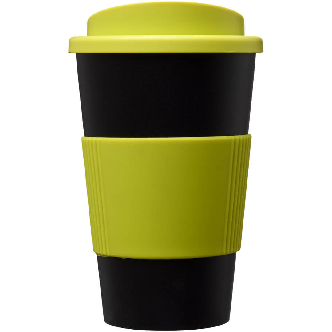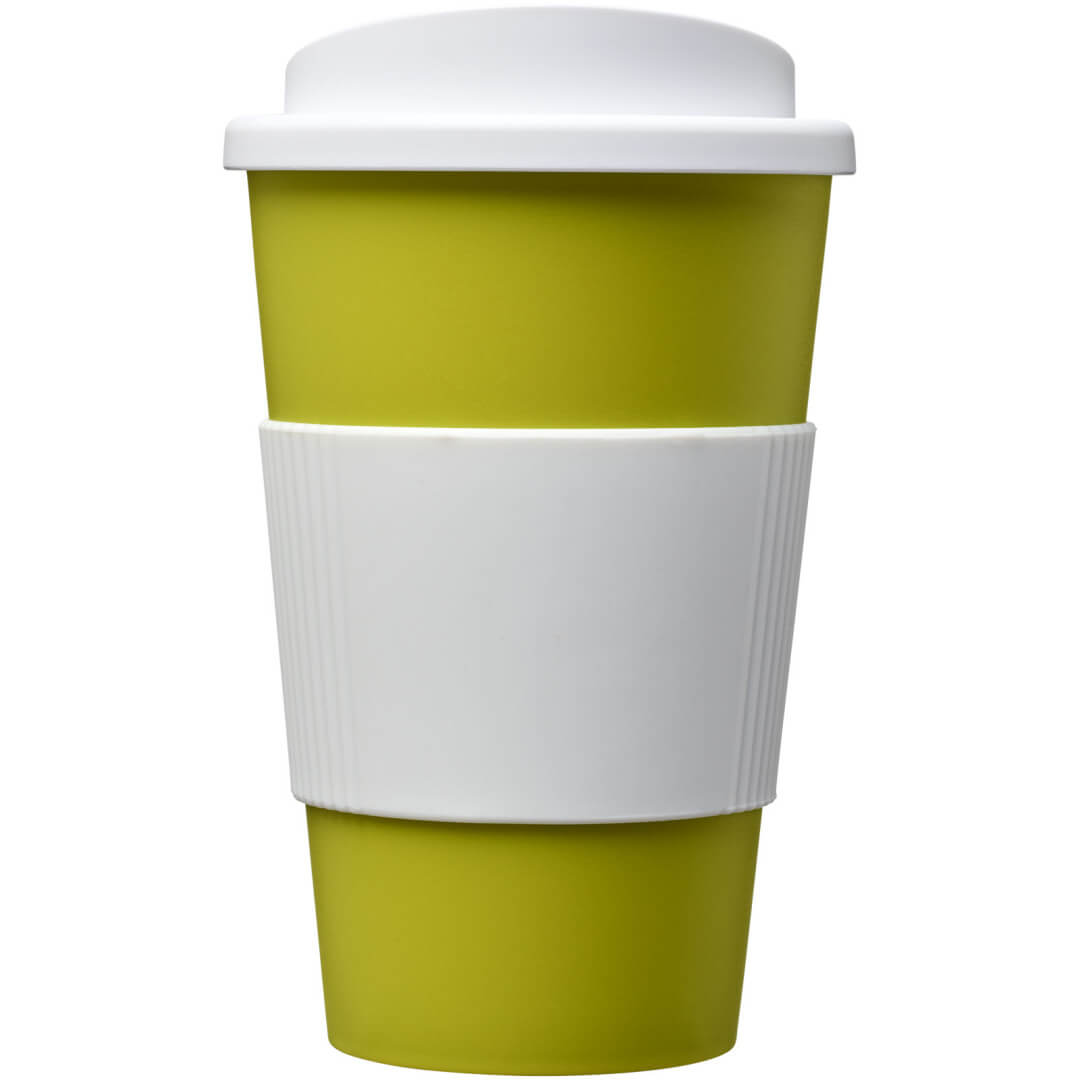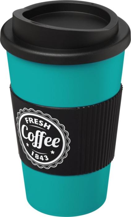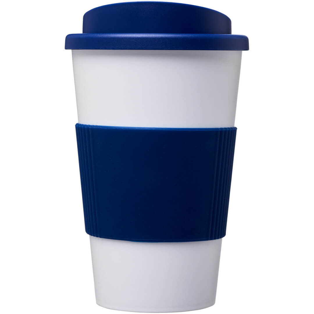 Termo hrnček s rukoväťou Americano® 350 ml. Izolovaný kalíšok s nasadzovacím vekom proti rozliatiu s dvojitou stenou a silikónovou rukoväťou. Objem je 350 ml. Miešajte a spájajte farby a vytvorte si tak svoj ideálny hrnček. Pre ďalšie možnosti farieb sa obráťte na zákaznícky servis. Vyrobené v Spojenom kráľovstve. Plast PP, silikón.