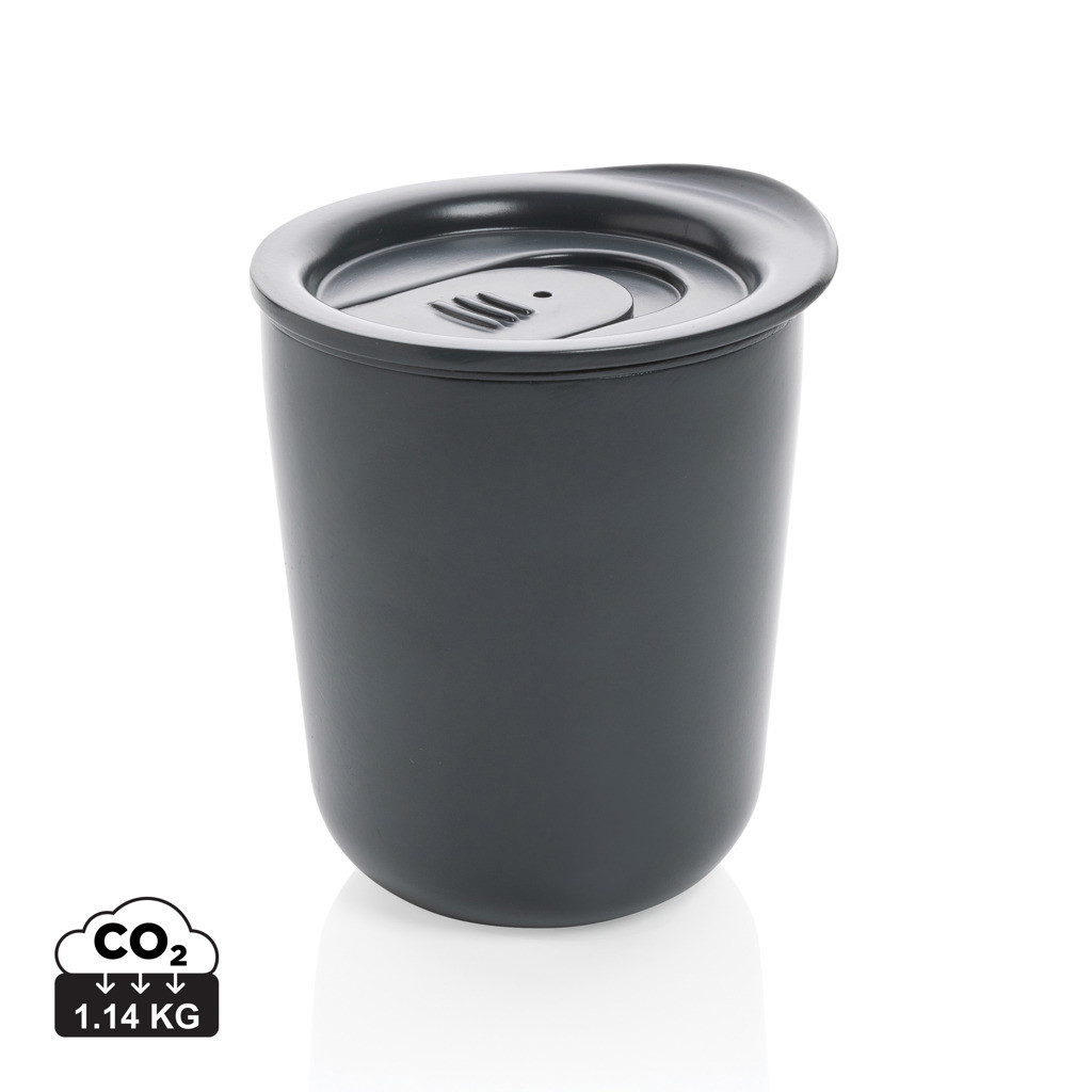 Jednoduchý termohrnček z nehrdzavejúcej ocele so špeciálnou antimikrobiálnou ochranou Biomaster. Tá je oproti štandardným ochranám obsiahnutá priamo vo výrobku, miesto na výrobku a tým zaisťuje trvalú ochranu. Výrobok bol testovaný v súlade 22197 (antimikrobiálna efektivita), je 100% bezpečný pre užívateľov a neznižuje možnosť recyklácie. Navyše obsahuje vystopovateľnú zložku Verimaster, pomocou ktorej je možné Biomaster ošetrenie garantovať. Uzatvárateľné viečko. Vnútri plast (PP), zvonku nehrdzavejúca oceľ. Objem: 250ml. Bez BPA.