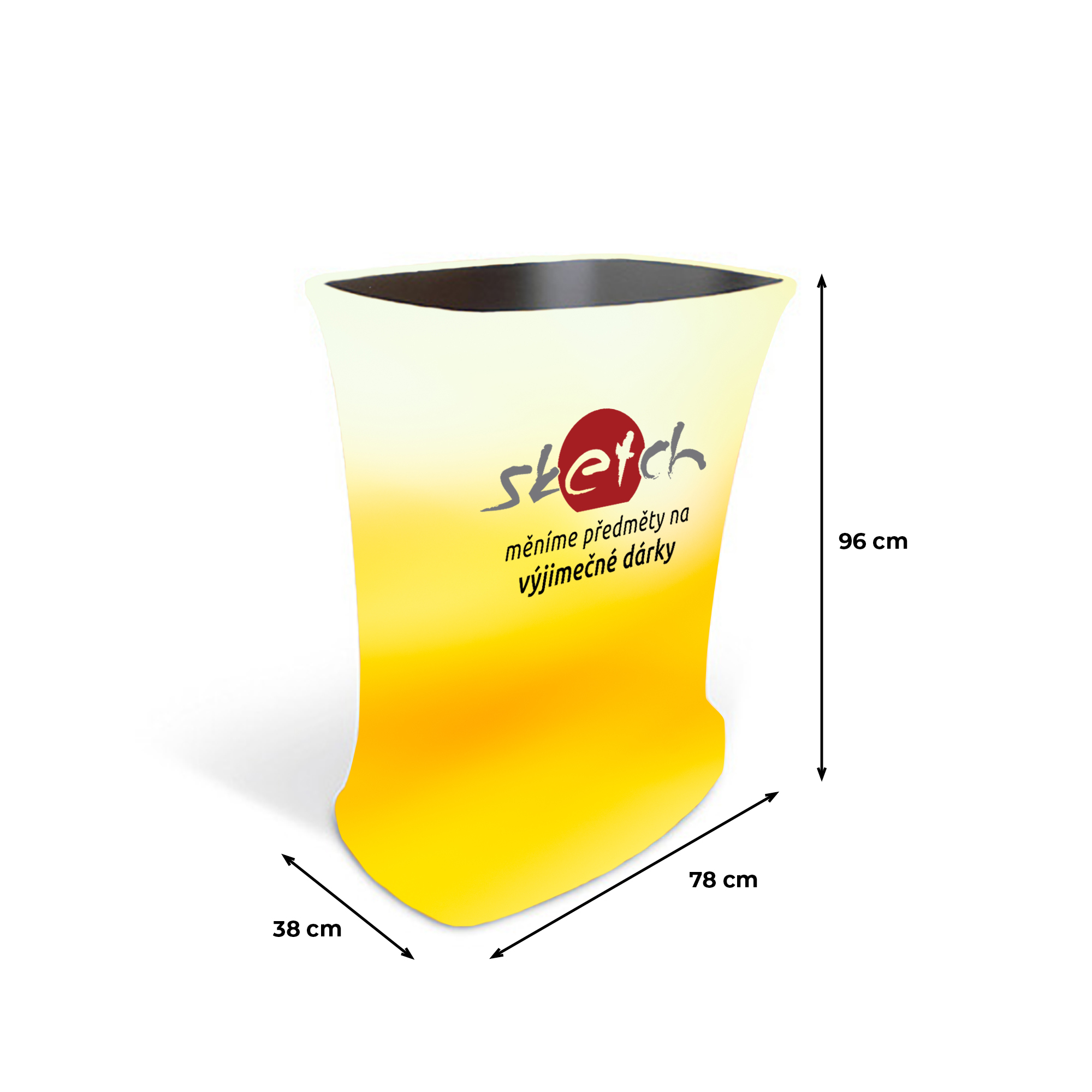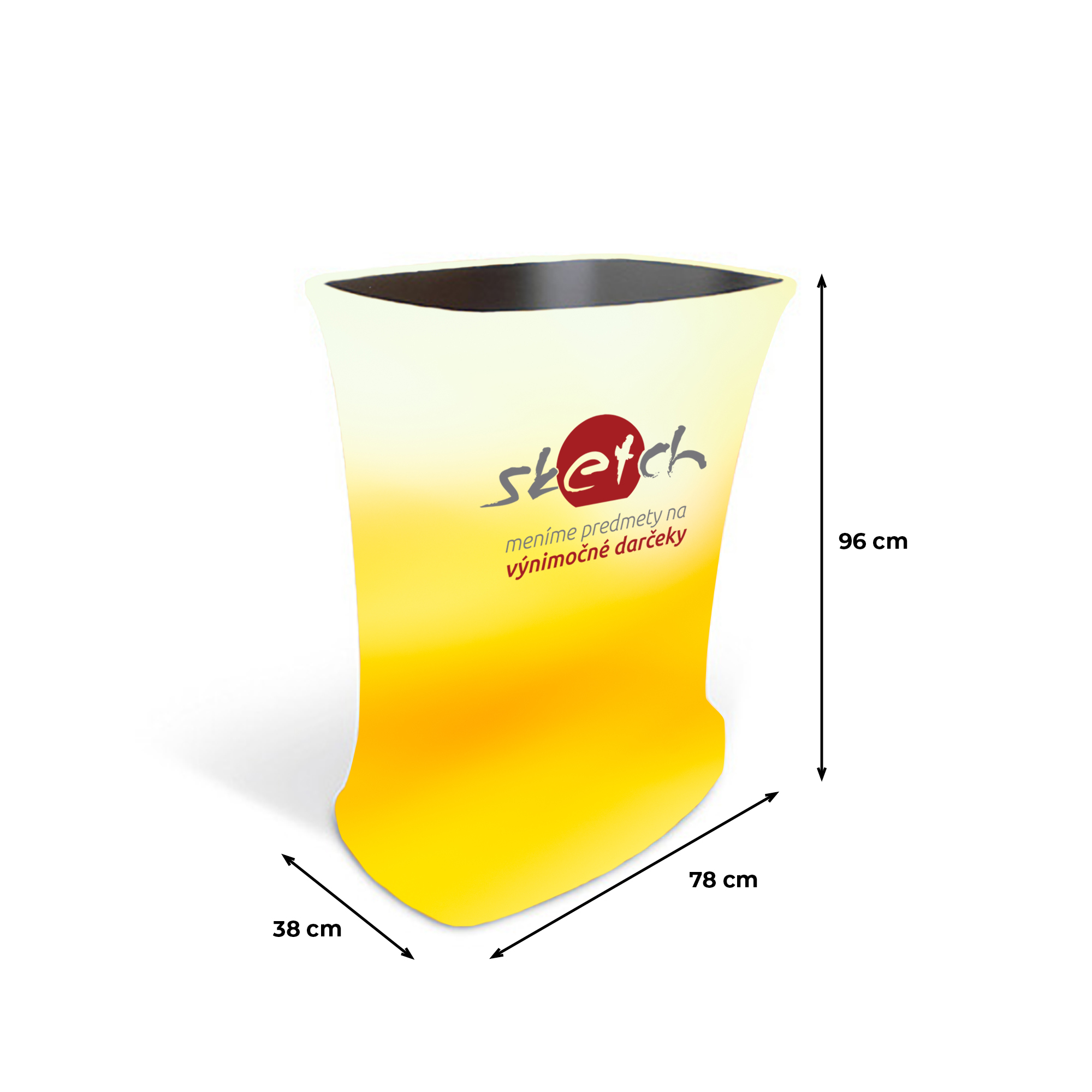 Polyesterová tkanina o hmotnosti 195 g/m2 je na konštrukciu pripevnená silikónovým pasíkom - grafika je rovnomerne napnutá a disponuje estetickým vzhľadom. Vďaka termosublimačnej tlači sú farby grafiky žiarivé, ale aj odolné (plachtu môžete jednoducho vyprať v práčke). Pult s vrchnou doskou z MDF a nosnosťou do 50 kg je ideálny pre živé prezentácie, firemné akcie, aj každodenné používanie vo firemnom prostredí. Stolík je vďaka hliníkovej konštrukcii ľahký a kompaktný, jednoduchý na prenos medzi rôznymi podujatiami.