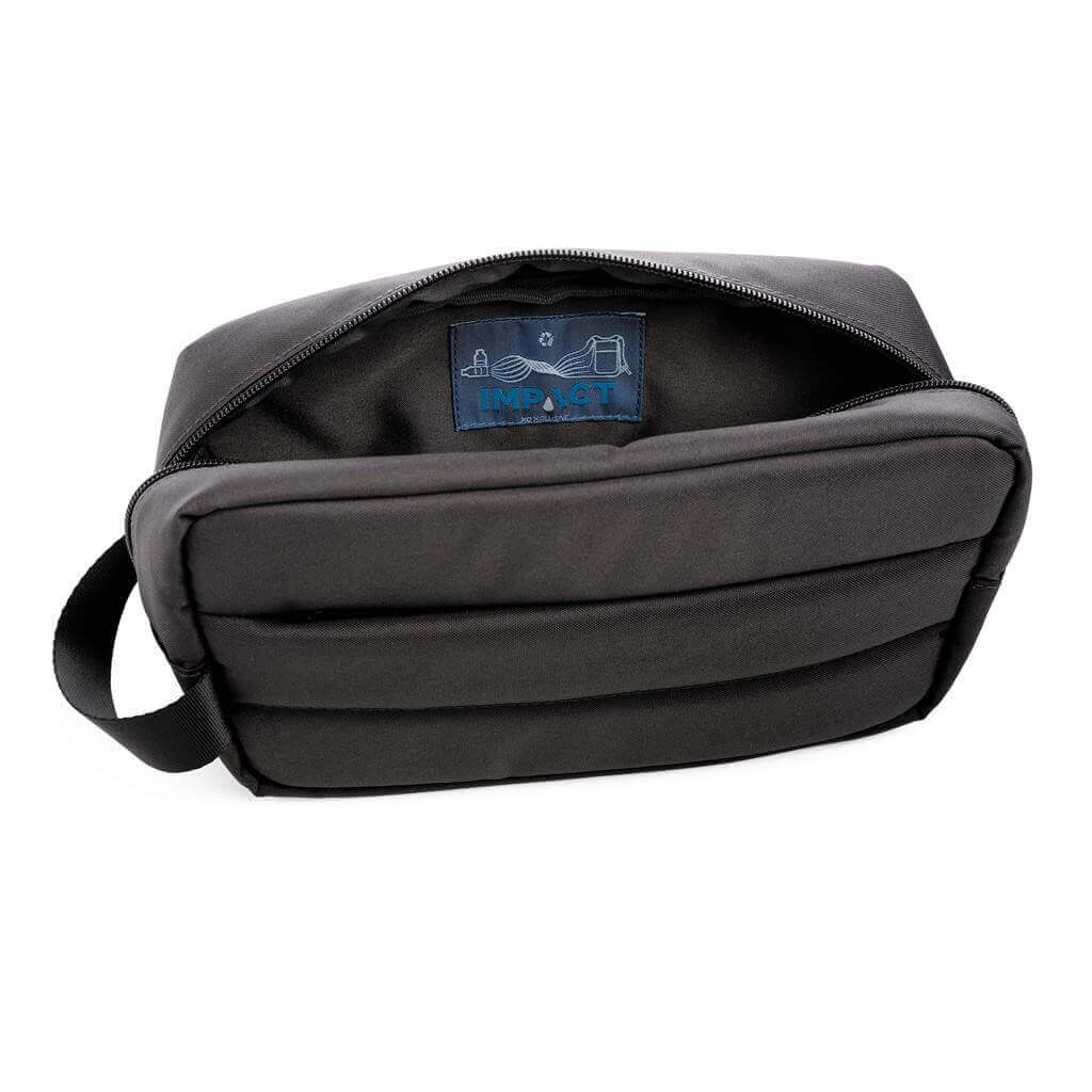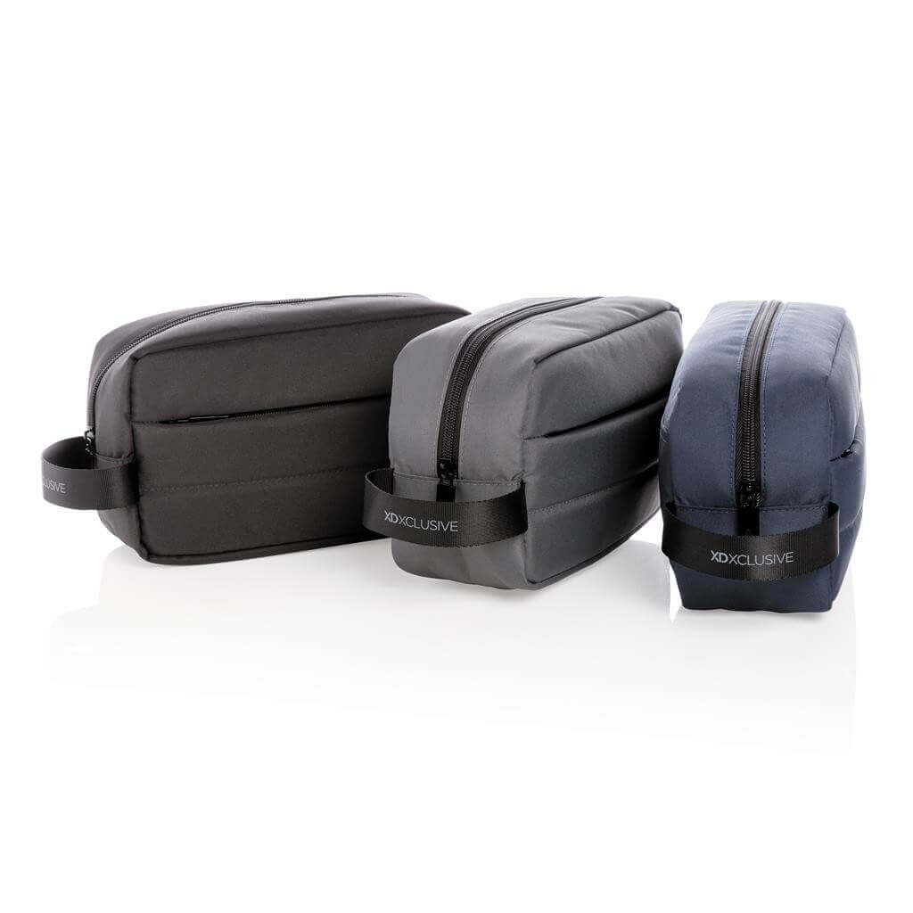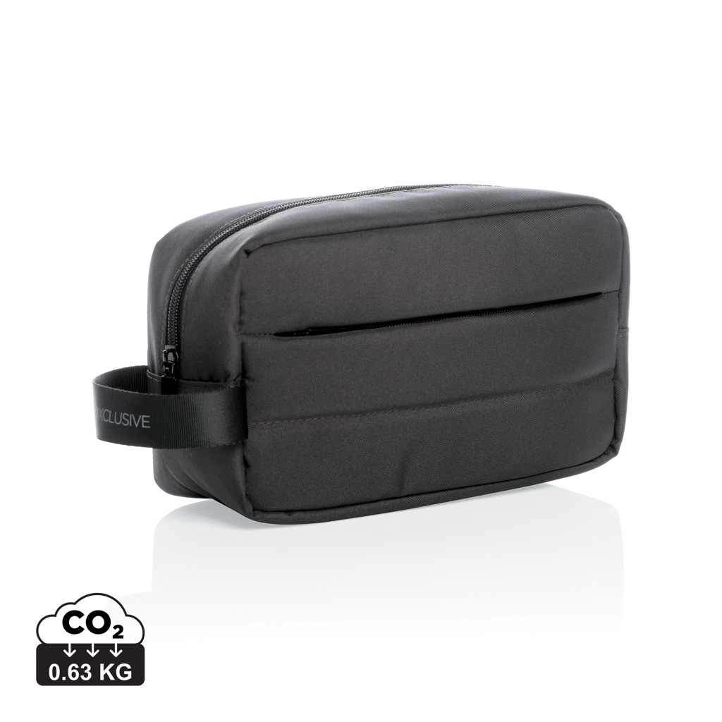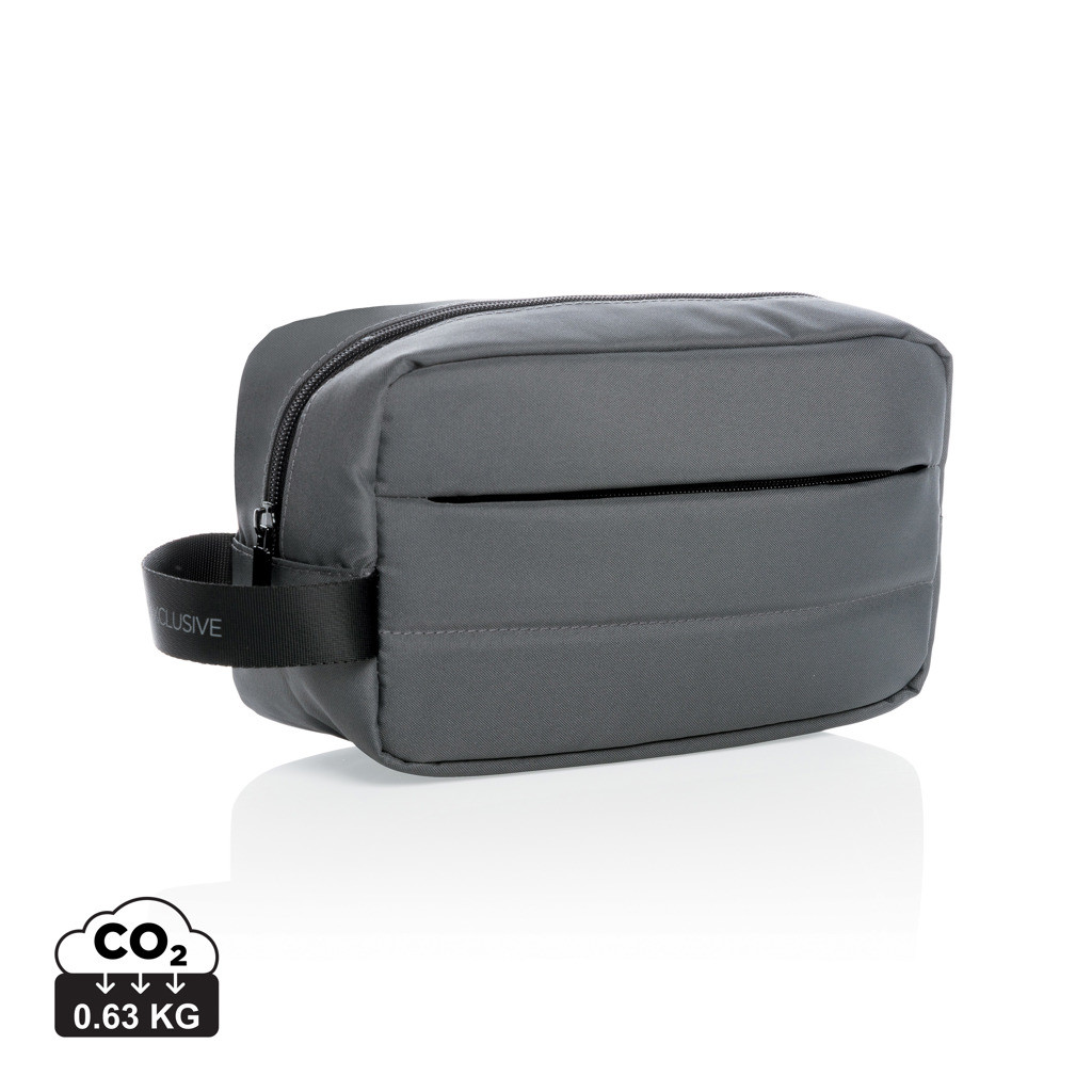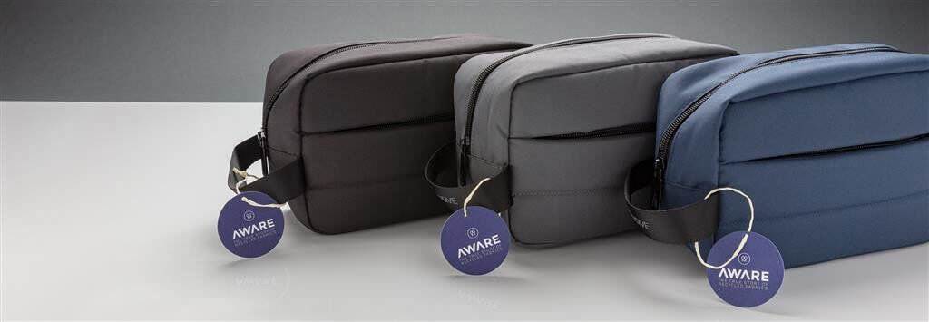 Unikátna toaletná taška vyrobená z RPET AWARE ™ pre prehľadnú organizáciu všetkých nutných toaletných potrieb na cestách. Priestranný hlavný oddiel, predné vrecko na zips na drobnosti. Vonkajšia časť i vnútorná podšívka sú vyrobené zo 100% polyesteru AWARE ™ získaného z recyklovaných PET fliaš. AWARE ™ využíva skutočne recyklované materiály, kde sú použité špeciálne technológie dohľadateľné od ich zdroja. Recyklácia má pozitívny vplyv na životné prostredie a pri výrobe šetrí obrovské množstvo vody. Bez PVC.