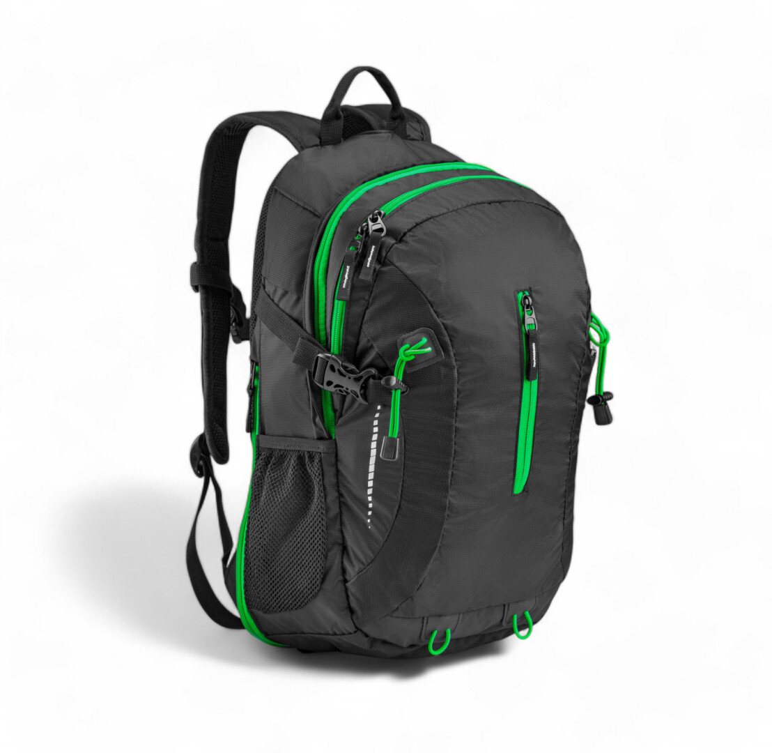 Športový batoh z kolekcie FLASH. Vyrobený z vysokokvalitných materiálov: polyestru a nylonu, vďaka čomu je odolný na poškodenia a predretie. Má priestrannú hlavnú komoru a menšie funkčné vrecko na drobnosti. Je vybavený systémom zabraňujúcim poteniu pliec a vyznačuje sa spevnenými popruhmi, veľkými reflexnými prvkami a výstupom na slúchadlá. Navyše má puzdro na batoh. Objem: 20 l.