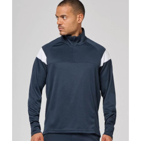 Materiál: 200g/m2, 100% polyester, interlock. Rovný strih, vsadka na hrudi a ramenách v kontrastnej farbe, stojatý golier s 1/4 zipsom, raglánové rukávy v kontrastnej farbe, textúrované textilné vsadky na bokoch a vzadu, zips s ochranou brady, nylonový zips, bočné rázporky, predĺžený chrbát, matný povrch, štítok TearAway.