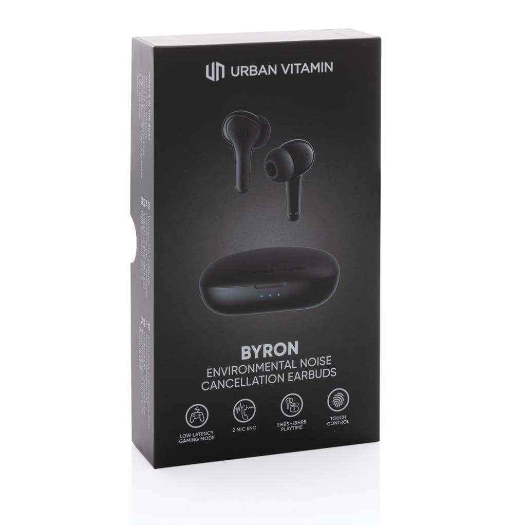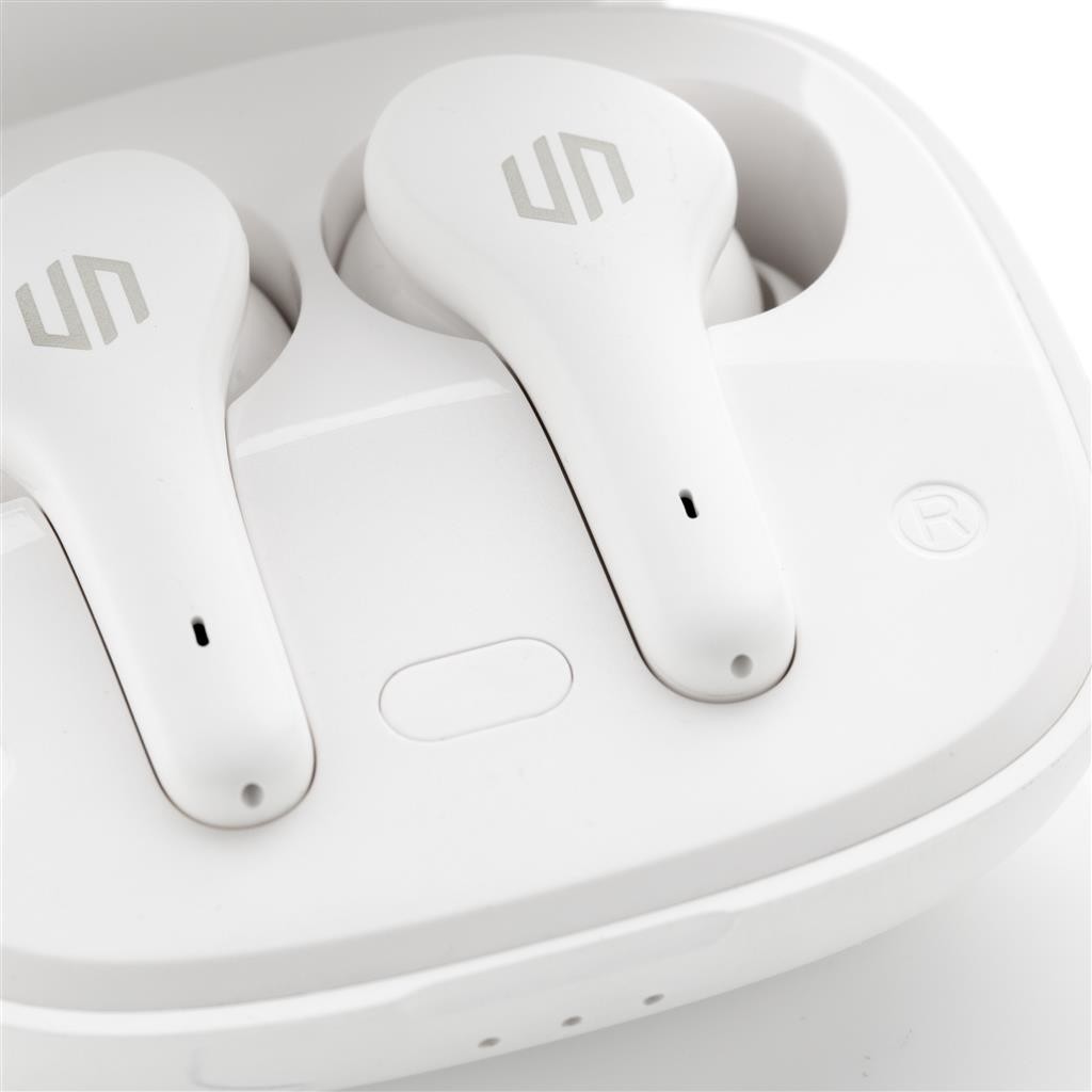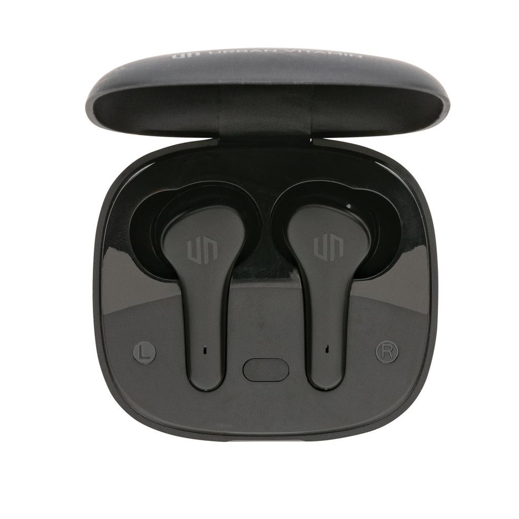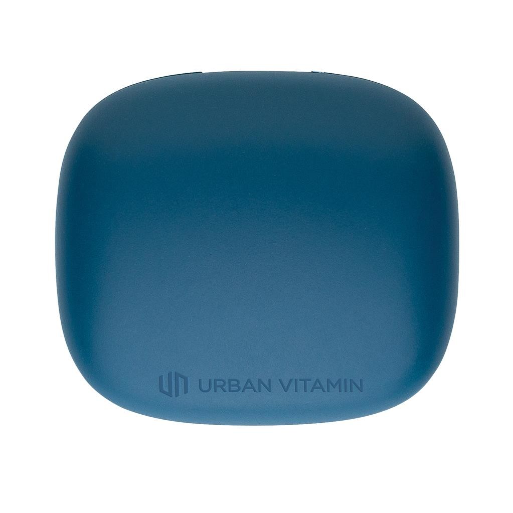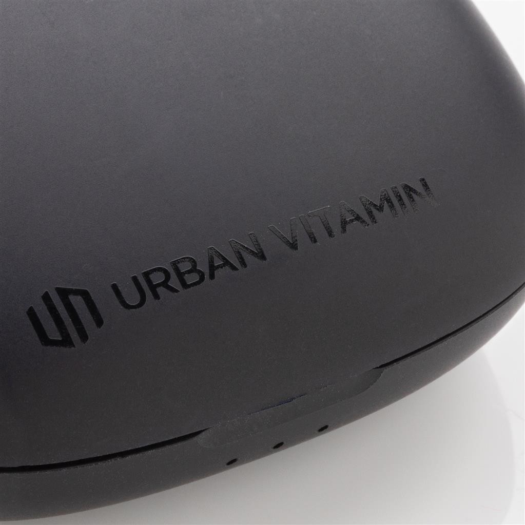Skutočne bezdrôtové slúchadlá v kompaktnom, napriek tomu výkonnom prevedení. Technológia ENC tlmí okolitý hluk, vďaka čomu bude váš hlas v mikrofóne mimoriadne čistý a nerušený. Prichádzajúci hovor je možné prijať jednoducho dotykom na slúchadlo. Disponujú špeciálnym režimom s nízkou latenciou (65 ms), ktorý znižuje odozvu medzi obrazom a zvukom. Sú teda ideálne na videohovory, hranie hier alebo sledovanie filmov. Pohodlné koncovky do uší. Počúvanie po dobu až 5 hodín na jedno nabitie. Nabíjacia krabička umožňuje dobitie na počúvanie až ďalších 18 hodín. IPX4 zabezpečuje odolnosť voči nepriazni počasia alebo potu, sú teda vhodné aj na vonkajšie aktivity a šport. Produkty značky Urban Vitamin sú vyrobené bez PVC a balené v ekologickom balení. 1 batéria typu Li-poly súčasťou balenia.