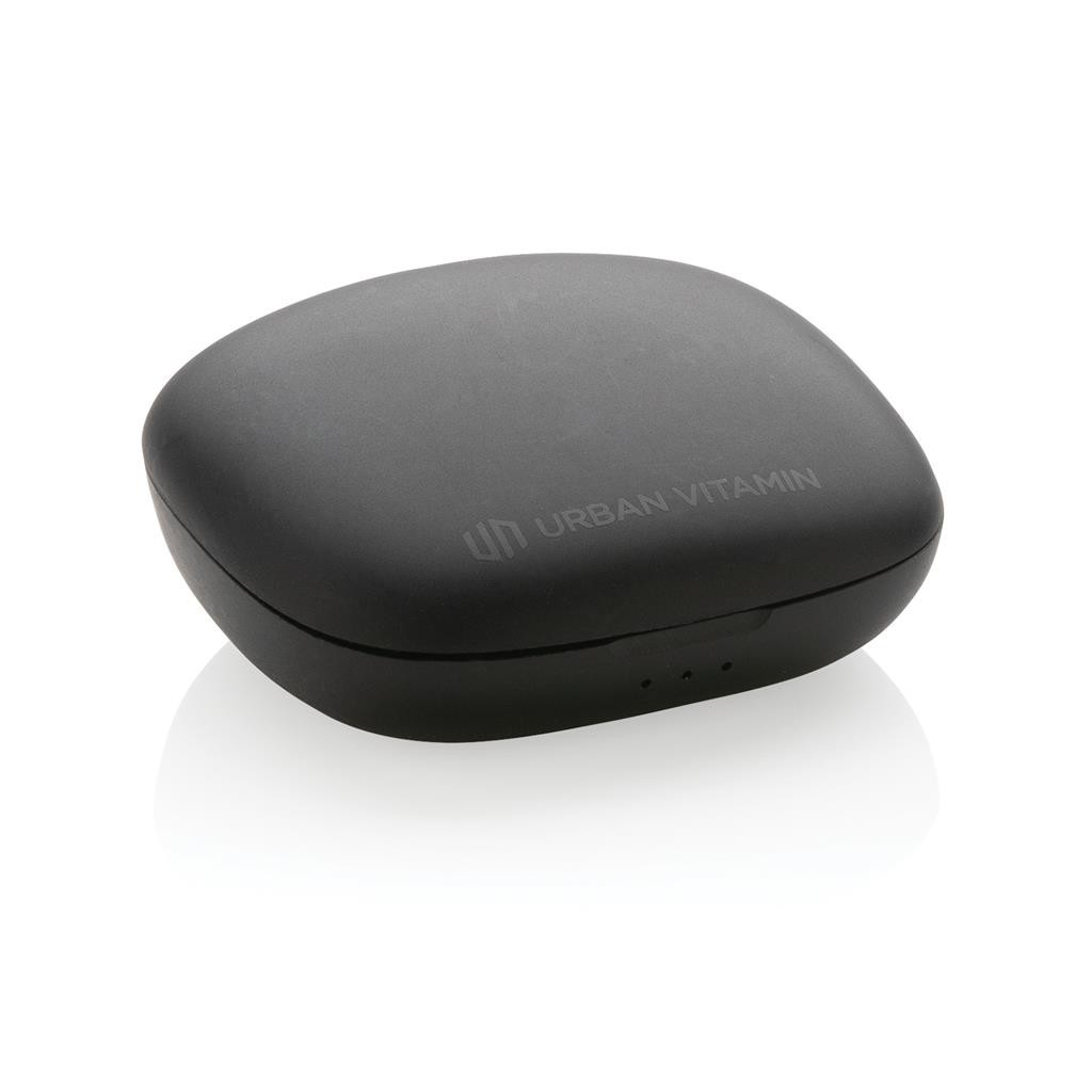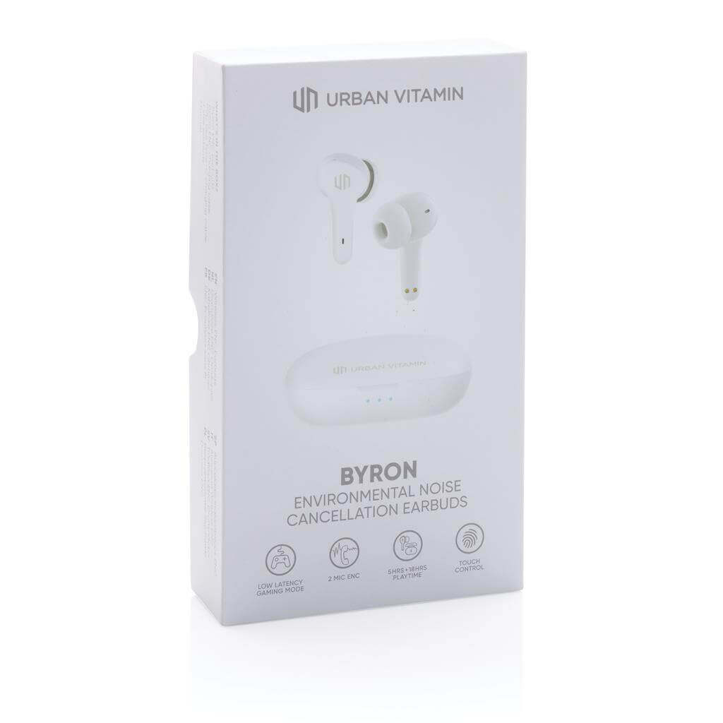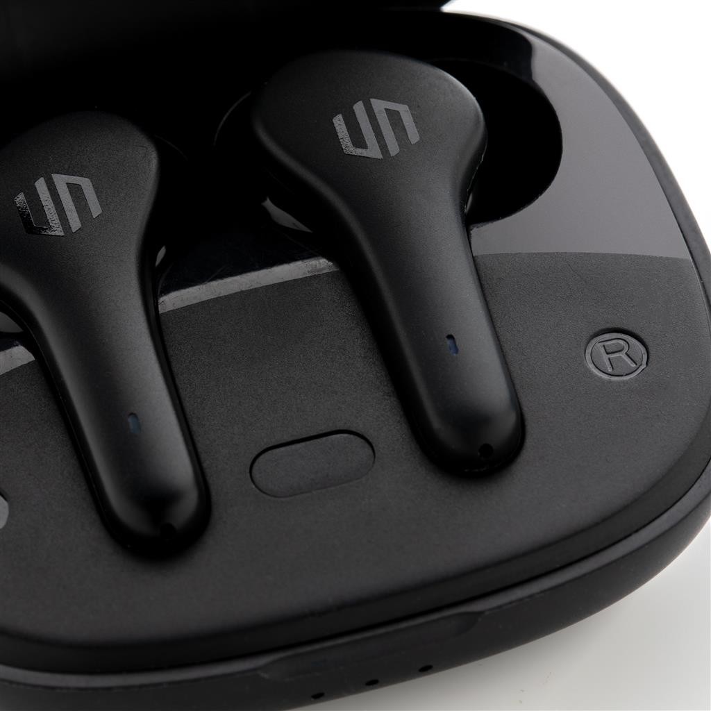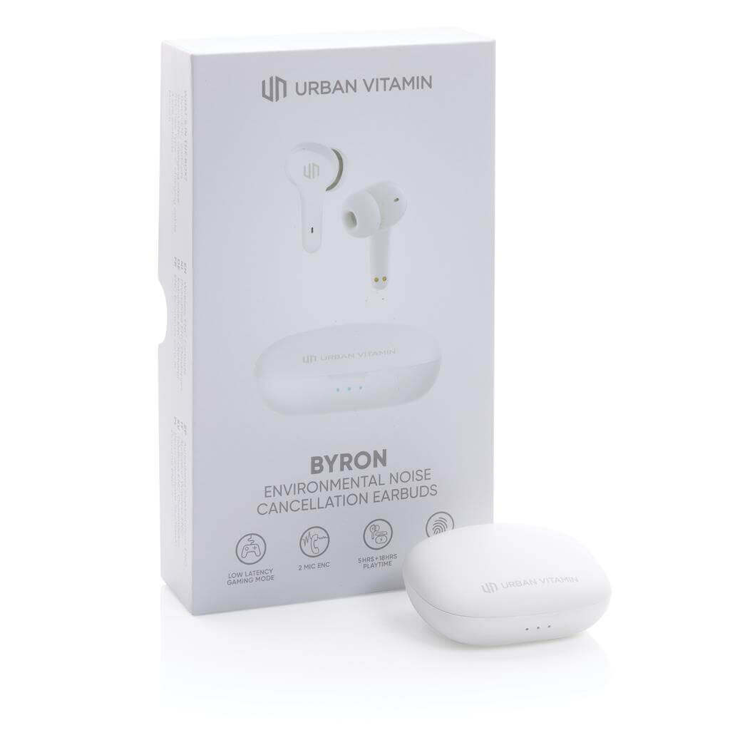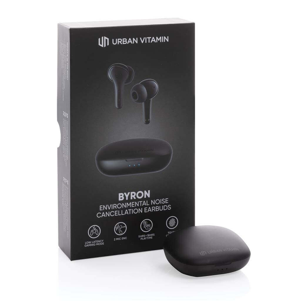 Skutočne bezdrôtové slúchadlá v kompaktnom, napriek tomu výkonnom prevedení. Technológia ENC tlmí okolitý hluk, vďaka čomu bude váš hlas v mikrofóne mimoriadne čistý a nerušený. Prichádzajúci hovor je možné prijať jednoducho dotykom na slúchadlo. Disponujú špeciálnym režimom s nízkou latenciou (65 ms), ktorý znižuje odozvu medzi obrazom a zvukom. Sú teda ideálne na videohovory, hranie hier alebo sledovanie filmov. Pohodlné koncovky do uší. Počúvanie po dobu až 5 hodín na jedno nabitie. Nabíjacia krabička umožňuje dobitie na počúvanie až ďalších 18 hodín. IPX4 zabezpečuje odolnosť voči nepriazni počasia alebo potu, sú teda vhodné aj na vonkajšie aktivity a šport. Produkty značky Urban Vitamin sú vyrobené bez PVC a balené v ekologickom balení. 1 batéria typu Li-poly súčasťou balenia.