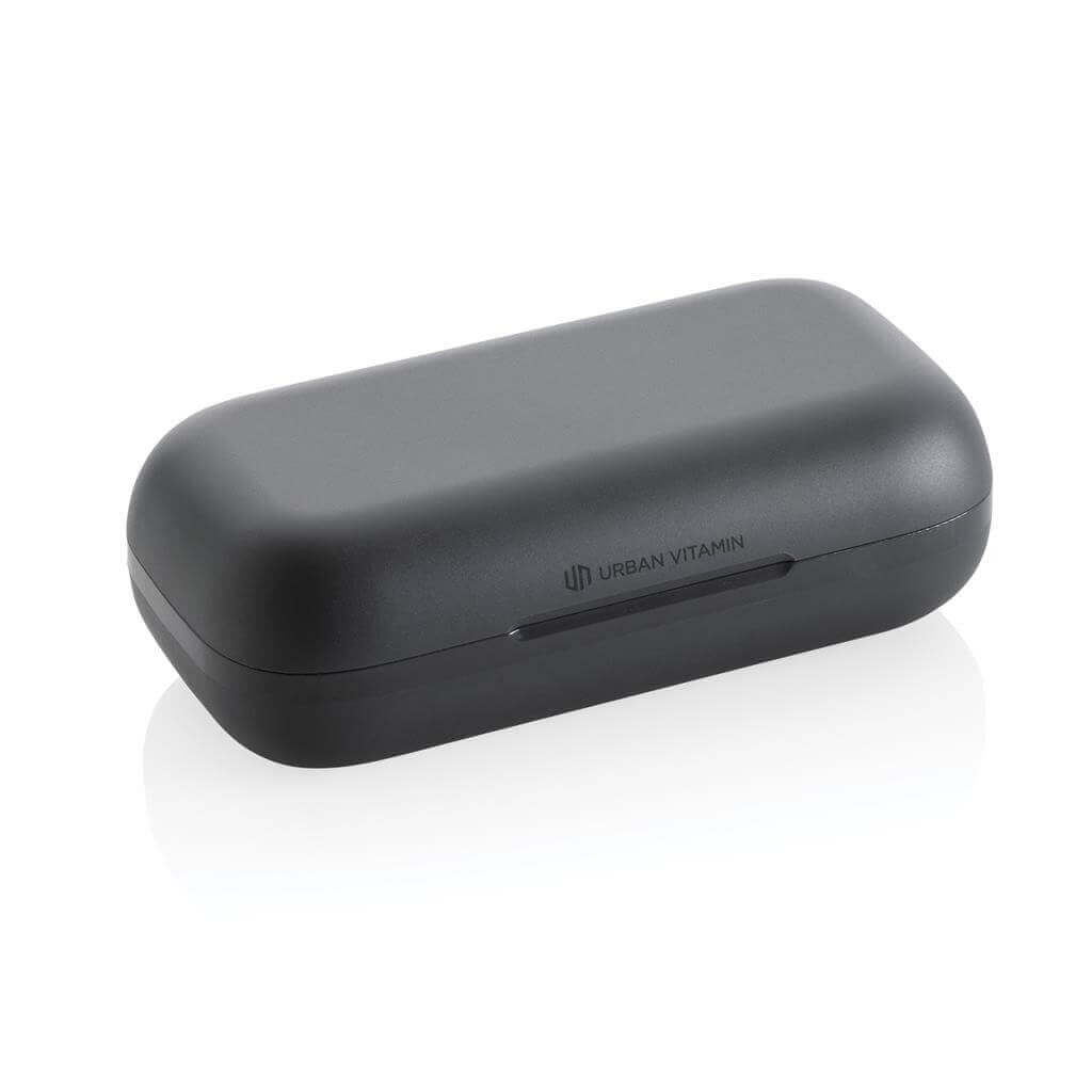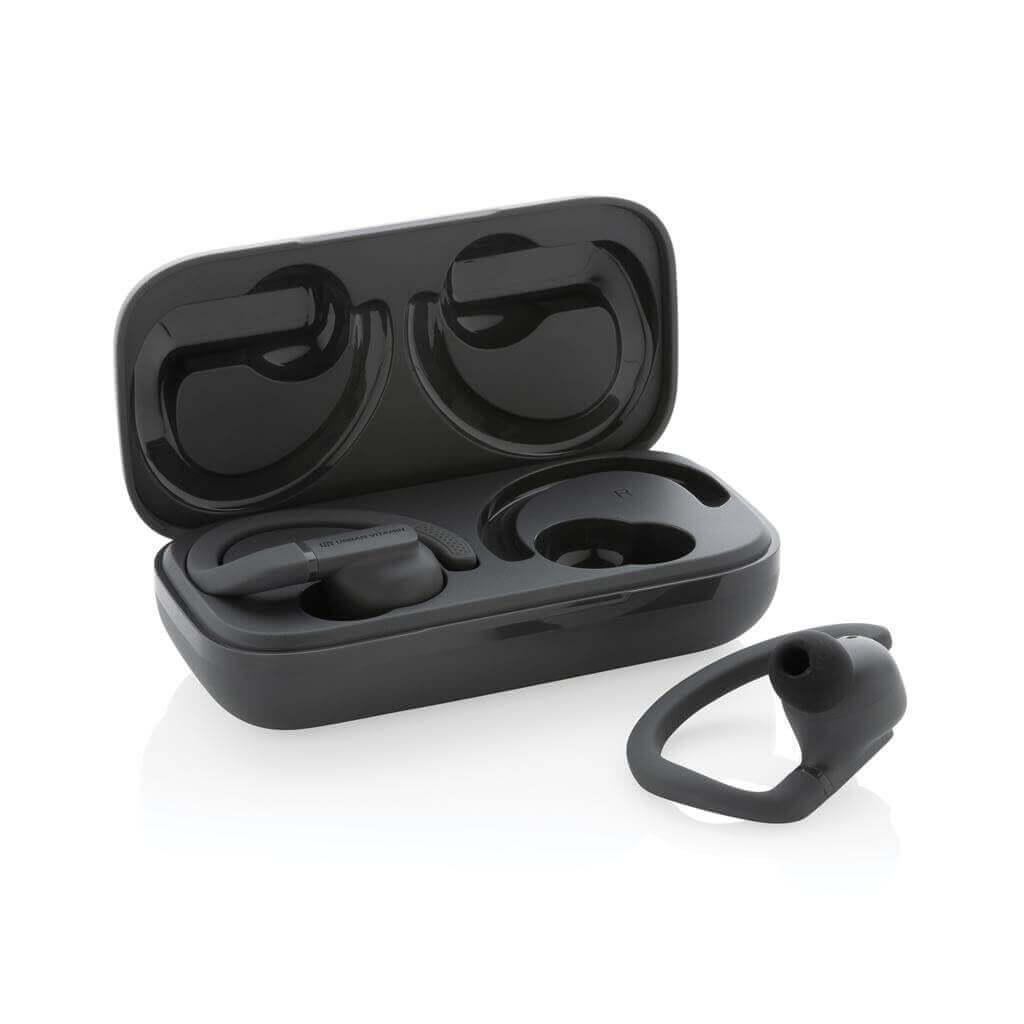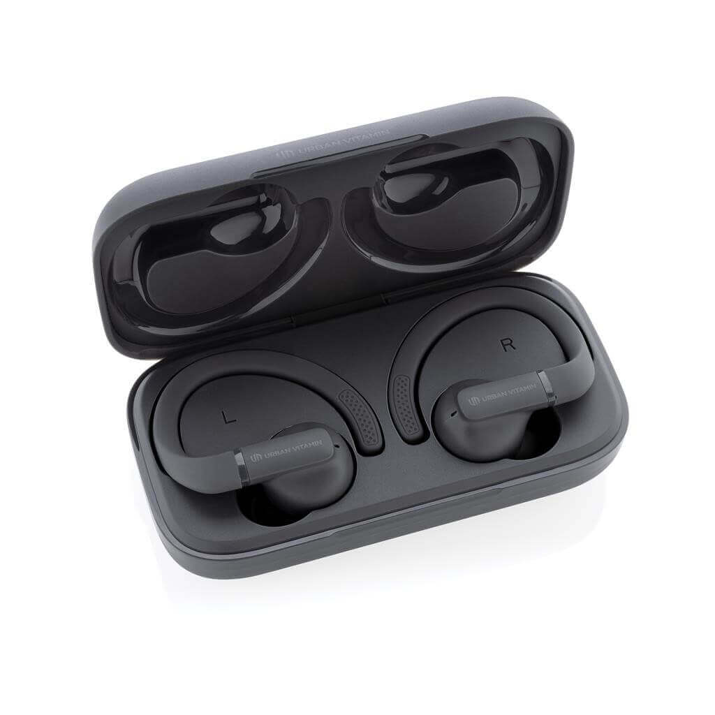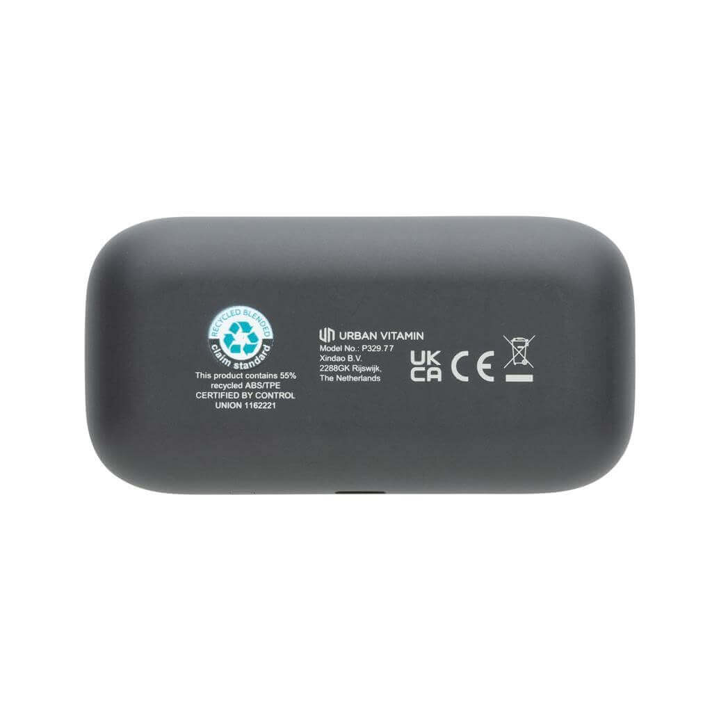 Skvele vybavené TWS slúchadlá pre komfortné použitie pri športe. Prispôsobiteľné háčiky za uši a rozličné veľkosti nástavcov do uší skvele padnú naozaj každému. Športujete tak bez starostí o vypadnutie či strate slúchadiel. Ľahké, napriek tomu veľmi odolné prevedenie, vysoká kvalita zvuku a IPX5 vodeolnosť pre bezpečné použitie v kombinácii s potom alebo nepriaznivým počasím. Nabíjacia krabička s kapacitou 600 mAh. Batéria slúchadiel umožňuje počúvanie po dobu až 8 hodín a až 3x ich možno plne nabiť z dobíjacej krabičky. Pokročilá bezdrôtová technológia BT 5.3 pre bezproblémové pripojenie. Slúchadlá aj krabička sú vyrobené z RCS recyklovaného ABS plastu. RCS (Recycled Claim Standard) je globálny štandard, ktorý umožňuje overiť použitie recyklovaného materiálu v produkte naprieč celým dodávateľským reťazcom. Celkový podiel recyklátu podľa váhy produktu: 55 %. Produkt aj príslušenstvo bez PVC. Balené v darčekovom balení Urban Vitamin s minimálnym obsahom plastov. 3 batérie typu Li-ion súčasťou balenia.
