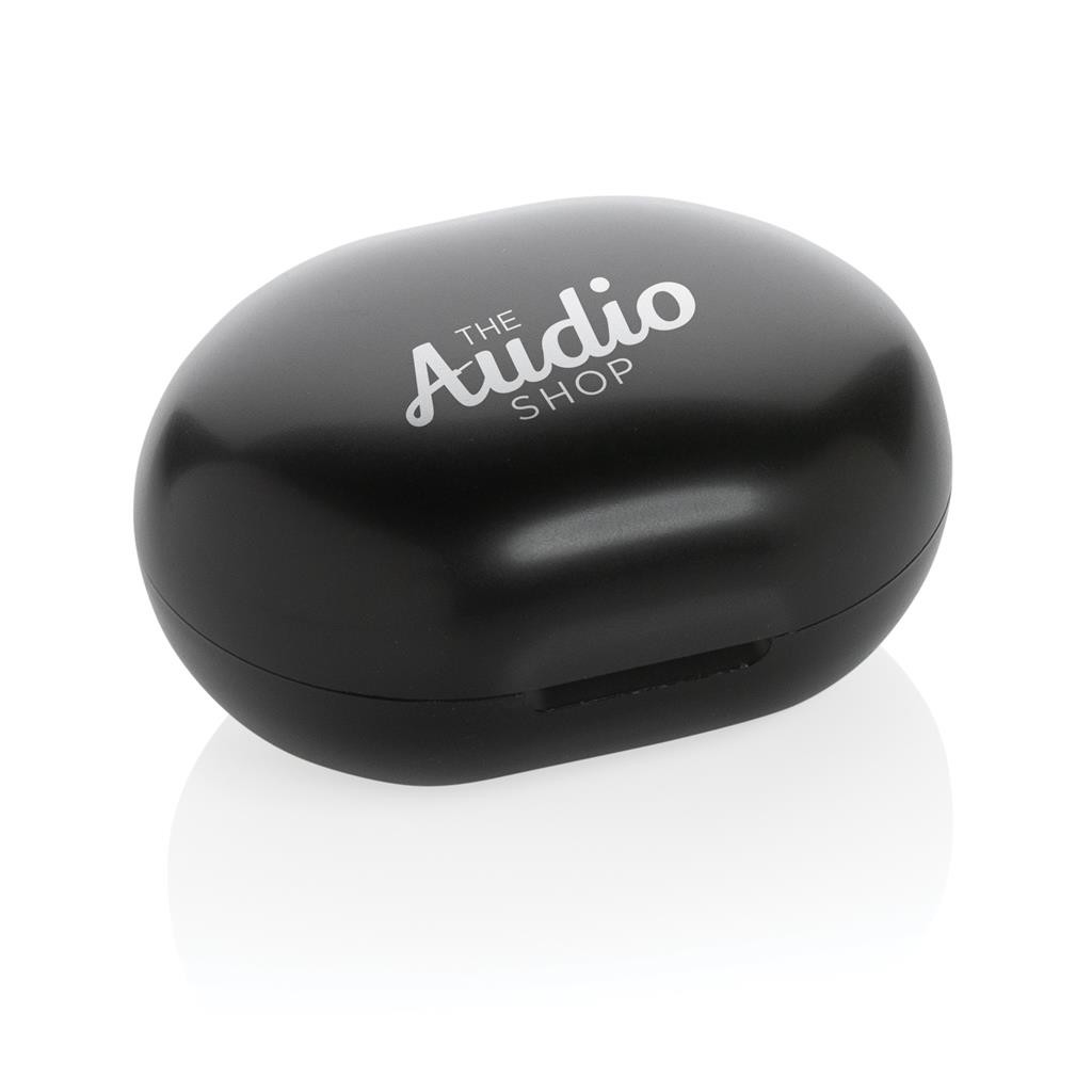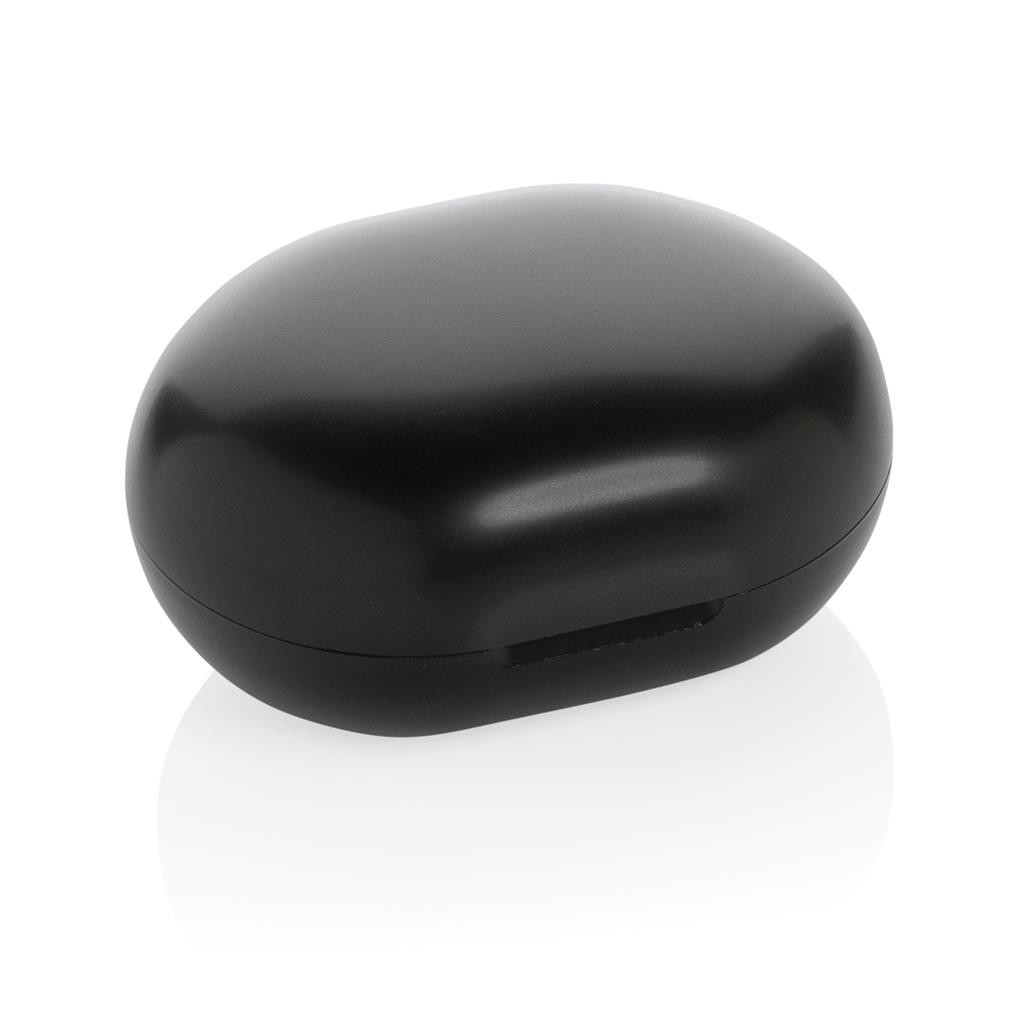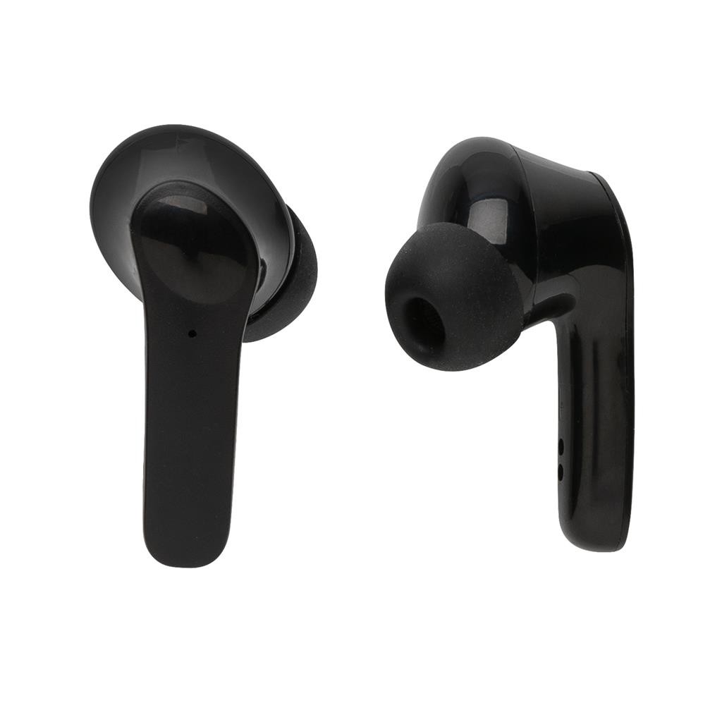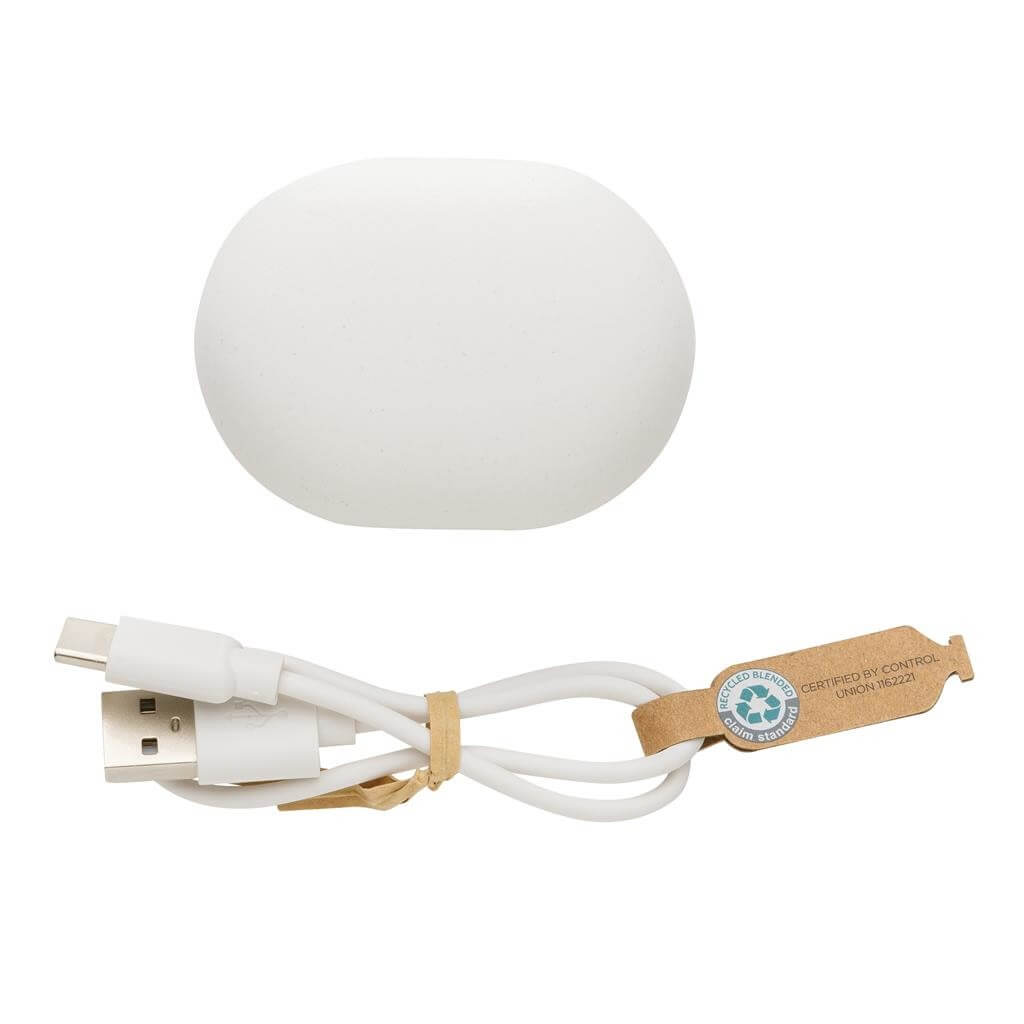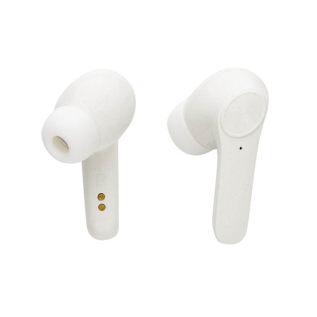 Skutočne bezdrôtové slúchadlá vyrobená z recyklovaného ABS plastu s RCS certifikáciou (slúchadlá i krabička). RCS (Recycled Claim Standard) je globálny štandard, ktorý umožňuje overiť použitie recyklovaného materiálu v produkte naprieč celým dodávateľským reťazcom. Batéria s kapacitou 40 mAh pre počúvanie po dobu až 4h. Nabíjací krabička s kapacitou 300 mAh slúchadlá plne dobije už za 1,5h. BT 5.0 zaisťuje jednoduché automatické párovanie a stabilné bezdrôtové spojenie na vzdialenosť až 10m. Mikrofón pre možnosť telefonovania, dotykové tlačidlo pre príjem hovorov alebo pozastavenie hudby. Vrátane nabíjacieho kábla z recyklovaného TPE. Výrobok je kompletne bez PVC. 1 bateria typu Li-poly súčasťou balenia.