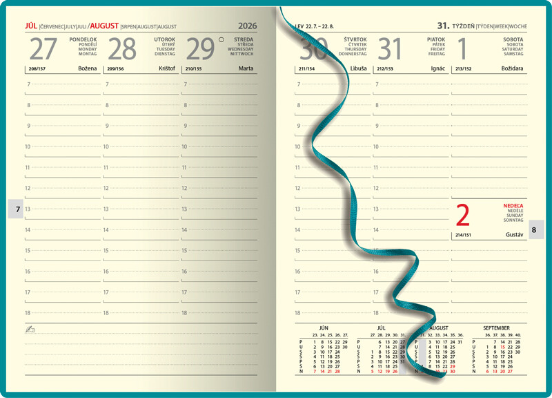 Exkluzívny týždenný diár z rady GUSTAV KLIMT. Jedinečná technológia vytvára skutočný dojem zlata na motíve jeho obrazu "Adele" na podklade s kovovým leskom. Diár je v pevnej väzbe s prednou penou, soft touch laminom a červenou, modrou, zlatou razbou. Slovenské kalendárium. Jediný svojho druhu na trhu.