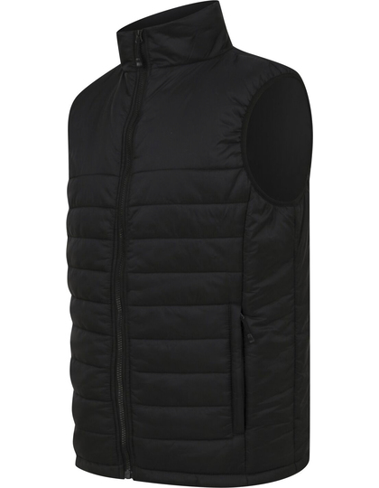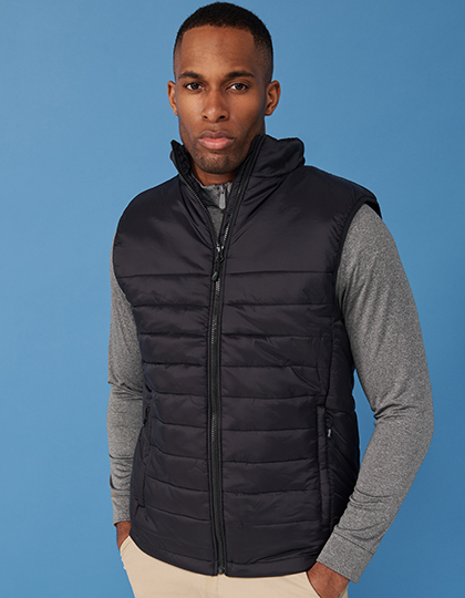 100% Nylon Pongee vodu odpudzujúca tkanina. 40 g/m² | Podšívka: polyesterový taft, 210T, 60 g/m² | Prešívané polyesterové polstrovanie | Hladká oblasť hrude a chrbta na dekoráciu | Jednoduché bočné panely | Predný zips po celej dĺžke a 2 skryté bočné vrecká s protišmykovými jazdcami | 1 hlboké vnútorné vrecko | Lemovanie na prieramkoch | Henbury oddeliteľný štítok.