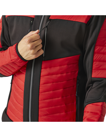 Ľahká tkanina z polyamidu 20d s vodoodpudivou úpravou. Strečový úplet Extol so zateplenou zadnou stranou. 100% recyklovaná izolácia Warmloft. Napínacia väzba na golier, manžety a lem. 2 spodné vrecká na zips a 2 náprsné vrecká na zips s vnútorným chráničom zipsu. Reflexný natlačený detail. Na hrudi miesto na dekoráciu. Vyrobené z recyklovaných materiálov. Nylon: 37 g/m², streč: 235 g/m².