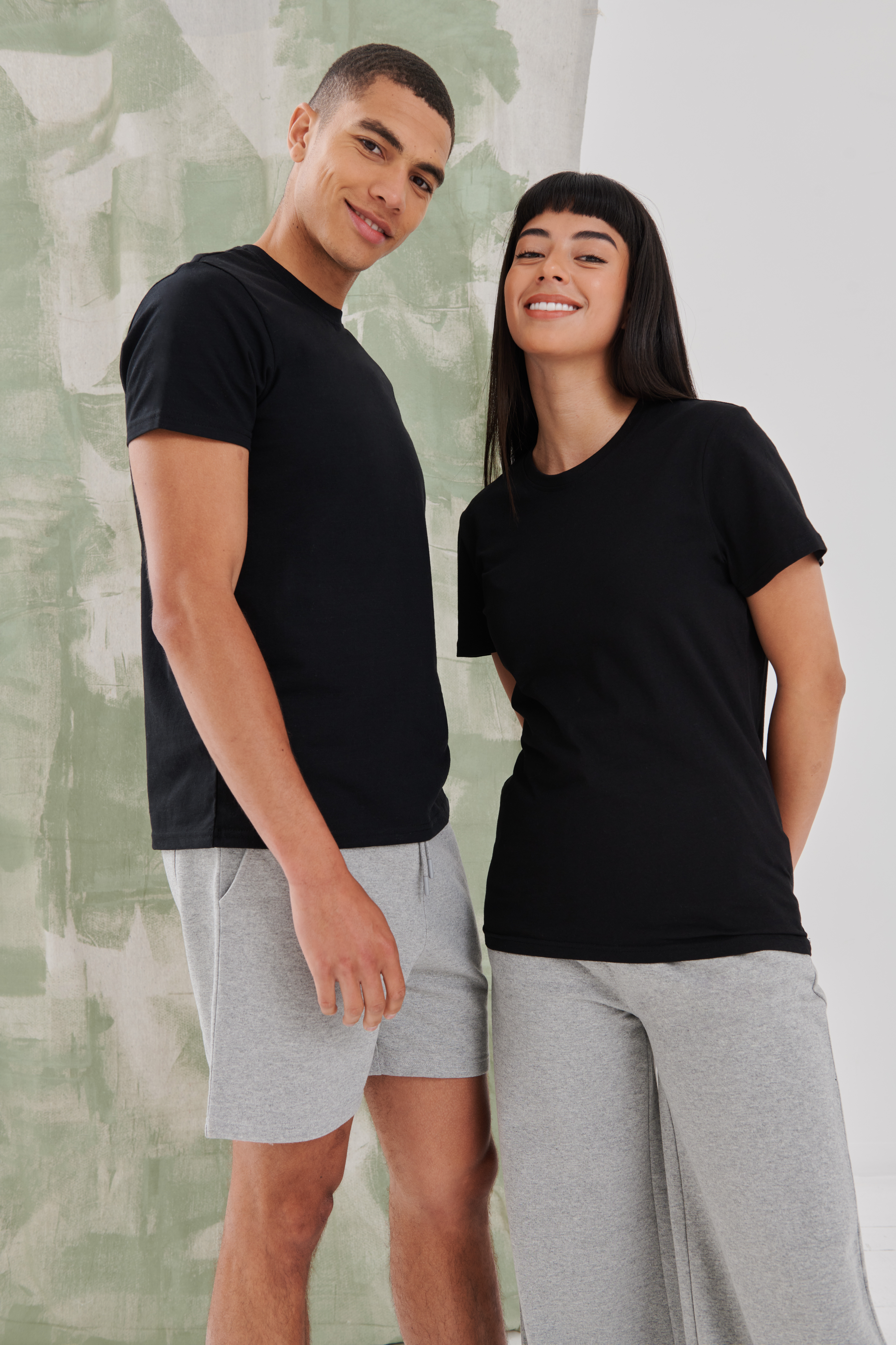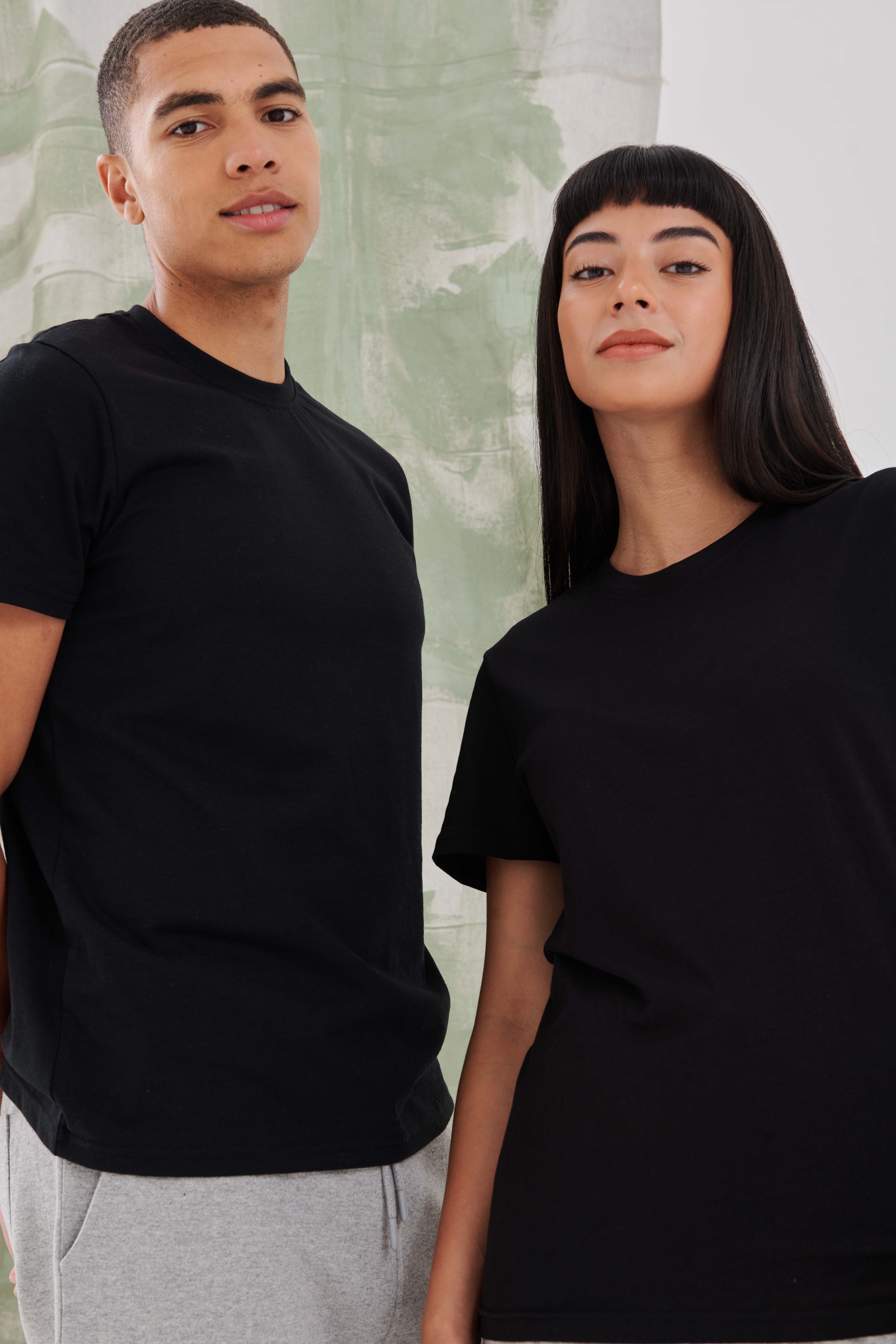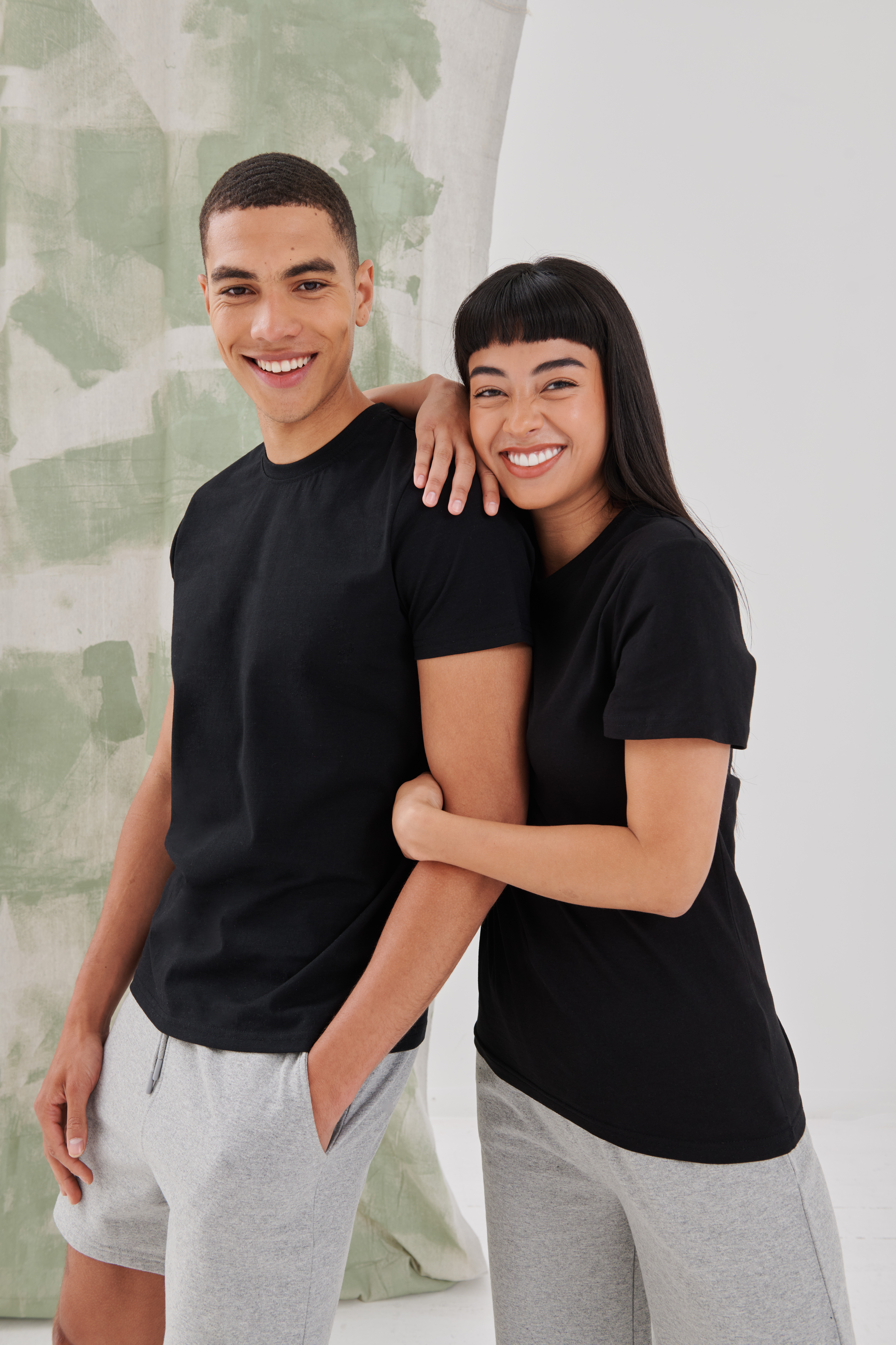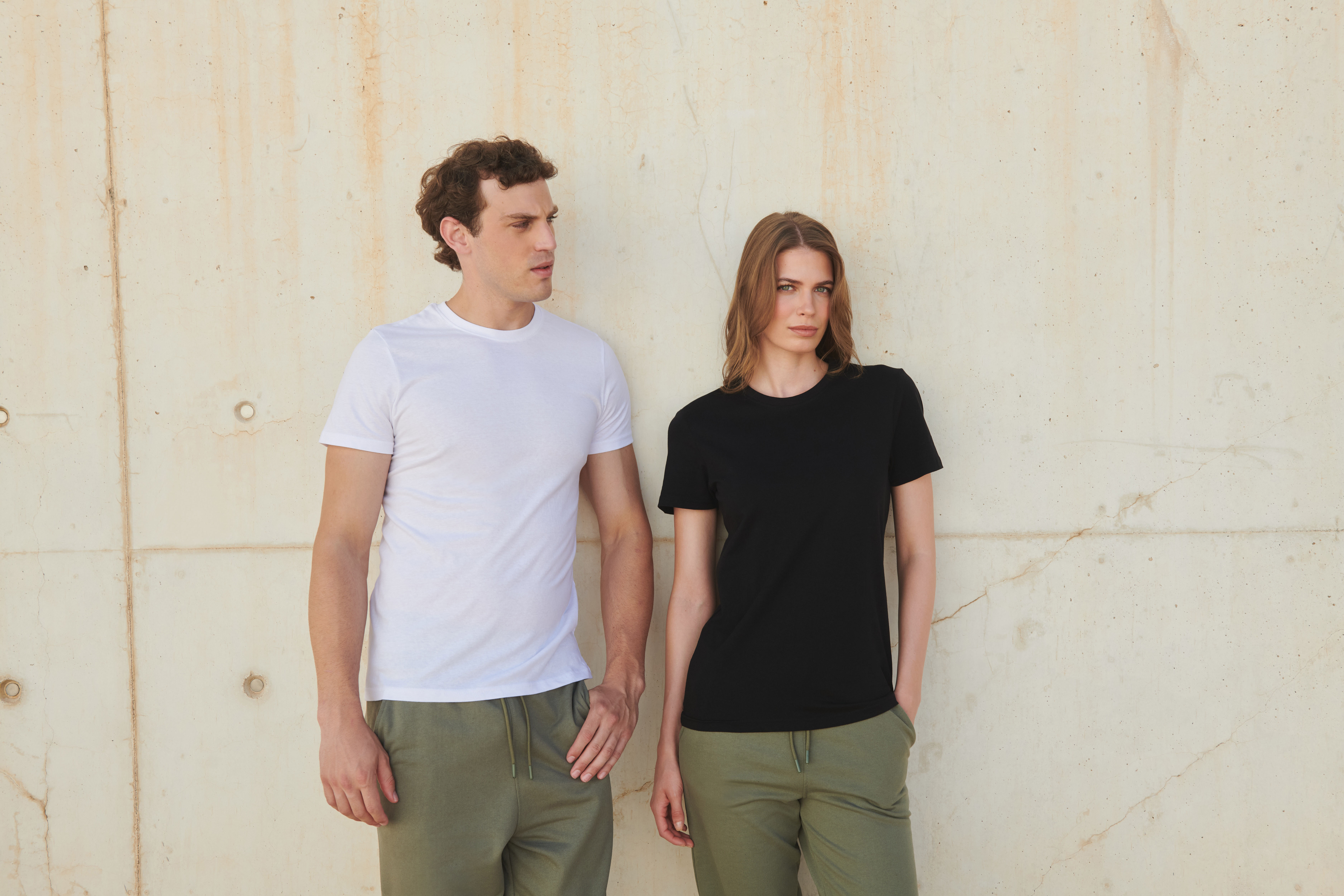 Unisex tričko voľného strihu | Organická bavlna | Jednoduchý džersej | Vsadené rukávy | Rebrovaný výstrih ku krku | Dvojité prešitie na leme a rukávoch | Bez štítku | Recyklovateľné tašky s možnosťou opätovného uzavretia - vyrobené zo 100% recyklovaného plastu