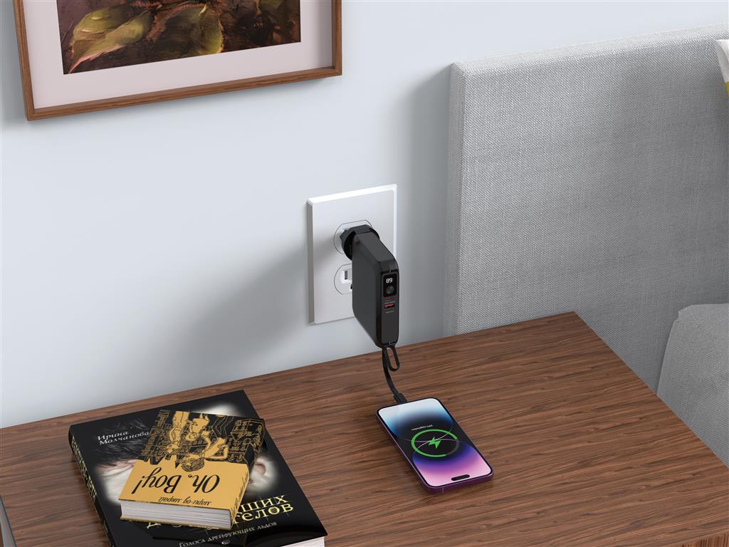 Univerzálna 65W nabíjačka Oxnard 5 v 1 je výkonné prenosné zariadenie. Táto nabíjačka obsahuje 15W magnetickú nabíjačku pre najnovšie telefóny iOS a Android. Vďaka obrovskej kapacite batérie 15 000 mAh a výstupu PD 65 W môžete napájať svoje zariadenia (vrátane notebookov) bleskovou rýchlosťou. Oxnard je tiež vybavený portom pre rýchle nabíjanie typu C in/out a výstupným portom USB A. Zariadenie je vybavené 4 typmi AC zástrčiek. Je možné nabíjať zároveň až 4 zariadenia a pokiaľ je nabíjačka pripojená do zásuvky je nabíjaná aj ona. Ideálna na použitie na cestách.