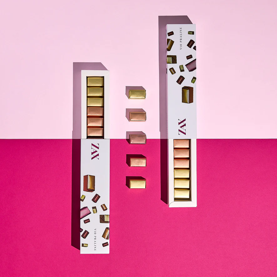 V10 PRALINE je kolekcia 10 starostlivo balených francúzskych praliniek v štyroch jedinečných príchutiach. Nájdete tu tradičné mandľové pralinky aj „Secret“ variácie s chrumkavým ovocím, jemnou kávou a lahodnou giandujou – lieskovo-orieškovým krémom s minimálne 30 % lieskovcov. Pralinky sú vyrobené z prémiovej čokolády a kvalitných surovín pre dokonalý pôžitok z každého sústa. Trvanlivosť: 4 mesiace. Rozmer: 220 × 55 × 30 mm. Váha: 100 g