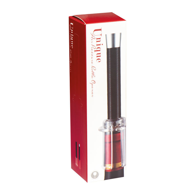 Vývrtka - otváranie fľaše na víno nebolo nikdy také ľahké. Špičku vývrtky zatlačte do korku a pevne podržte veko, pumpujte vzduch 7-8 krát do fľaše a korok sa vytiahne z hrdla fľaše ani sa nenazdáte.