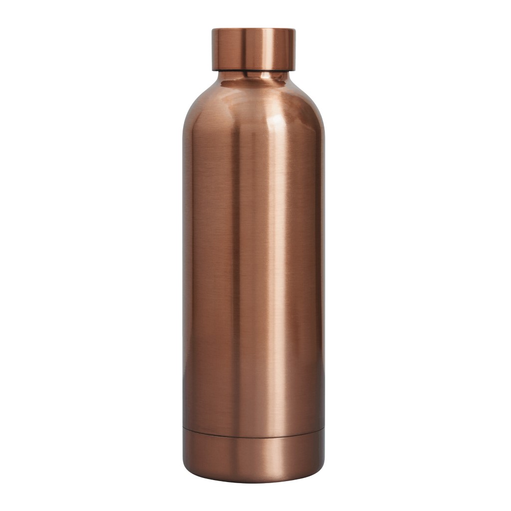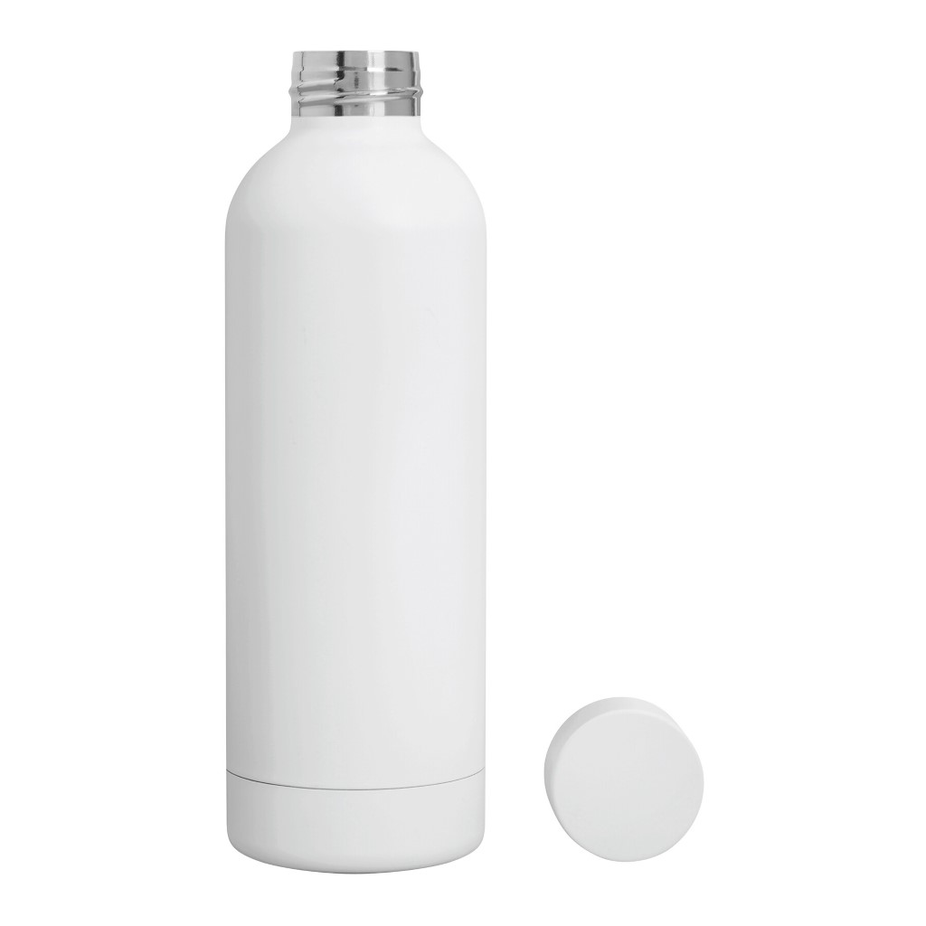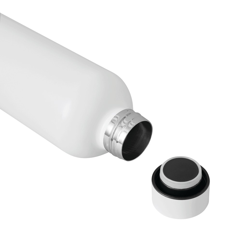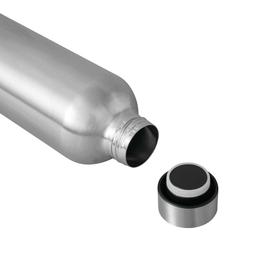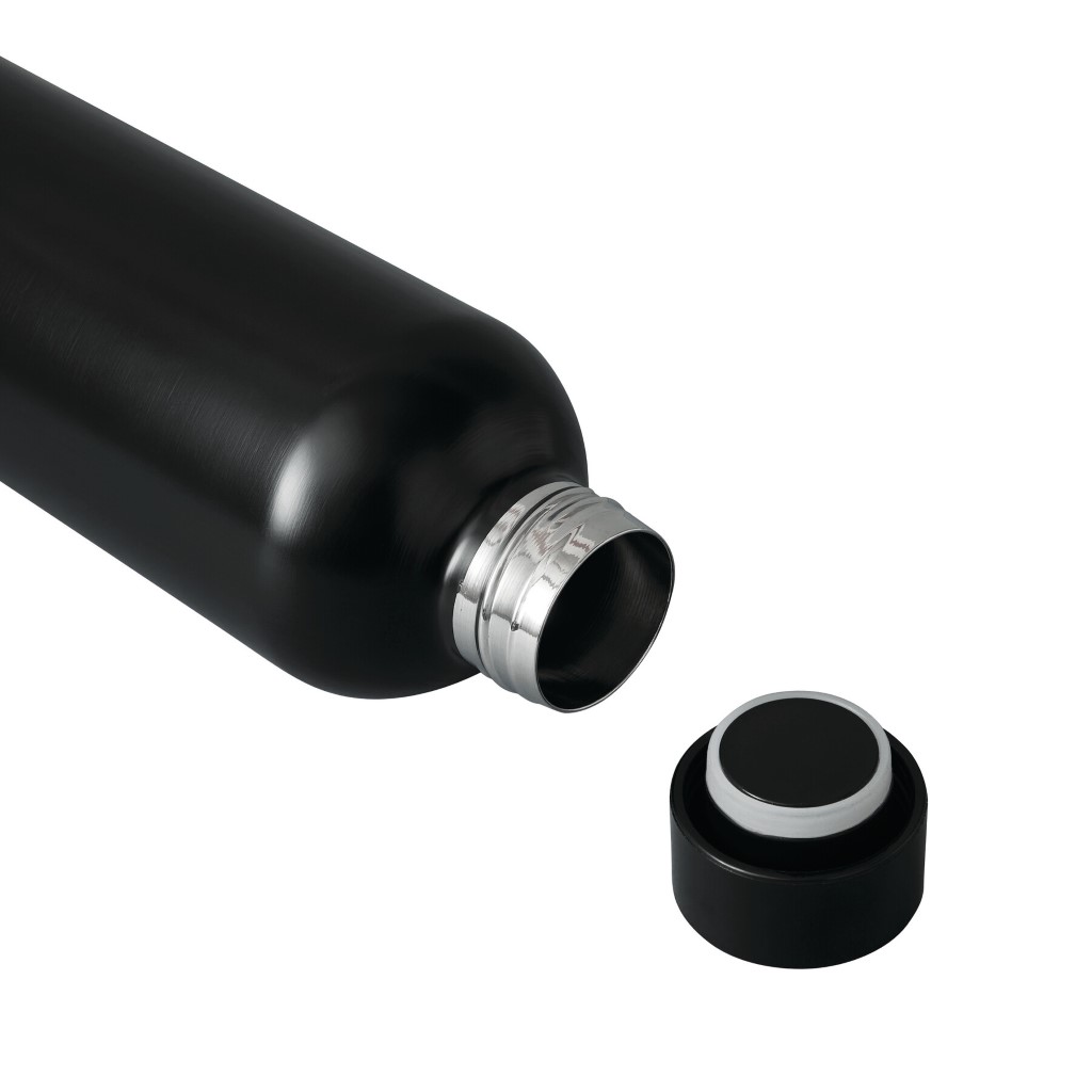 Vákuovo izolovaná fľaša GET WARM, dvojstenná: vnútorná aj vonkajšia strana z nehrdzavejúcej ocele, farebne zladené plastové viečko s bezpečným skrutkovacím uzáverom a silikónovým tesniacim krúžkom, objem cca 500 ml, udrží teplú cca 8 hodín a studenú až 12 hodín.