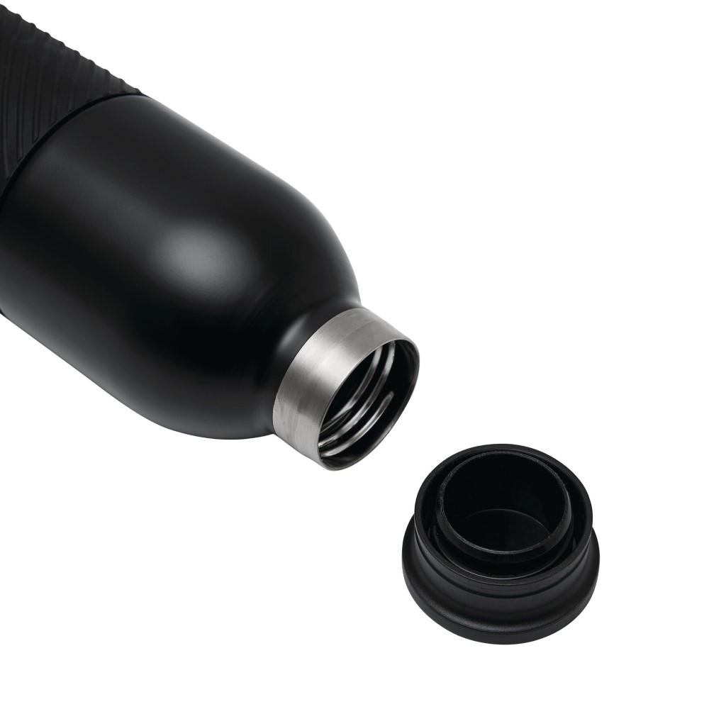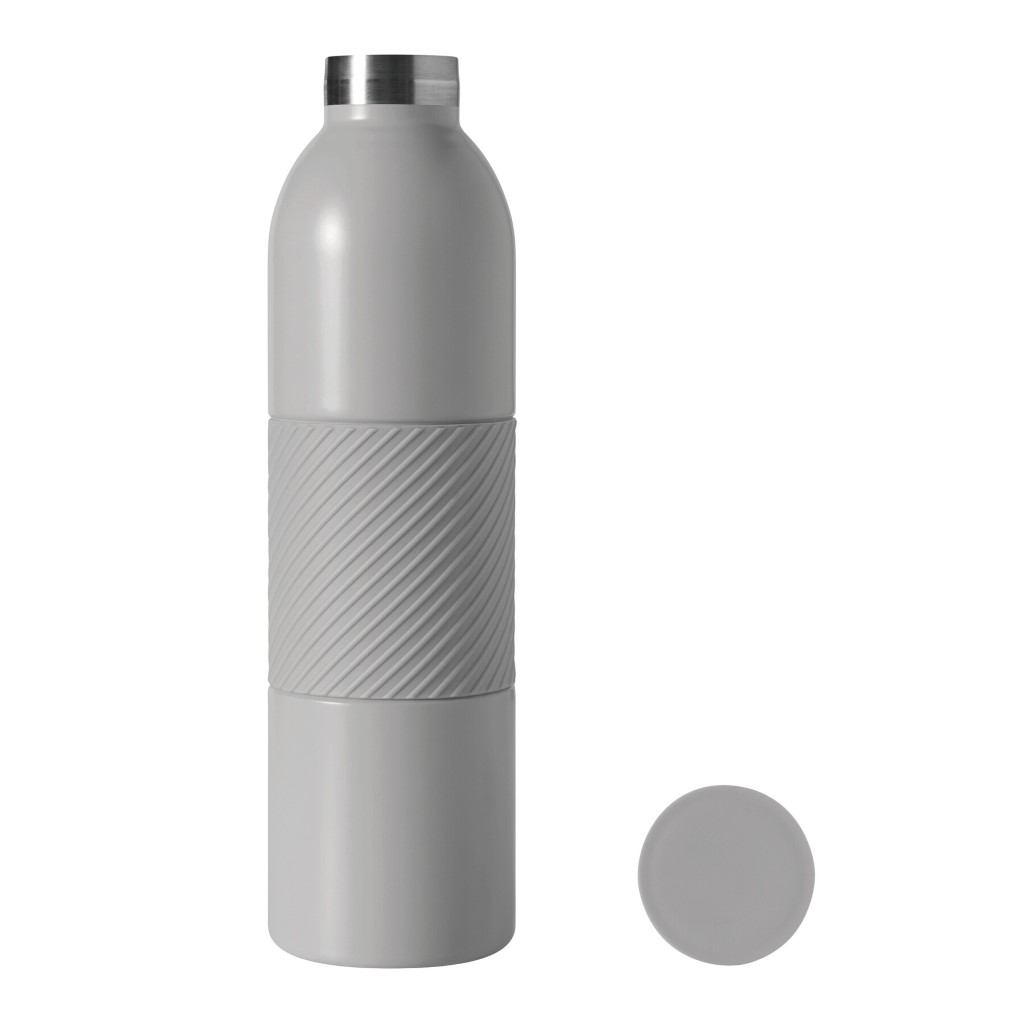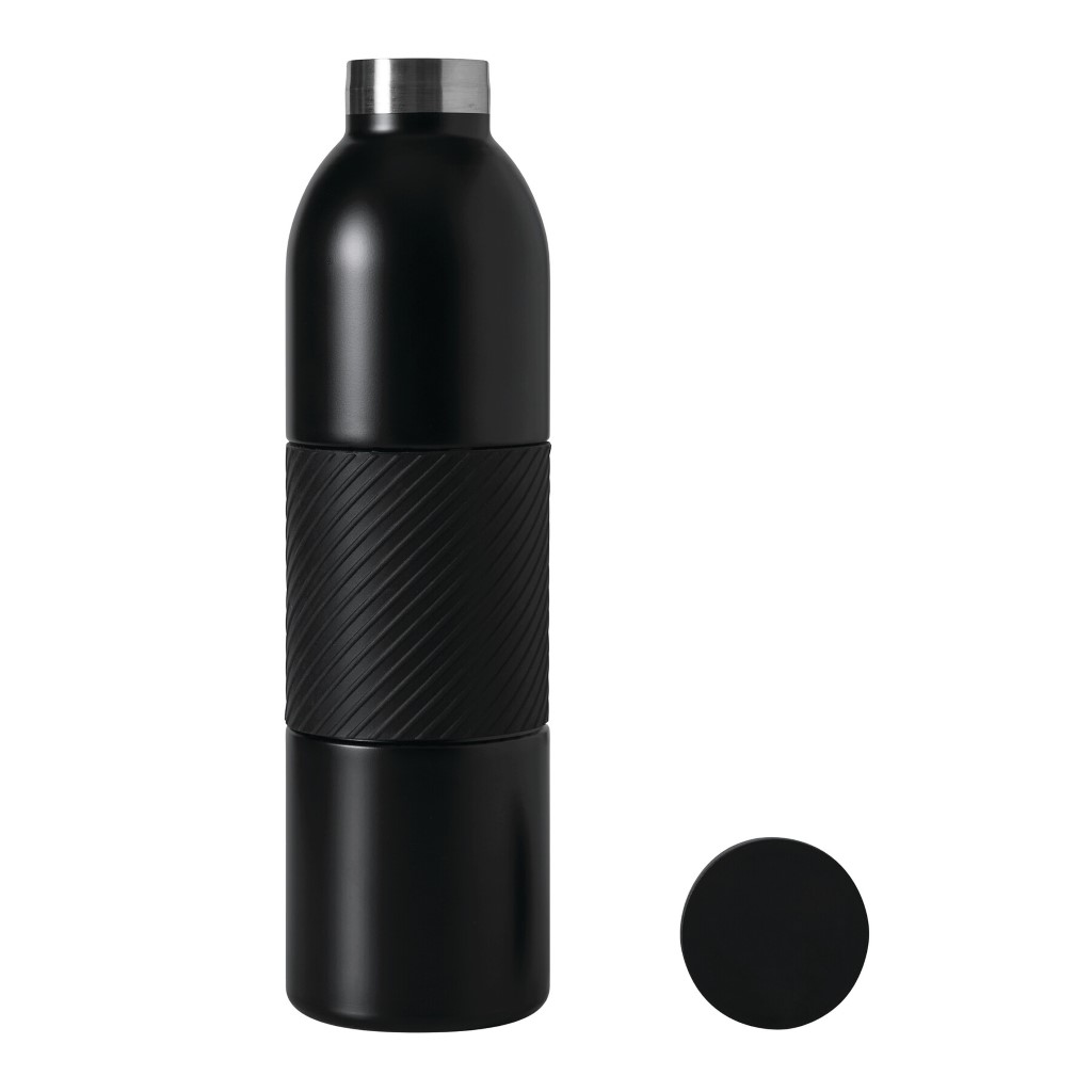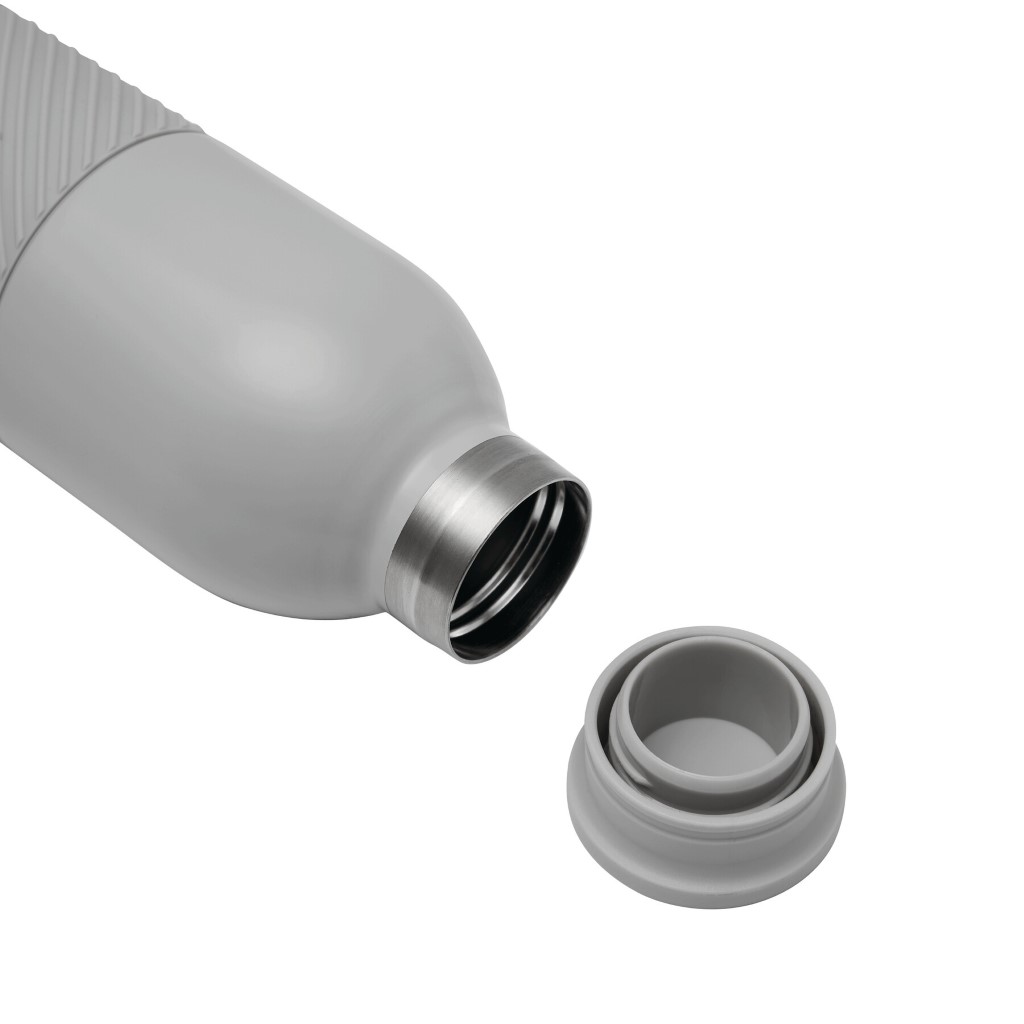 Vákuovo izolovaná fľaša VACUGRIP, dvojstenná: vnútorná aj vonkajšia strana z nehrdzavejúcej ocele, farebne zladené plastové viečko s bezpečným skrutkovacím uzáverom a silikónovým puzdrom pre optimálne uchopenie, objem cca 600 ml, udrží teplú cca 8 hodín a studenú až 12 hodín