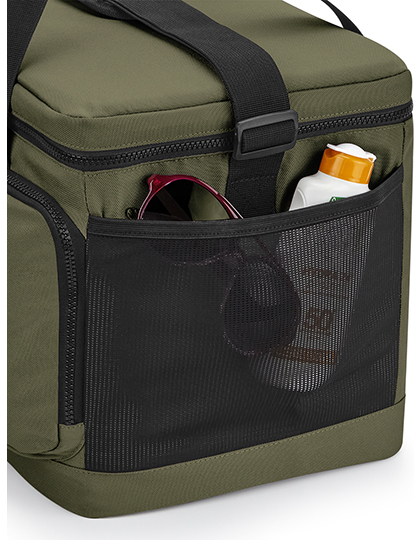 100 % recyklovaný polyester 600D | Plne izolovaný hlavný oddiel bezpečný pre potraviny | Hlavné vrecko na zips | Predné vrecko na zips | Pružné sieťované bočné vrecko | Čistá vnútorná časť | Vnútorné držiaky fľaše na vodu / ľadové bloky | Dve uši na prenášanie | Šnúrky na jazdcoch zipsov s reflexnými detailmi | Nastaviteľný popruh cez rameno | Odtrhávací štítok pre jednoduchú zmenu dizajnu | Bez PVC | Podšívka z materiálu PEVA - bez BPA | Dodávka bez dekorácie / obsahu.