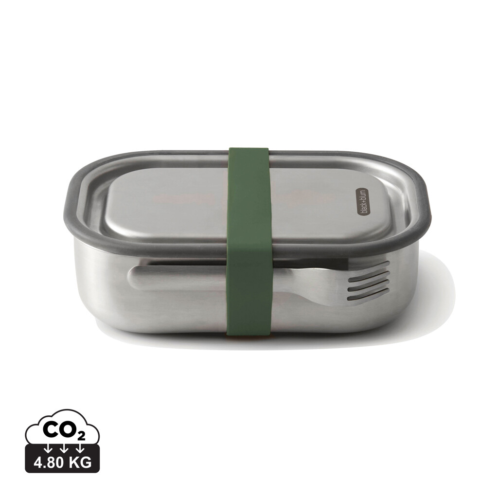 Plne nepriepustná krabička na jedlo z nerezovej ocele. Multifunkčné prevedenie 3 v 1, ktoré umožní prepravovať obed, variť pokrmy v rúre a dokonca ukladať uvarené jedlá v mrazničke. Vyrobený z odolnej nerezovej ocele je ideálny na štýlové nosenie vašich kulinárskych výtvorov. Silikónový ventil vytvára bezpečný vákuovo utesnený uzáver, posuvná prepážka umožňuje ľahké oddelenie obsahu a pre pohodlie sú pridané vidlička a držiak. Krabička aj vidlička sú vhodné do umývačky. Veko a pútko iba na ručné umývanie.