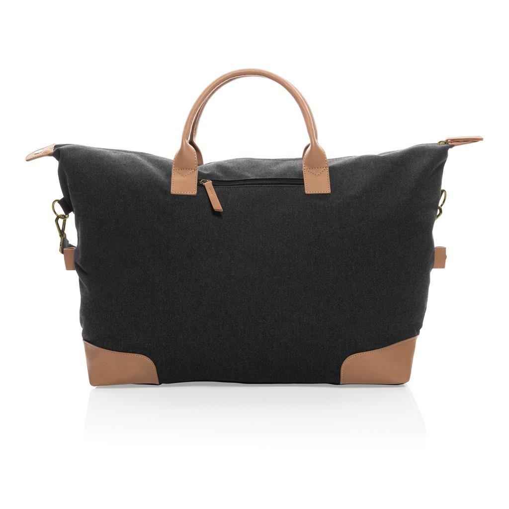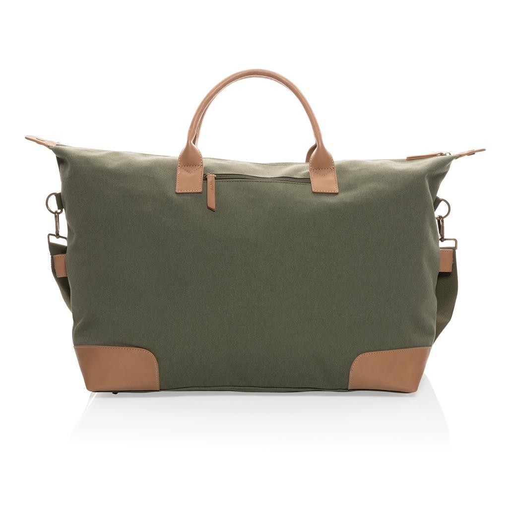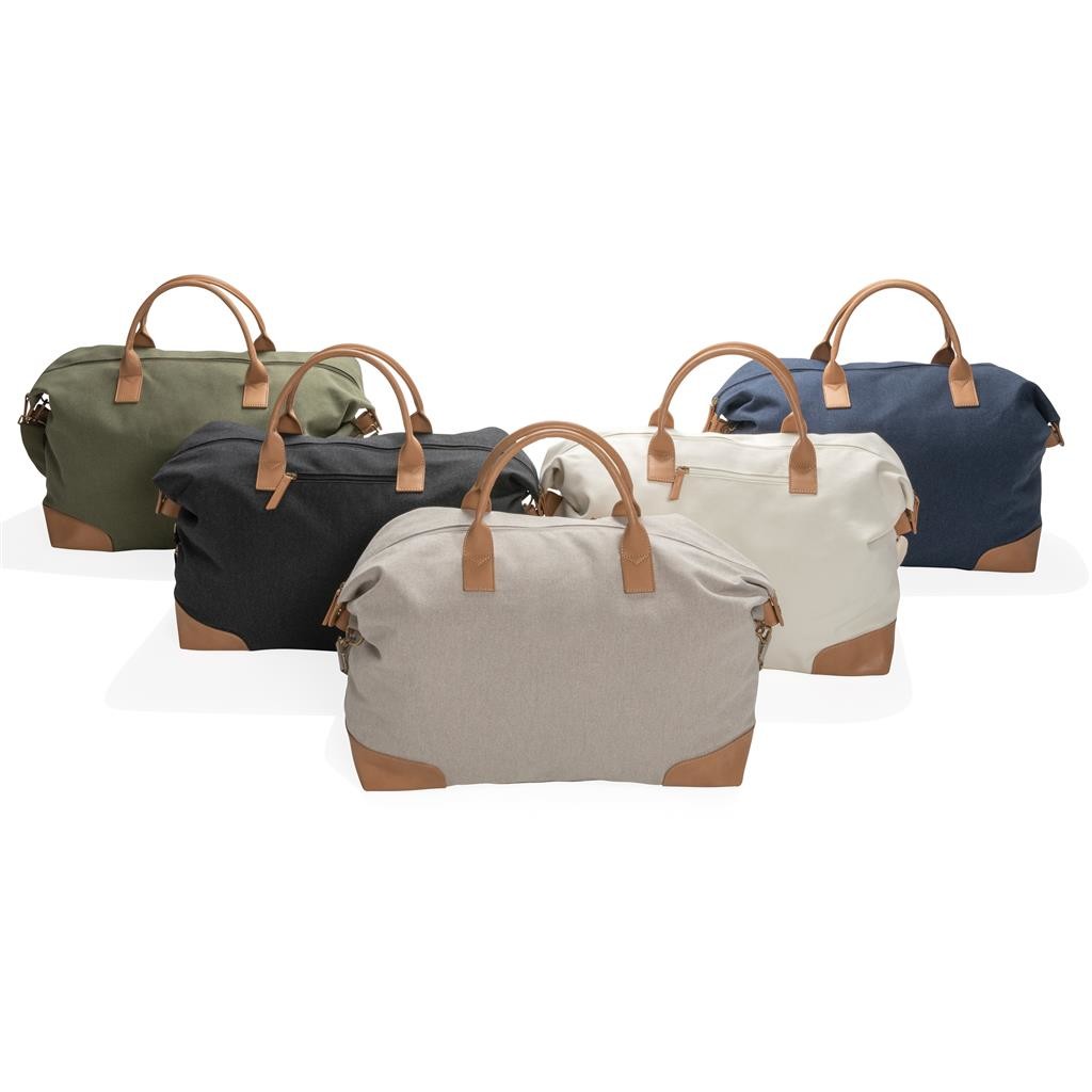 Praktická víkendová taška vyrobená z 16 oz. recyklovaného canvas. Rozmerný hlavný priestor poskytujúci dostatok miesta aj na niekoľkodňové výlety. Predné vrecko na drobnosti, PU ucha, mosadzné cvočky na spodnej strane zabraňujúce zašpineniu. Vrátane skenovateľnej zložky AWARE™ garantujúce obsah recyklátu. V porovnaní s konvenčným canvasom bolo výrobou každého kusu usporených 1 970 litrov vody. Z výťažku každého predaného produktu z kolekcie Impact je navyše prispených 2 % na podporu iniciatívy Water.org. Rozloženie materiálu: 60% recyklovaná bavlna, 40% recyklovaný polyester, podšívka zo 150D recyklovaného polyesteru.