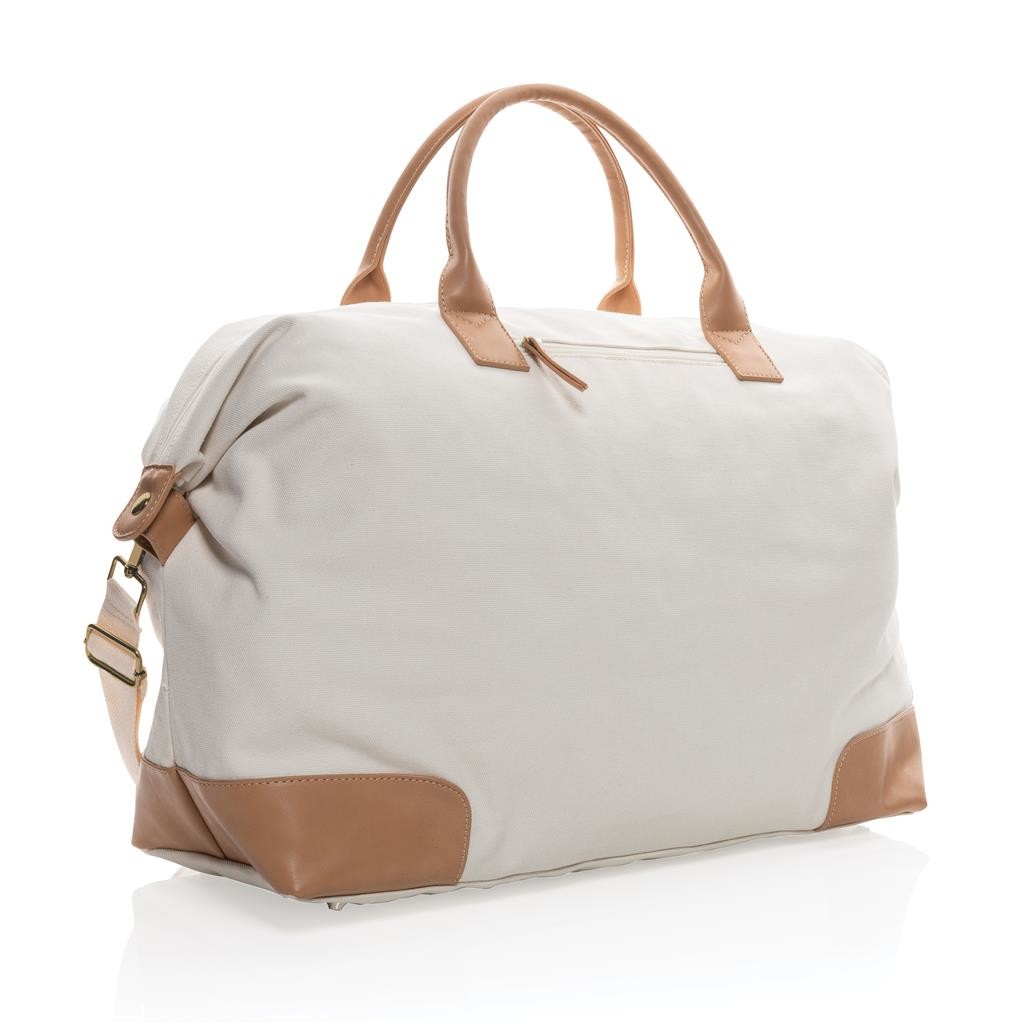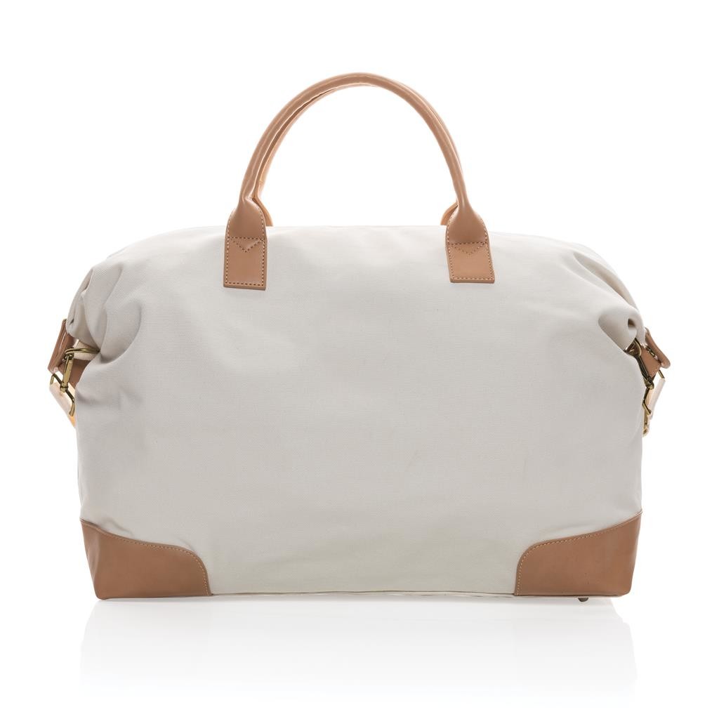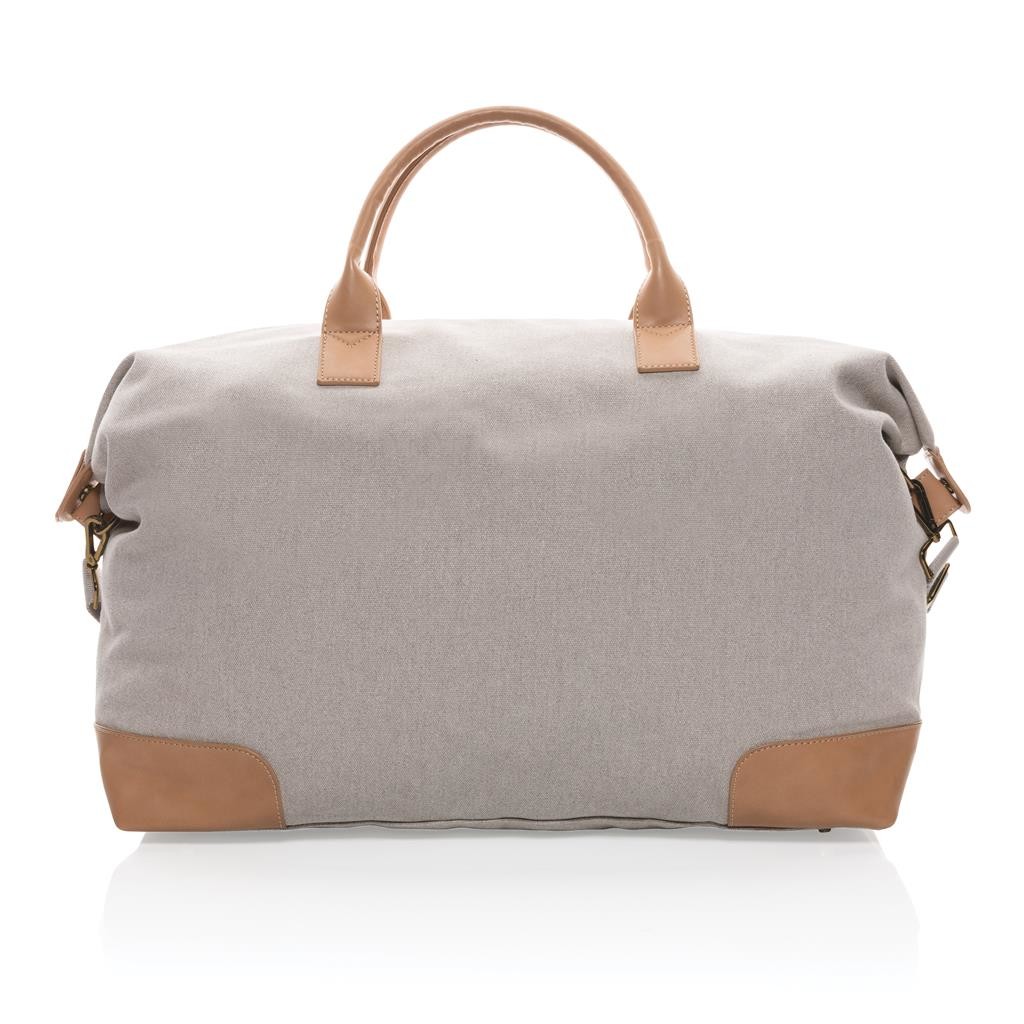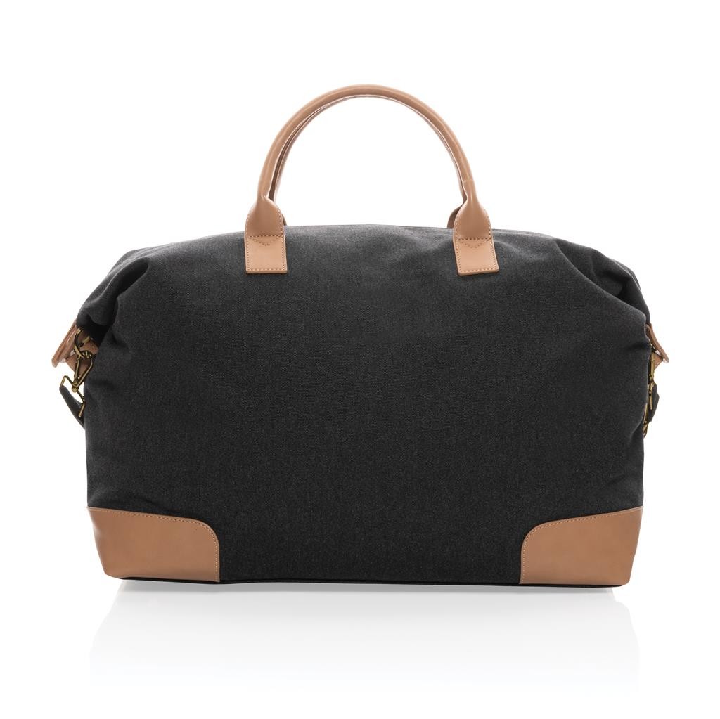 Praktická víkendová taška vyrobená z 16 oz. recyklovaného canvas. Rozmerný hlavný priestor poskytujúci dostatok miesta aj na niekoľkodňové výlety. Predné vrecko na drobnosti, PU ucha, mosadzné cvočky na spodnej strane zabraňujúce zašpineniu. Vrátane skenovateľnej zložky AWARE™ garantujúce obsah recyklátu. V porovnaní s konvenčným canvasom bolo výrobou každého kusu usporených 1 970 litrov vody. Z výťažku každého predaného produktu z kolekcie Impact je navyše prispených 2 % na podporu iniciatívy Water.org. Rozloženie materiálu: 60% recyklovaná bavlna, 40% recyklovaný polyester, podšívka zo 150D recyklovaného polyesteru.