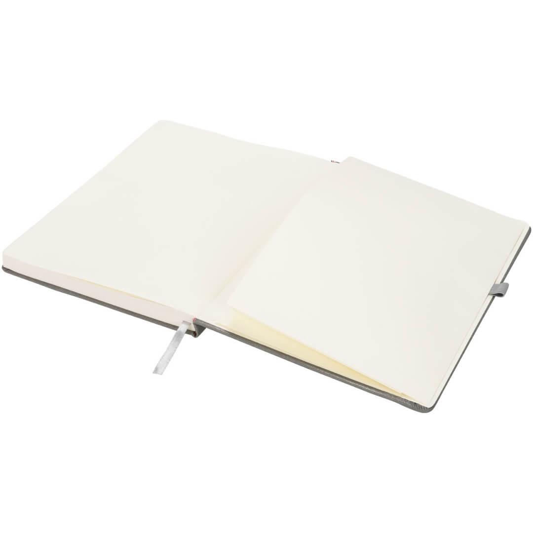 Veľký zápisník Rivista. Rad zápisníkov Rivista má štýlový moderný dizajn a veľmi kvalitnú obálku s dotykovým povrchom, ideálny pre doplnenie loga a údajov o Vašej spoločnosti. Možno si vybrať z pestrej ponuky moderných farieb. Je vybavený elastickým uzáverom, pútkom na pero, stužkou k založeniu stránok a úložnú vreckom vo vnútornej strane zadnej obálky. Obsahuje 128 listov krémového linkovaného papiera (70g / m2). PU.