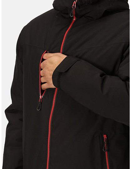 Vodotesná a priedušná 4smerná strečová tkanina Isotex 10000 zo 100% recyklovaného polyesteru s podlepenými švami | 100% recyklovaná izolácia Thermoguard | Neodnímateľná nastaviteľná kapucňa, nastaviteľný lem a manžety a kontrastný detail zipsu | Viac vreciek vrátane vnútorného bezpečnostného vrecka na zips a zips pre prístup k výšivke | Odstrihávací štítok.