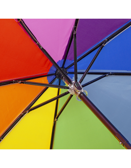 Jednoduchá a bezpečná manipulácia vďaka bezpečnostnému klznému prvku bez pružiny. Vysoko kvalitný vetruodolný systém pre maximálnu pružnosť konštrukcie pri silnejších nárazoch vetra, flexibilné laminátové koľajnice. Tyč z chrómovanej ocele. Zaoblené a zväčšené koncovky na ochranu pred zranením. Zaoblený vrchol. Zladená mäkká rukoväť príjemná do ruky s možnosťou propagačného značenia. Rukoväť: plast.