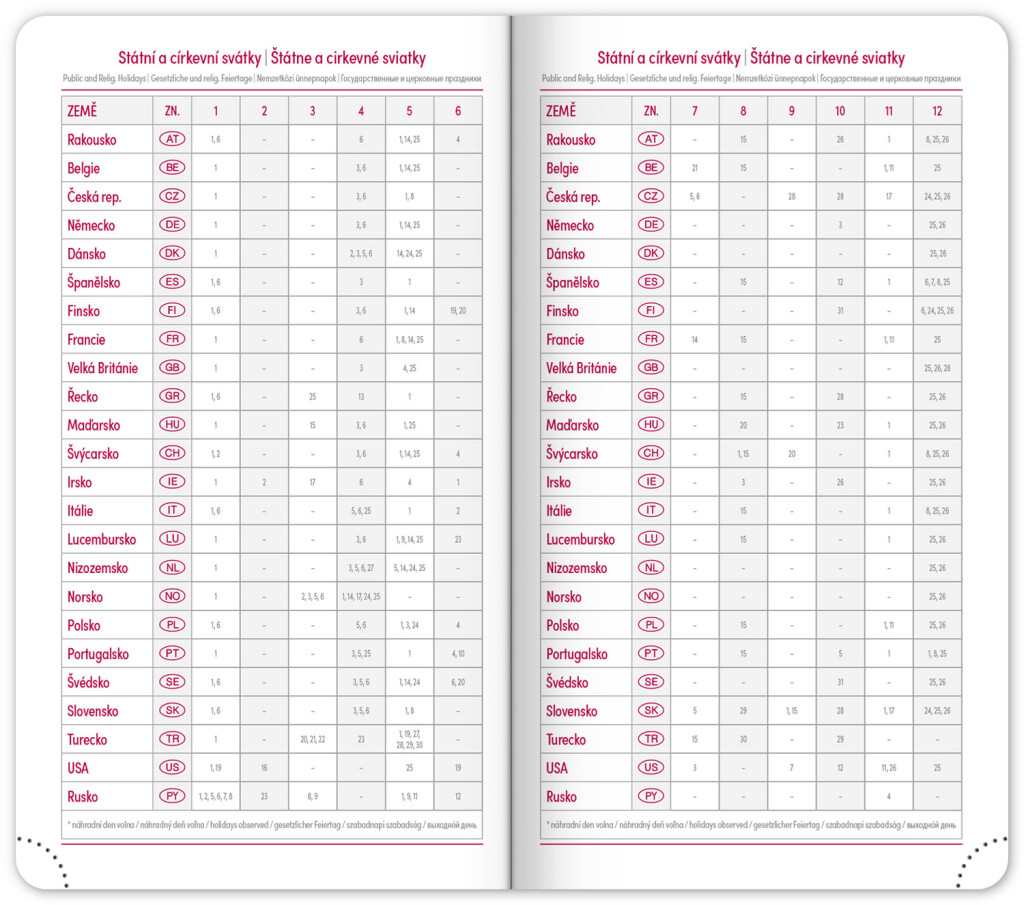 • sviatky Českej a Slovenskej republiky a medzinárodné sviatky