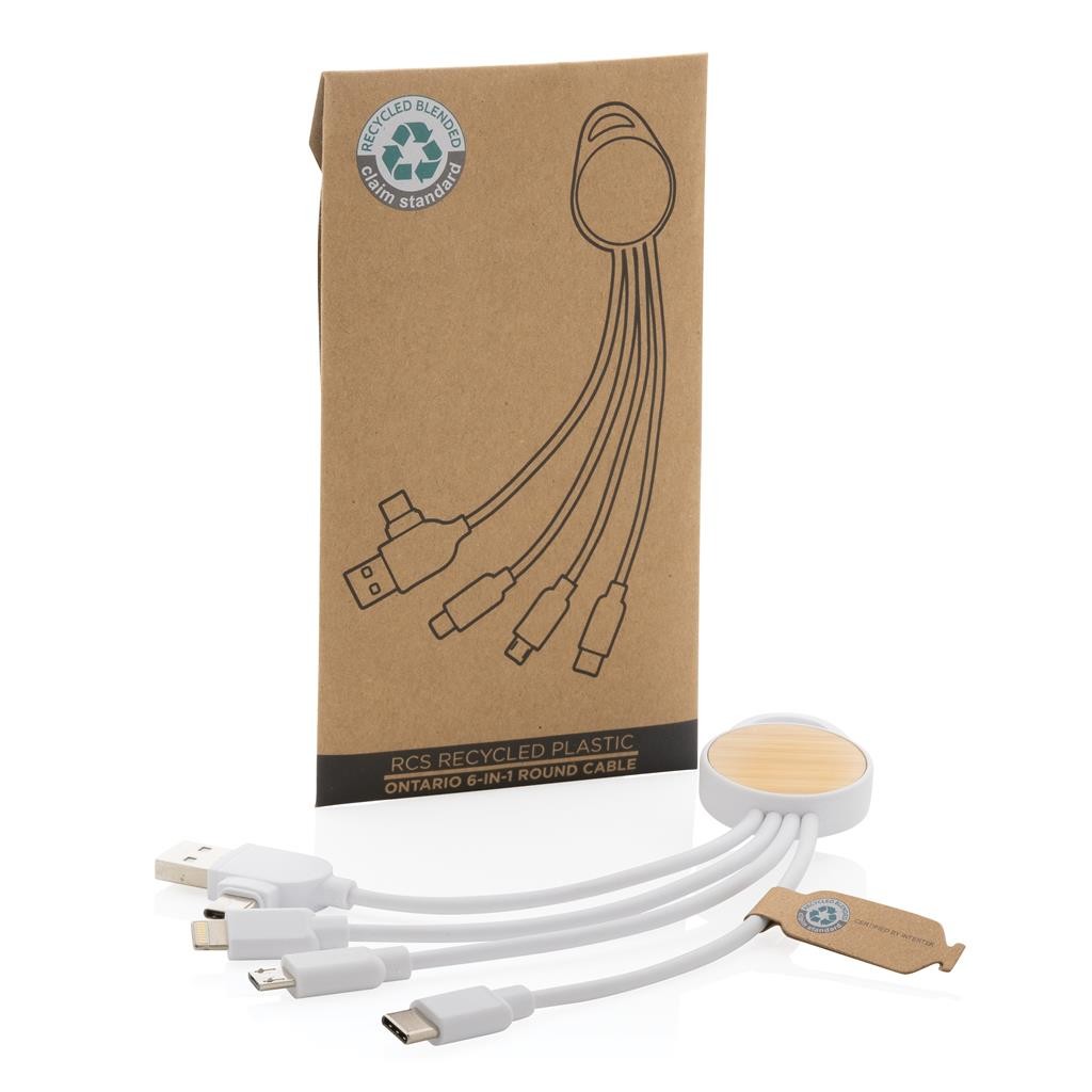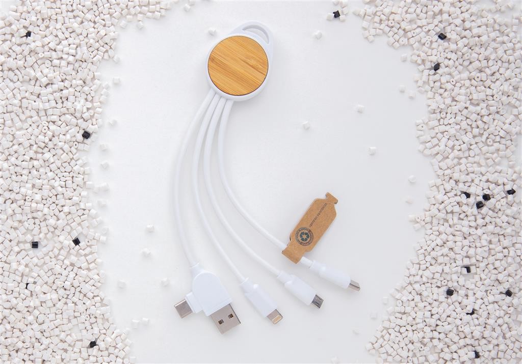 Kompaktný univerzálny nabíjací kábel s 5 konektormi: USB C/USB A vstup, USB C/micro USB/iOS výstup. USB C je vhodné na nabíjanie moderných telefónov, ale aj MacBookov. USB A má dvojakú funkciu (vstup aj výstup) pre nabíjanie akéhokoľvek zariadenia z akéhokoľvek iného zdroja. Puzdro vyrobené z FSC certifikovaného bambusu a RCS certifikovaného ABS. Káble vyrobené z RCS certifikovaného TPE. Dĺžka: 20 cm. RCS certifikácia zaisťuje garanciu použitia recyklovaného materiálu vďaka transparentnému prehľadu nad dodávateľským reťazcom. Balené v darčekovom obale z FSC® kraftového papiera. Bez PVC.