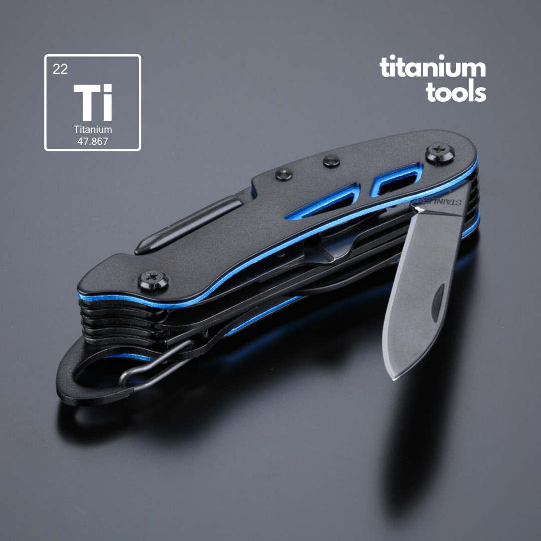 Vreckový nôž Optima v novom prevedení, vyrobený z vysoko kvalitnej nehrdzavejúcej ocele s titánovým povrchom pre lepšiu tvrdosť a extra odolnosť proti korózii. Farebné vložky na rukoväti pre jemné zdobenie. Hlavné funkcie: nožnice, nôž, pílka na drevo, otvárač na fľaše a konzervy, škrabka na ryby, vývrtka, dierovač (na prepichnutie napr. plechovky od džúsu), navliekač (na záplatovanie duší, šitie plachiet, záplatovanie pneumatiky), pilník na nechty, Skrutkovač Phillips. Písací nôž je zakončený karabínkou, aby ste ho mohli mať stále pri sebe.
