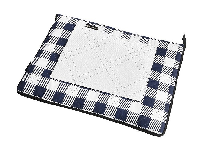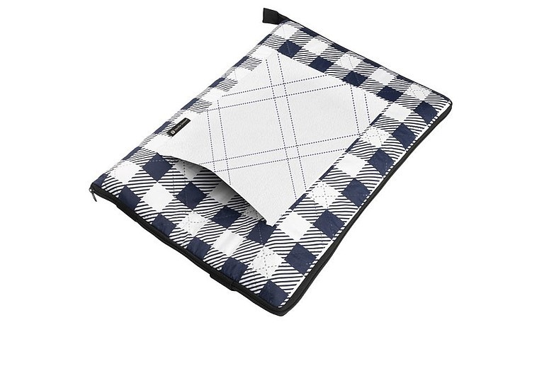 Praktická rozkladacia pikniková deka značky Vanilla Season. Je vyrobená z vysoko odolnej Oxford priadze s výplňou z dutého polyesteru. Spodná strana deky je z vodeodolnej 210D Oxford tkaniny. Deka má modrobiely kockovaný dizajn, v zloženom stave je uzavretá na zips, obsahuje nastaviteľné ucho na nosenie a biele vrecko o veľkosti 24 × 32 cm.