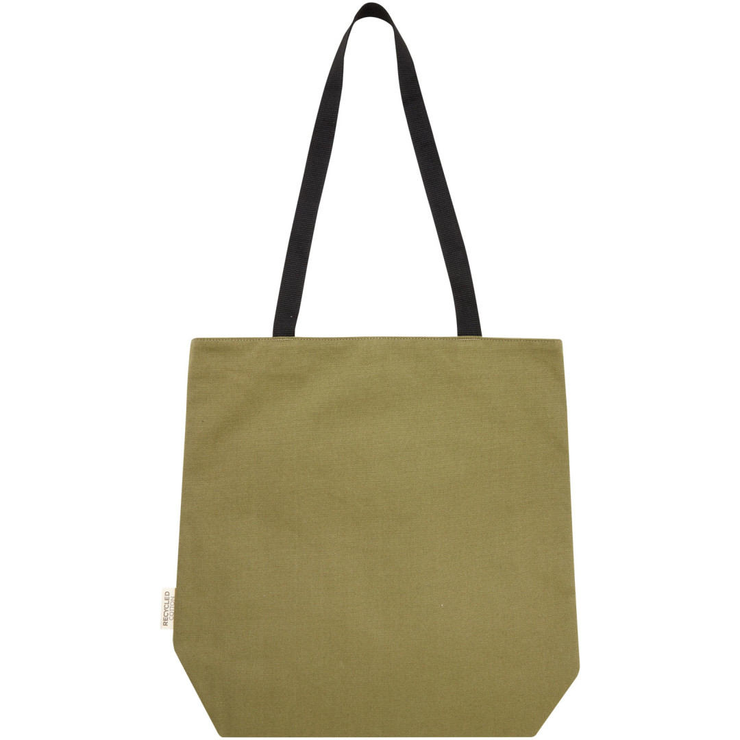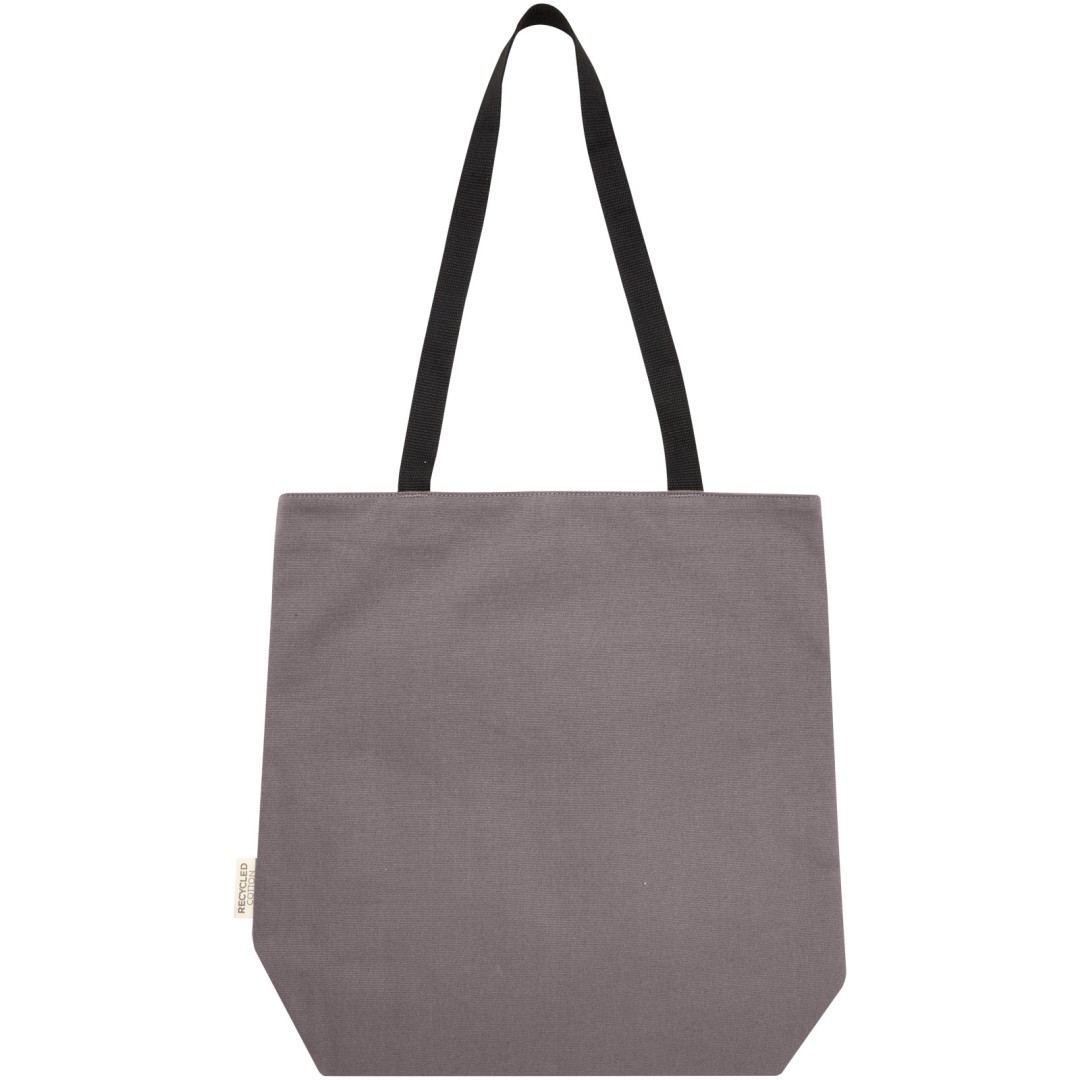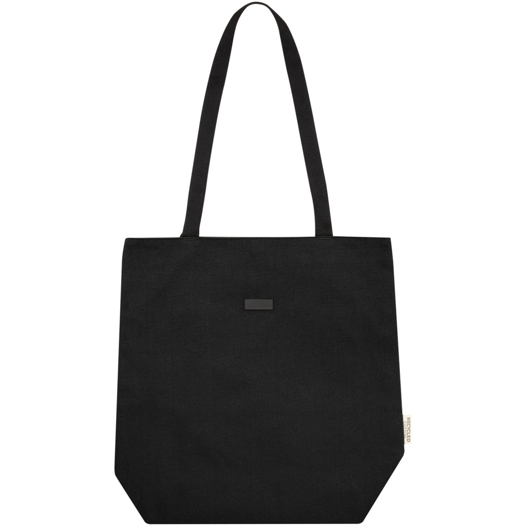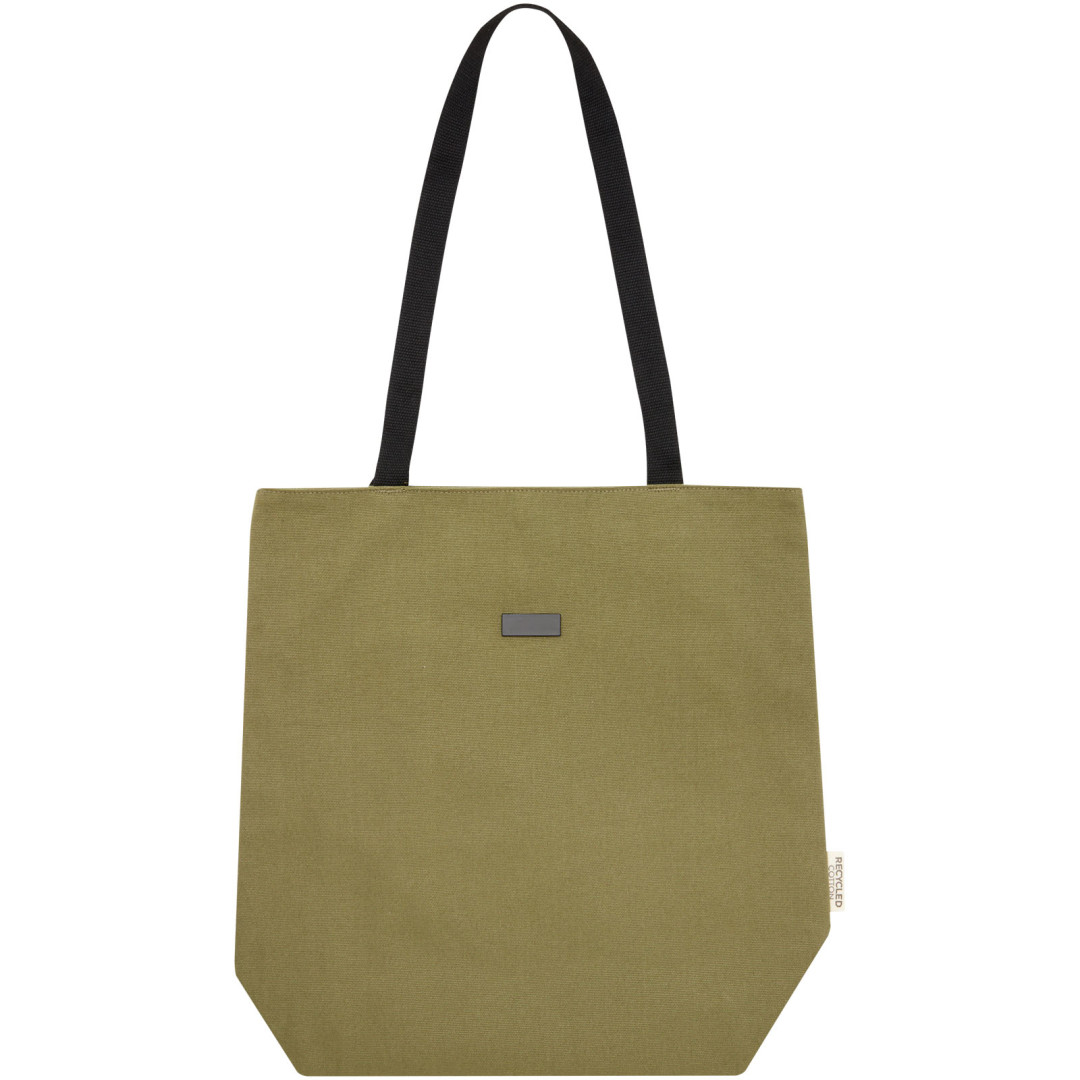 Nákupná taška vyrobená z GRS certifikovaného recyklovaného plátna a GRS certifikovanej RPET podšívky. Táto všestranná nákupná taška má polstrovanú priehradku na 15" notebook a dve vnútorné vrecká na telefón, peňaženku alebo príslušenstvo, ľahké zapínanie na gombík a pohodlné bavlnené rukoväte. Vďaka dekoratívnej kovovej doštičke vynikne logo s jemným a matným povrchom. 80% GRS certifikovaná recyklovaná bavlna 20% Bavlna.